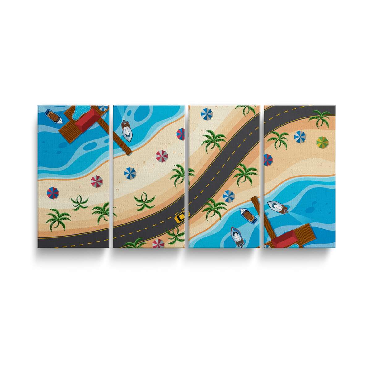 Silnice vedoucí podél plaže a moře - ilustrace