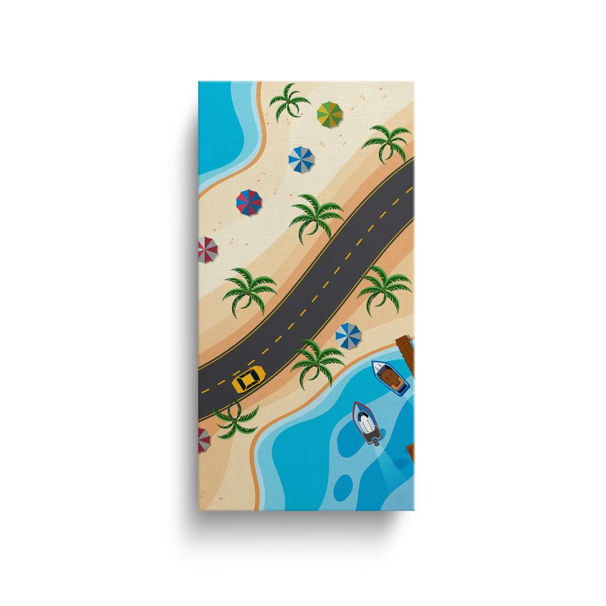Silnice vedoucí podél plaže a moře - ilustrace
