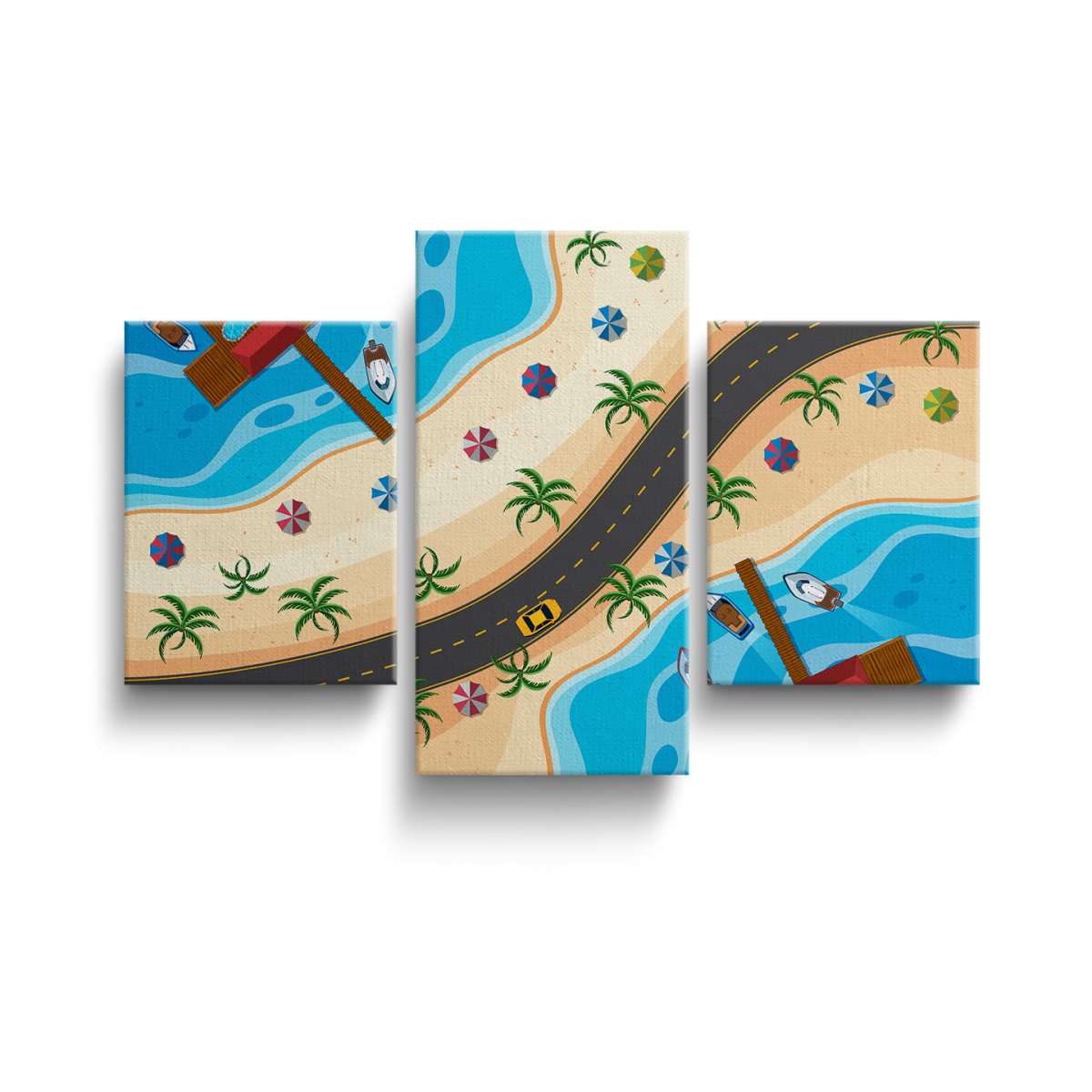 Silnice vedoucí podél plaže a moře - ilustrace