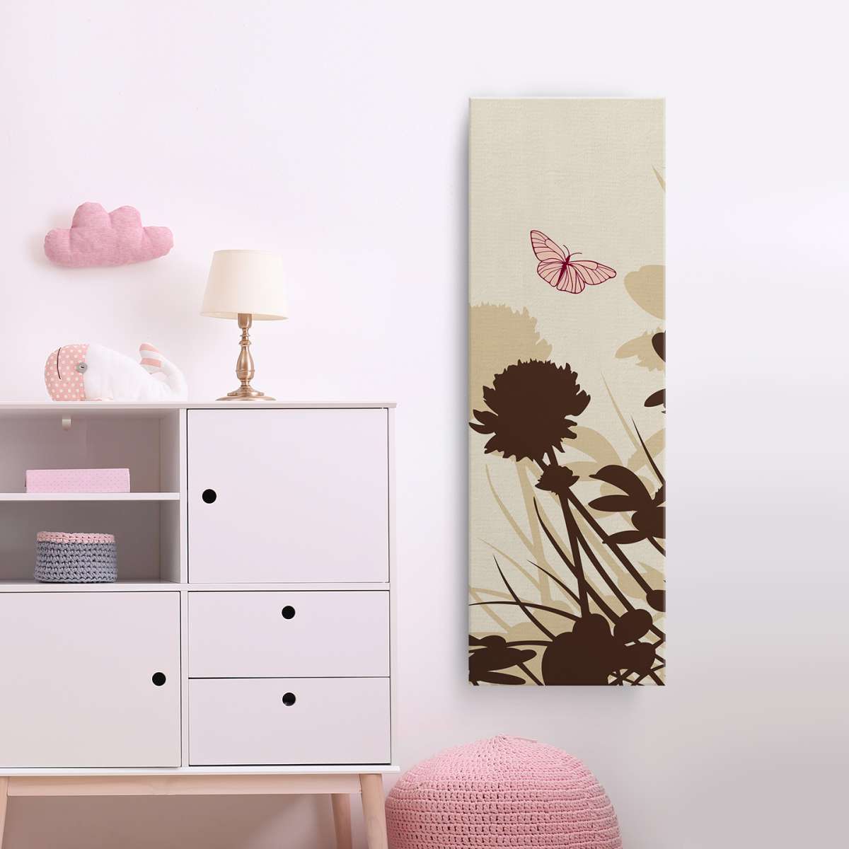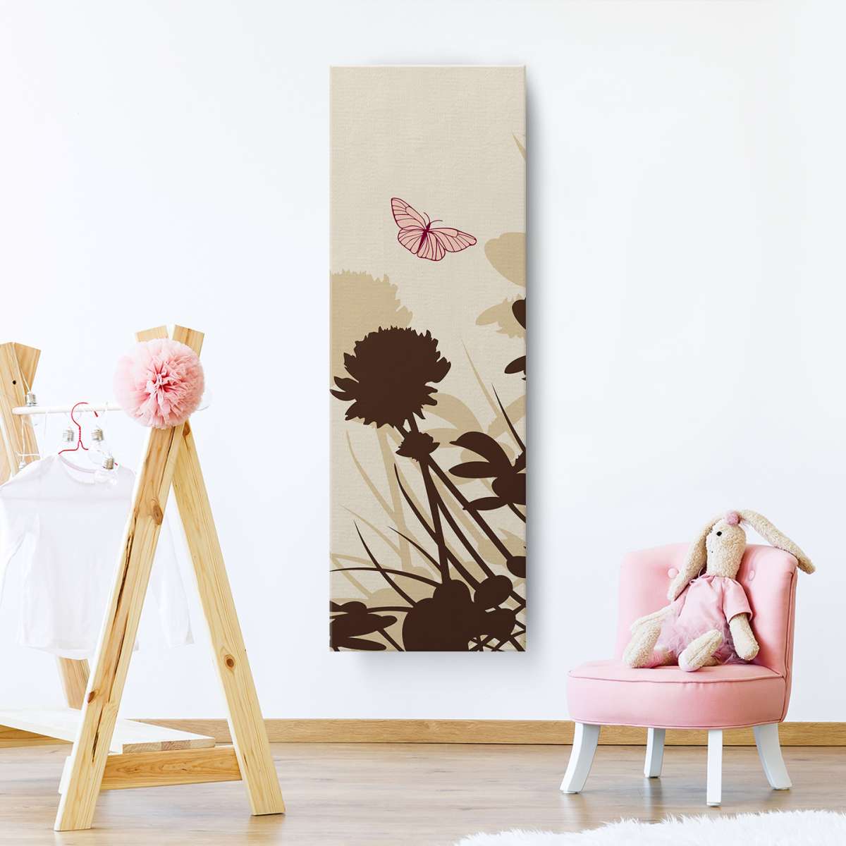 Siluety motýlů na louce - béžová ilustrace