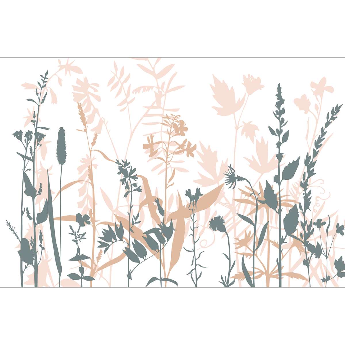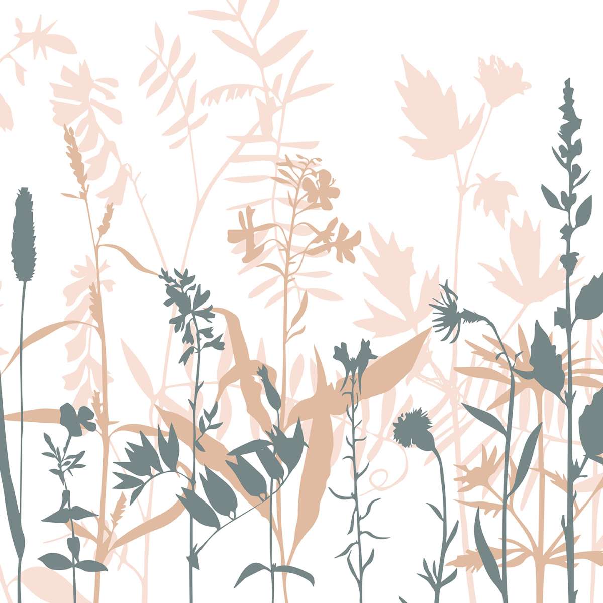 Siluety trávy a květiny - pastelová ilustrace
