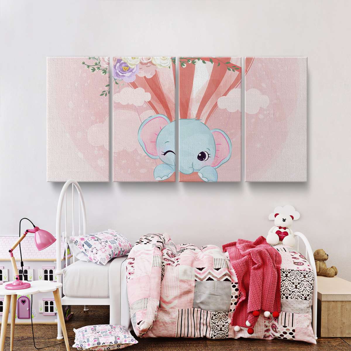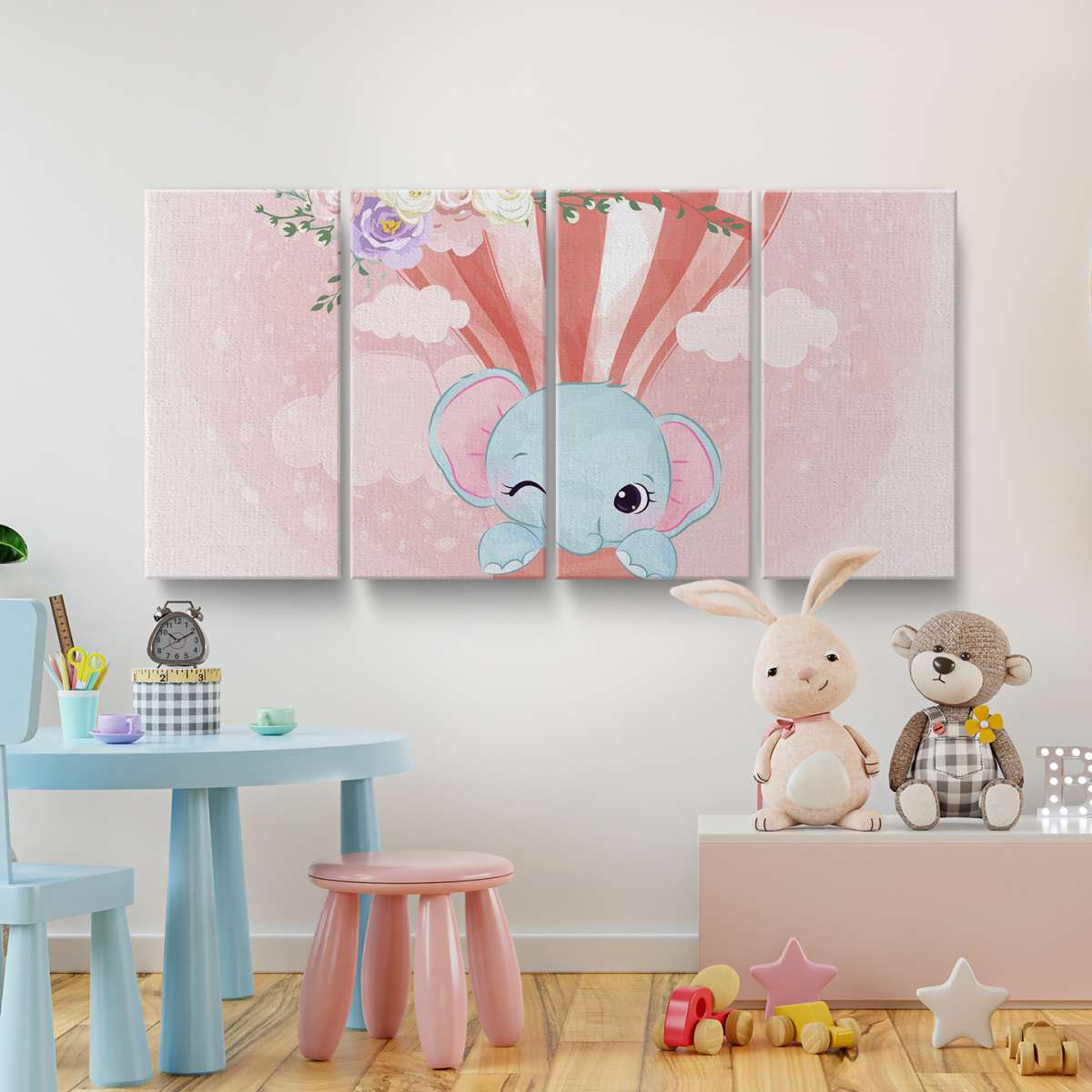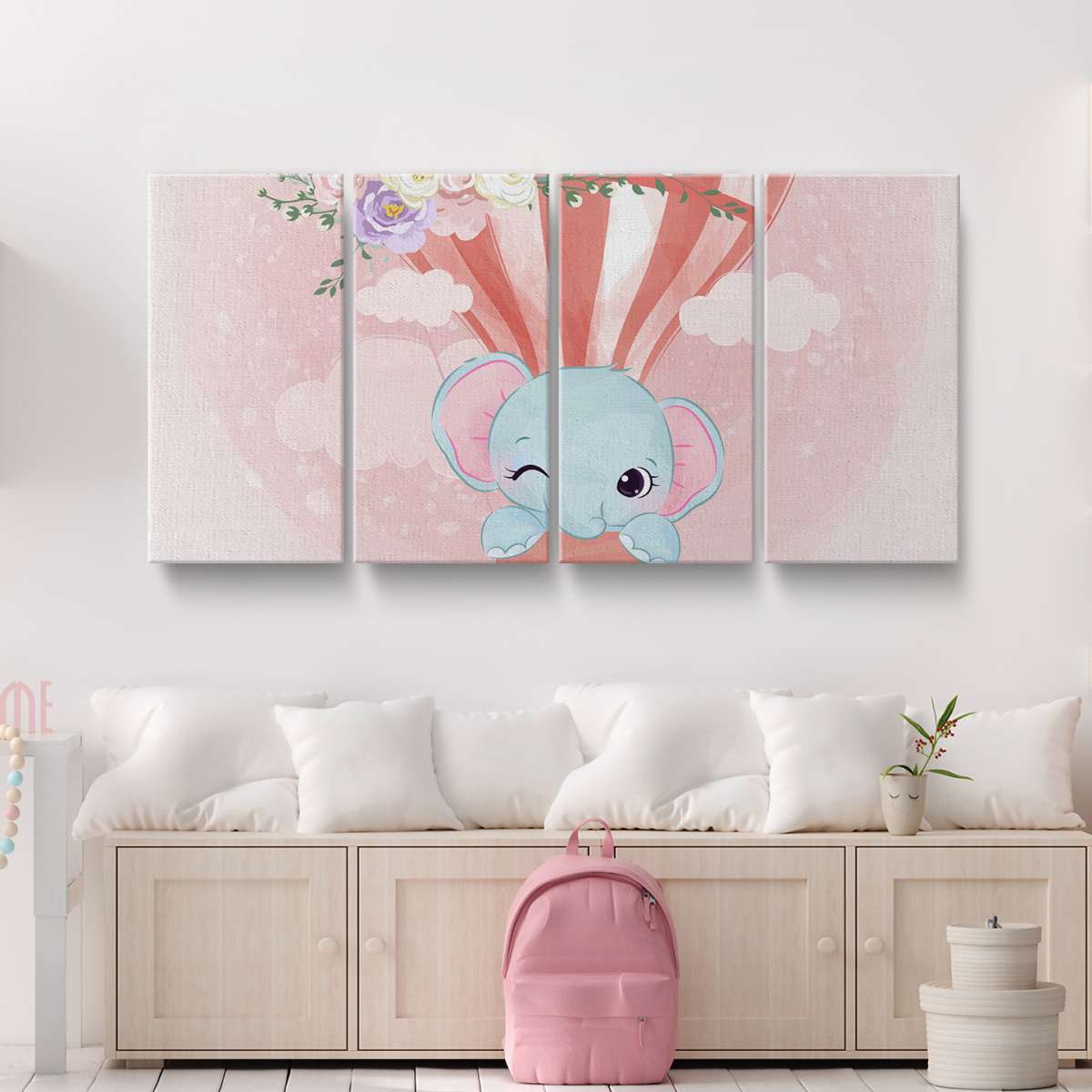 Slon v horkovzdušném balónu - akvarel