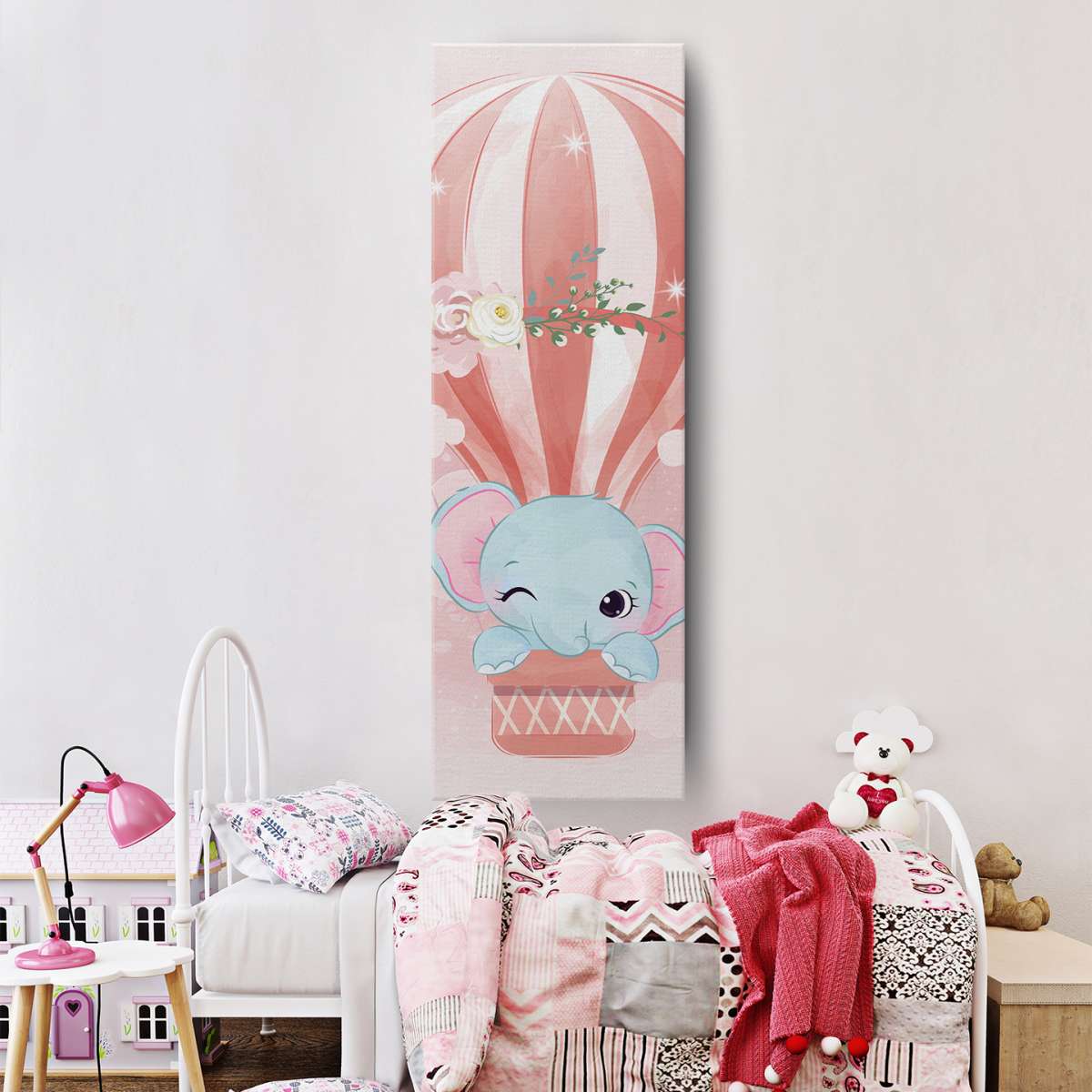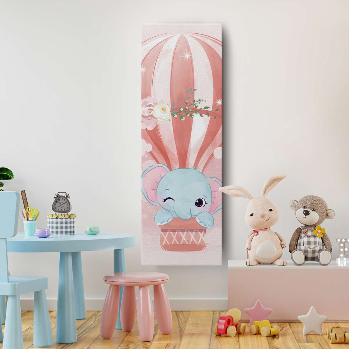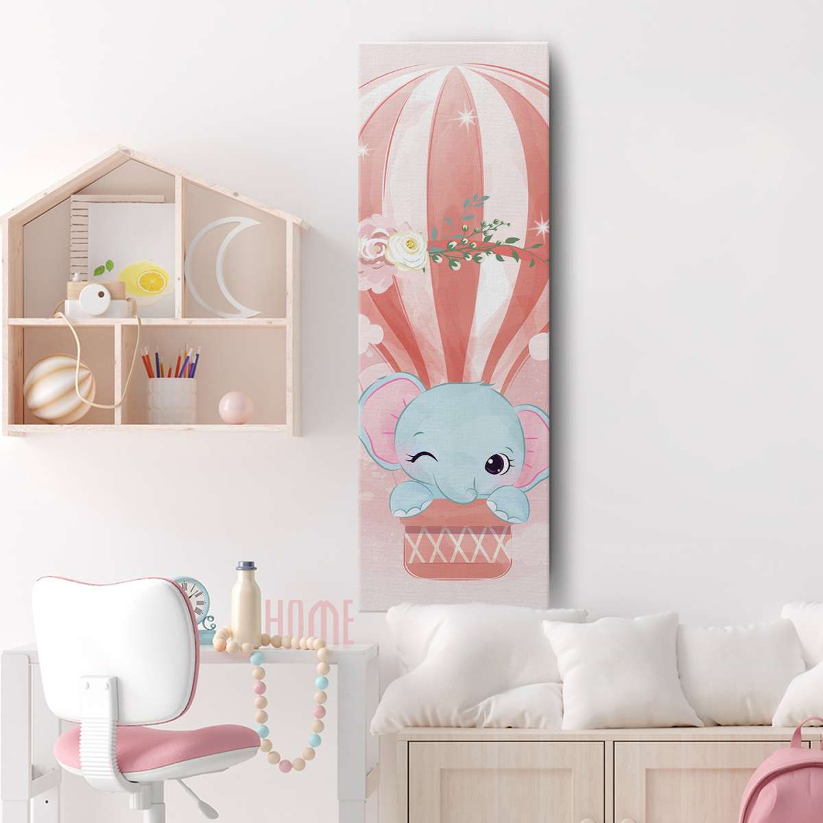 Slon v horkovzdušném balónu - akvarel
