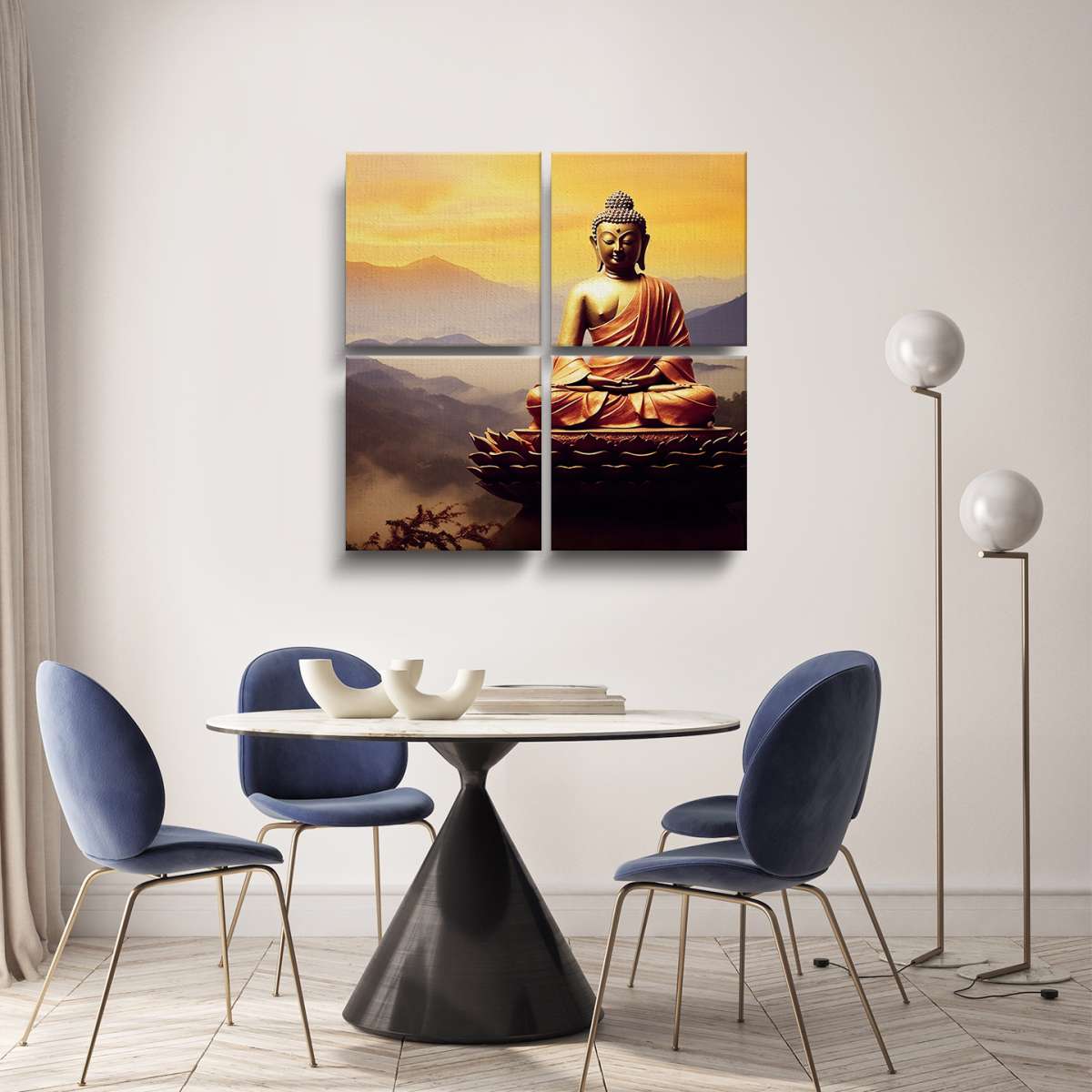 Socha Buddhy při západu slunce