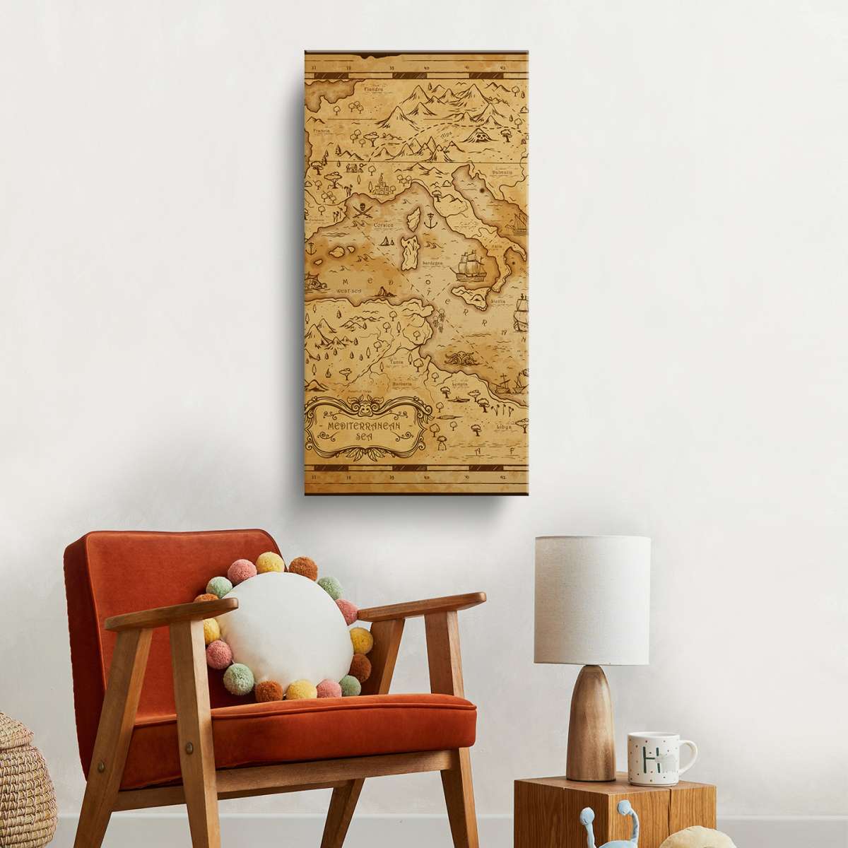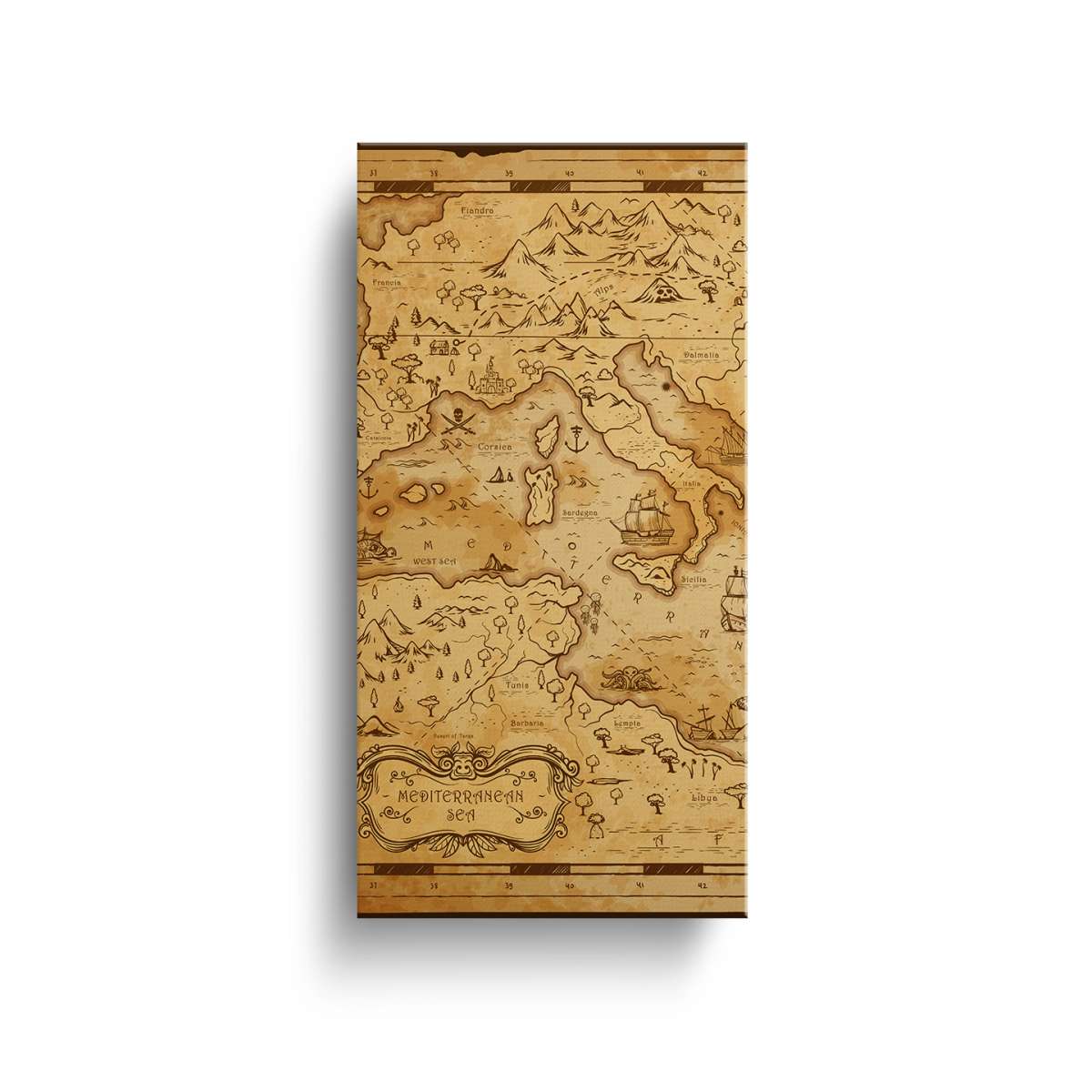 Stará mapa Středozemního moře - ilustrace