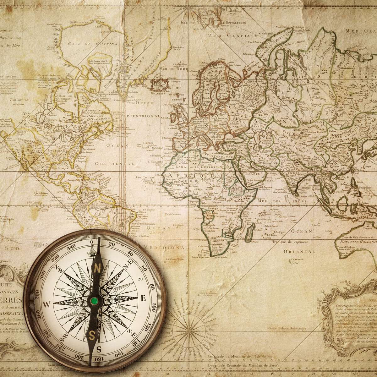 Stará mapa světa s kompasem