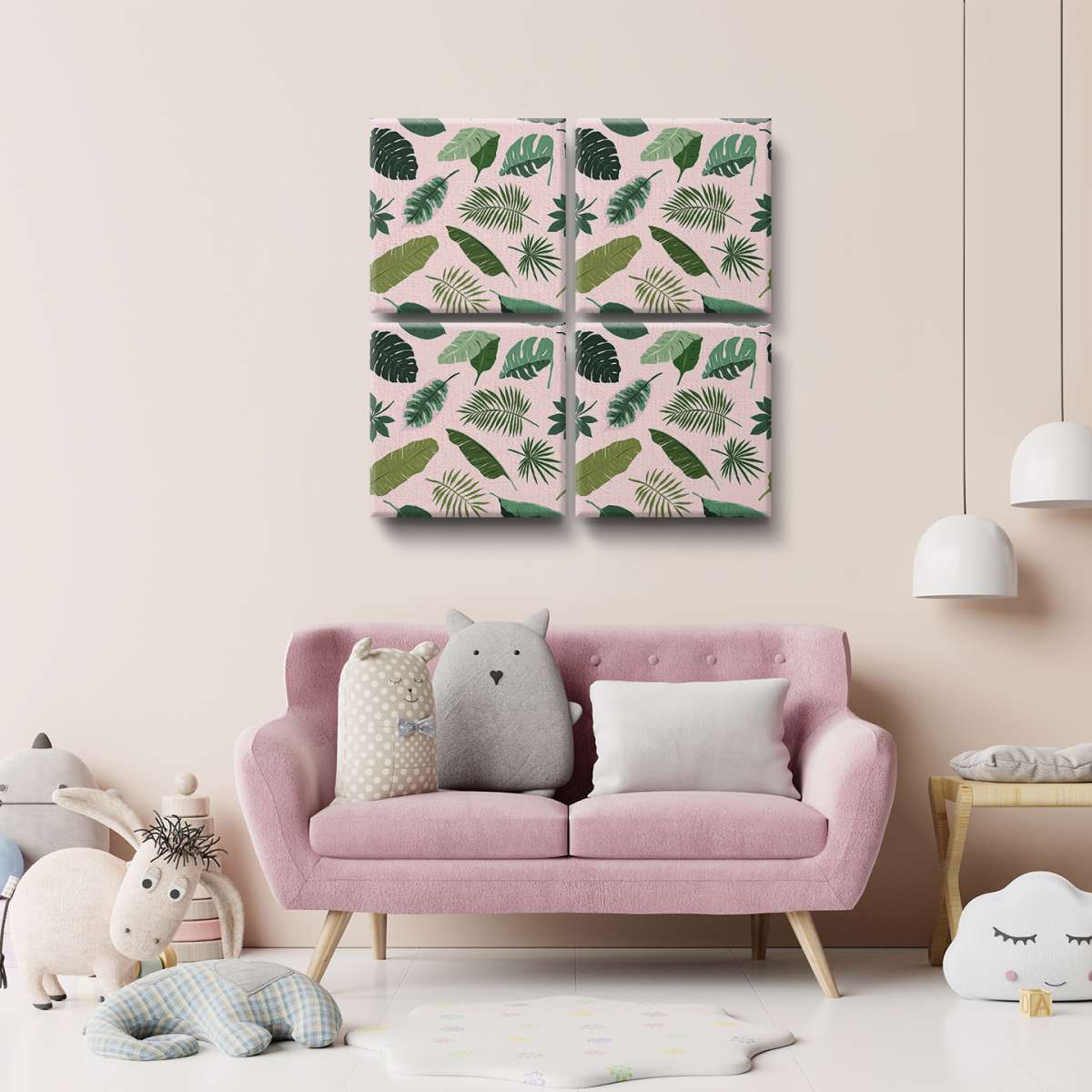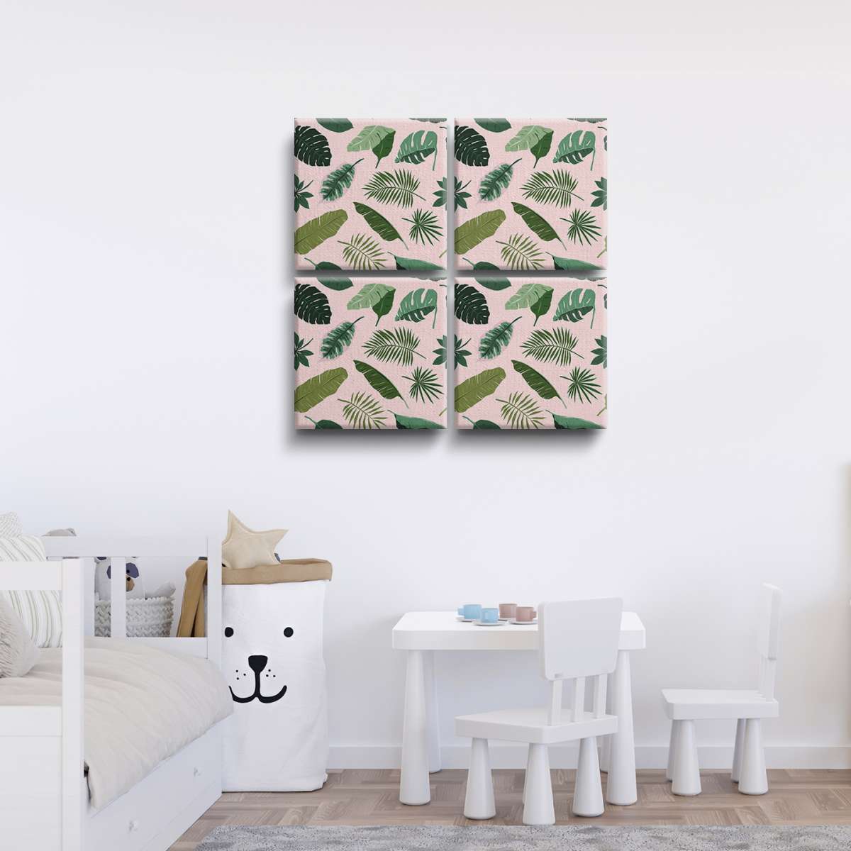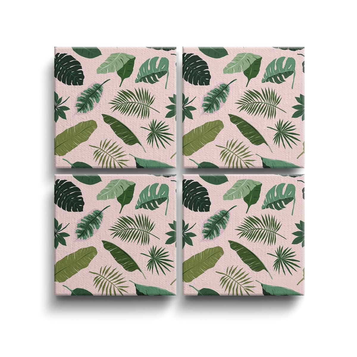Tropický rostlinný zelený vzor na růzovém pozadí