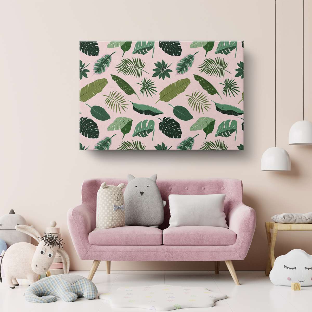Tropický rostlinný zelený vzor na růzovém pozadí