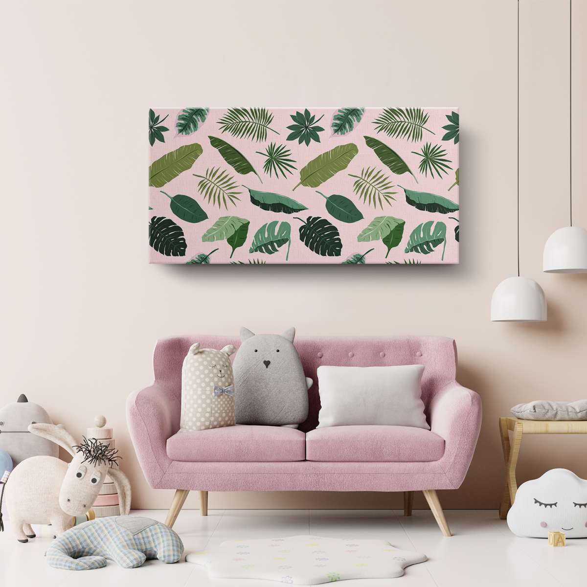 Tropický rostlinný zelený vzor na růzovém pozadí