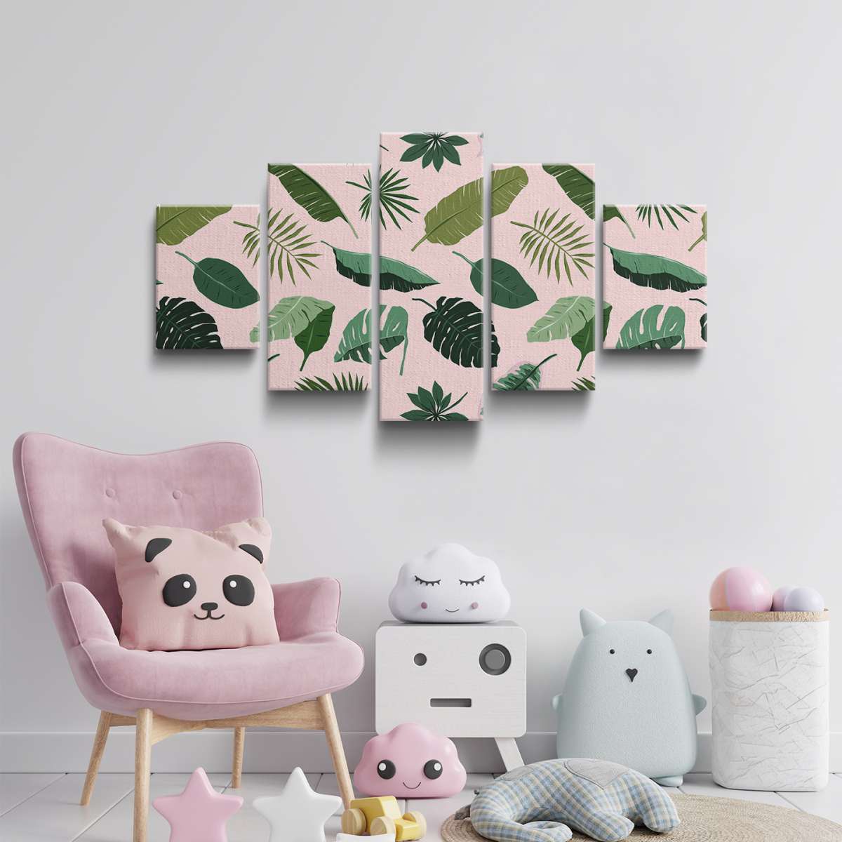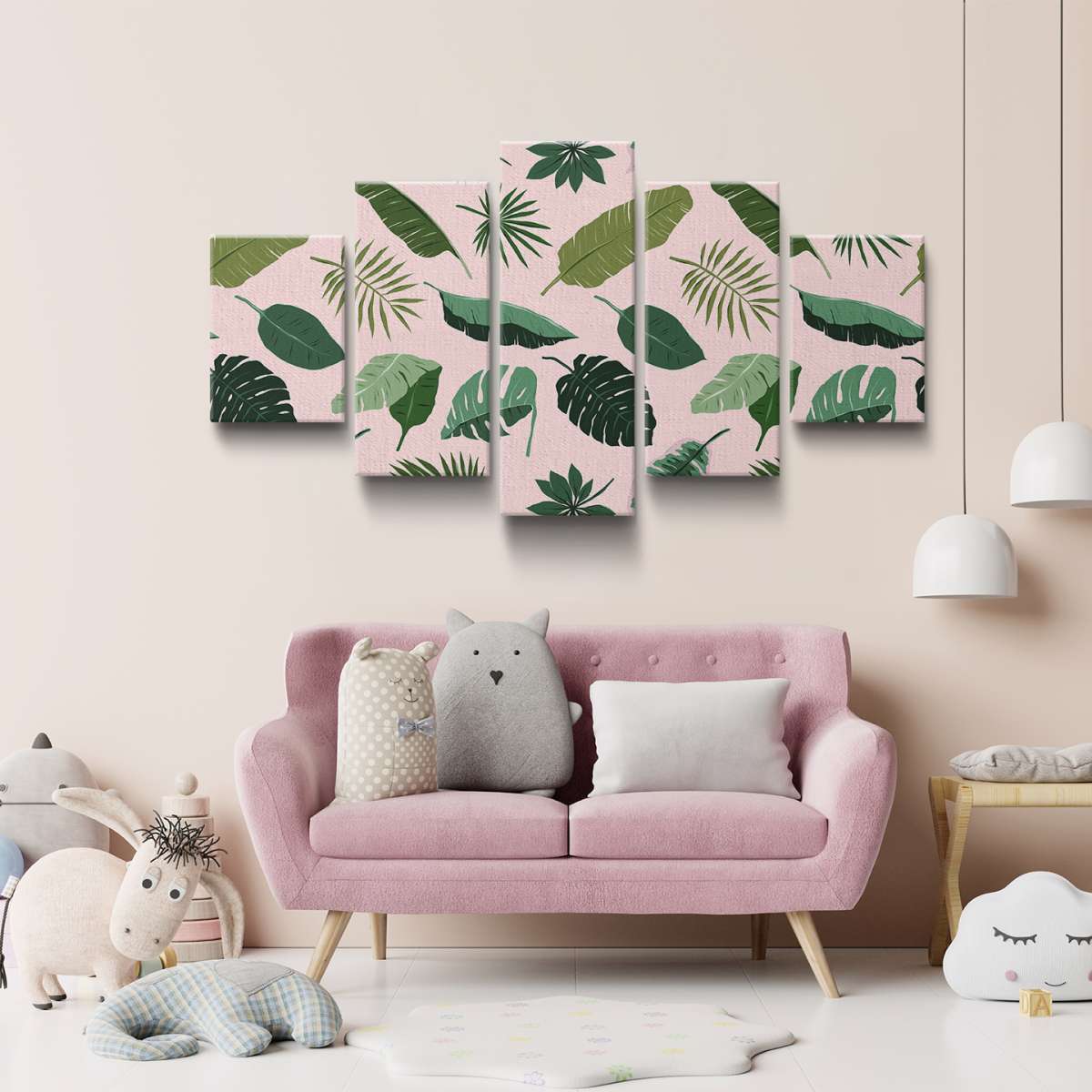 Tropický rostlinný zelený vzor na růzovém pozadí