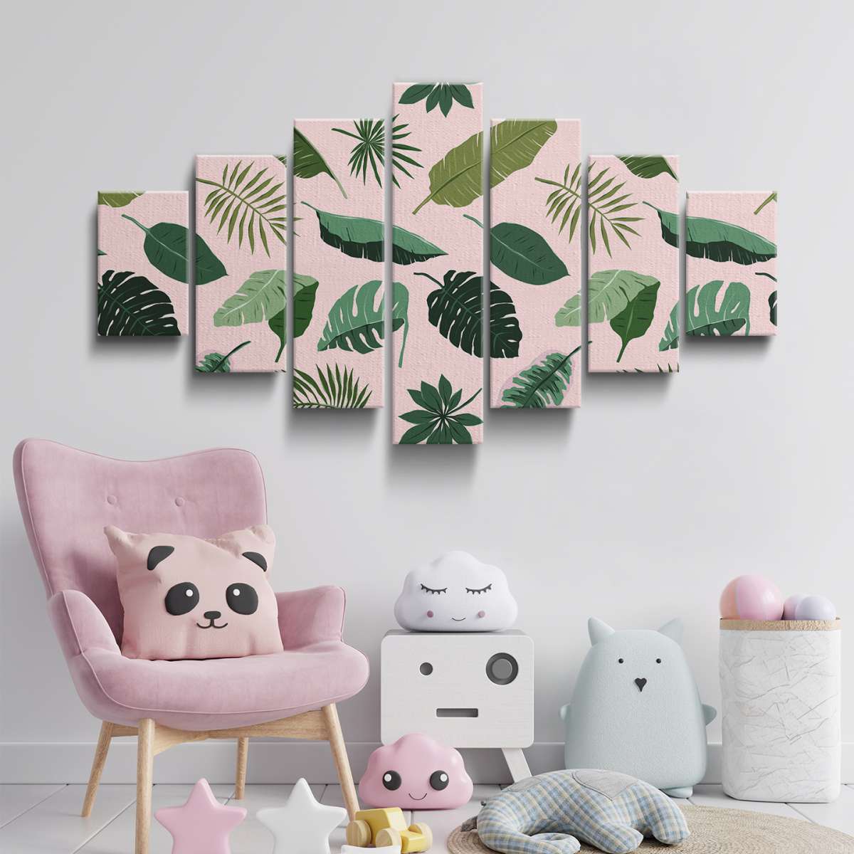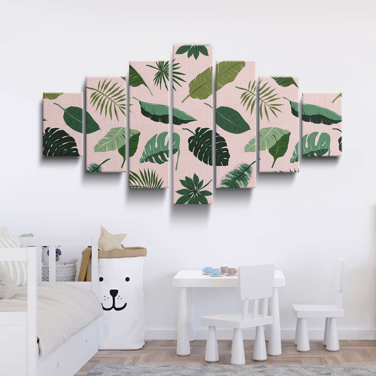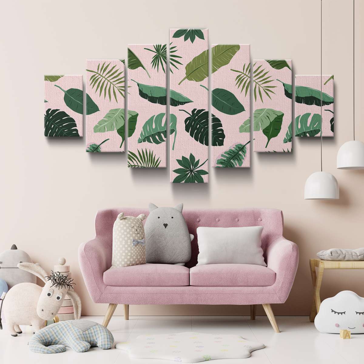 Tropický rostlinný zelený vzor na růzovém pozadí