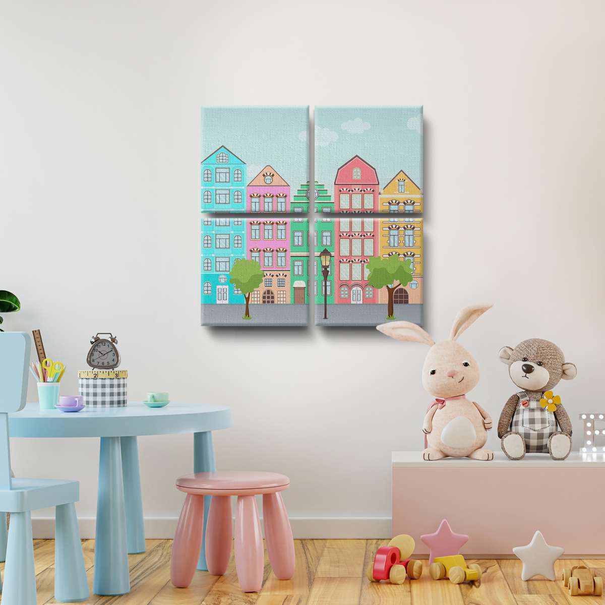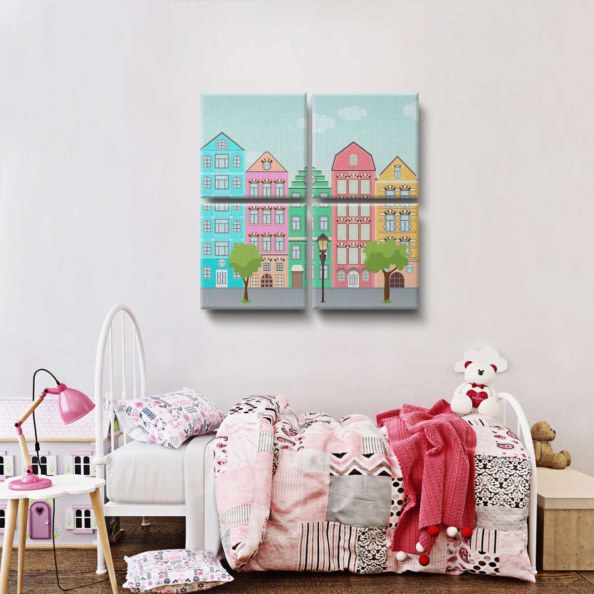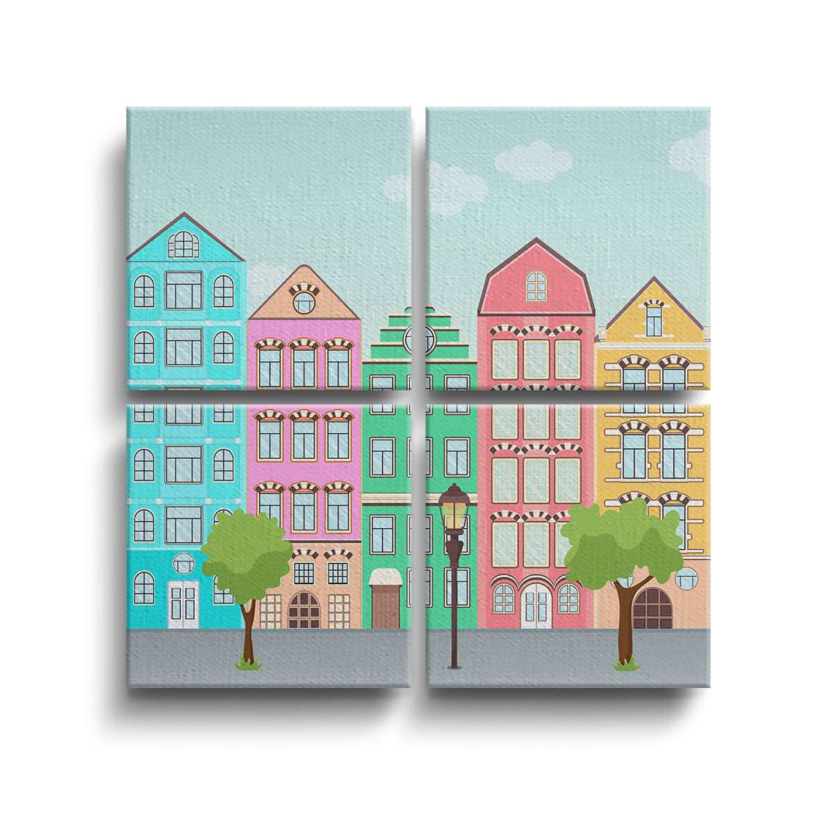 Ulice s barevnými domy - ilustrace