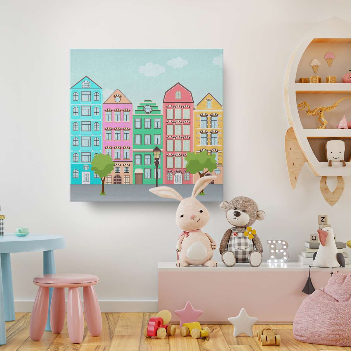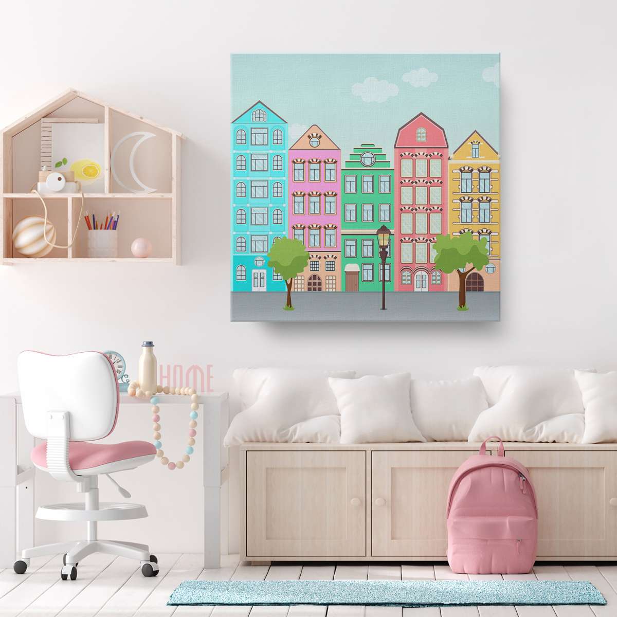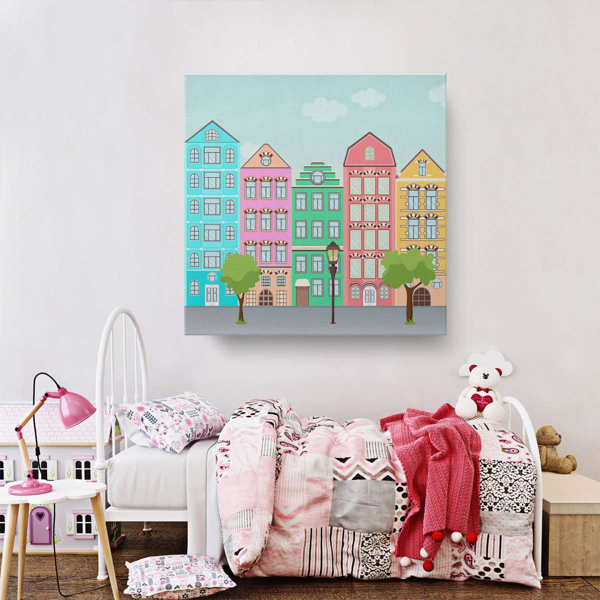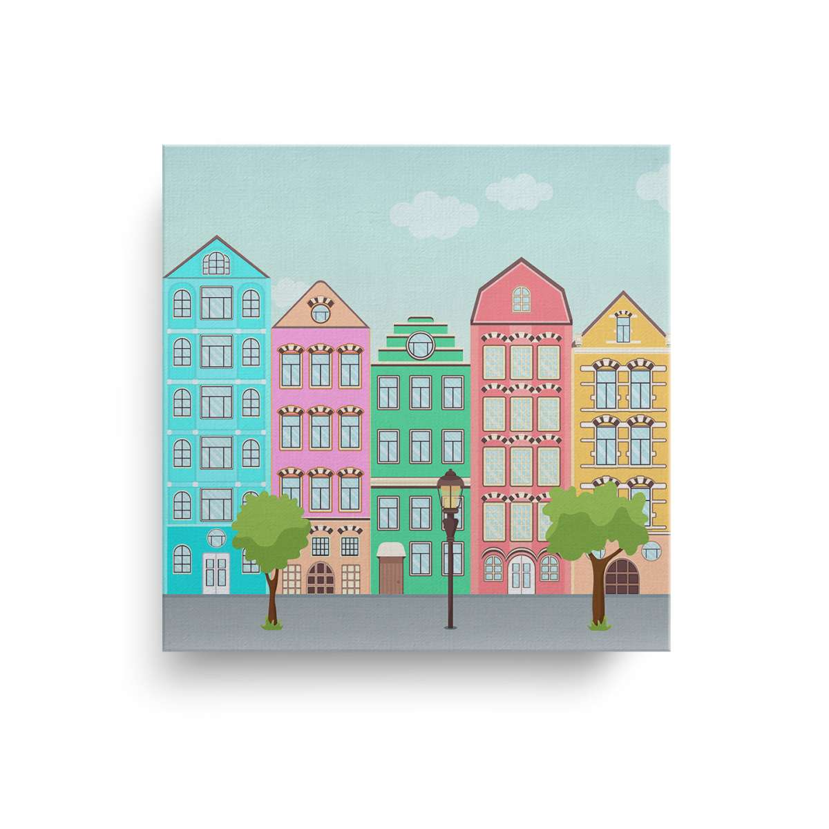 Ulice s barevnými domy - ilustrace