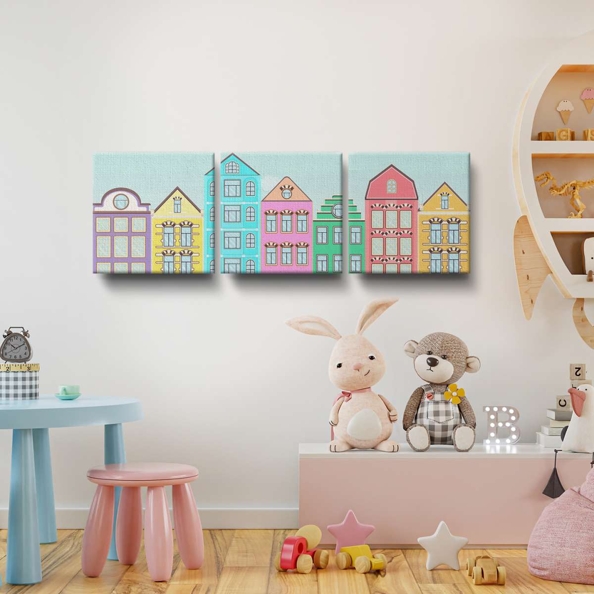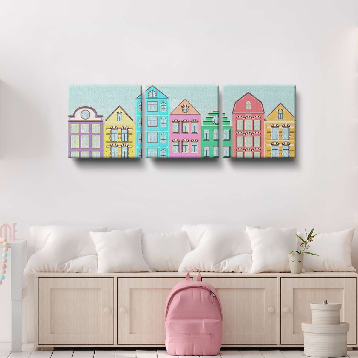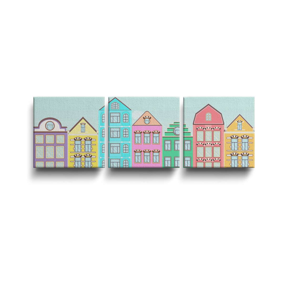 Ulice s barevnými domy - ilustrace
