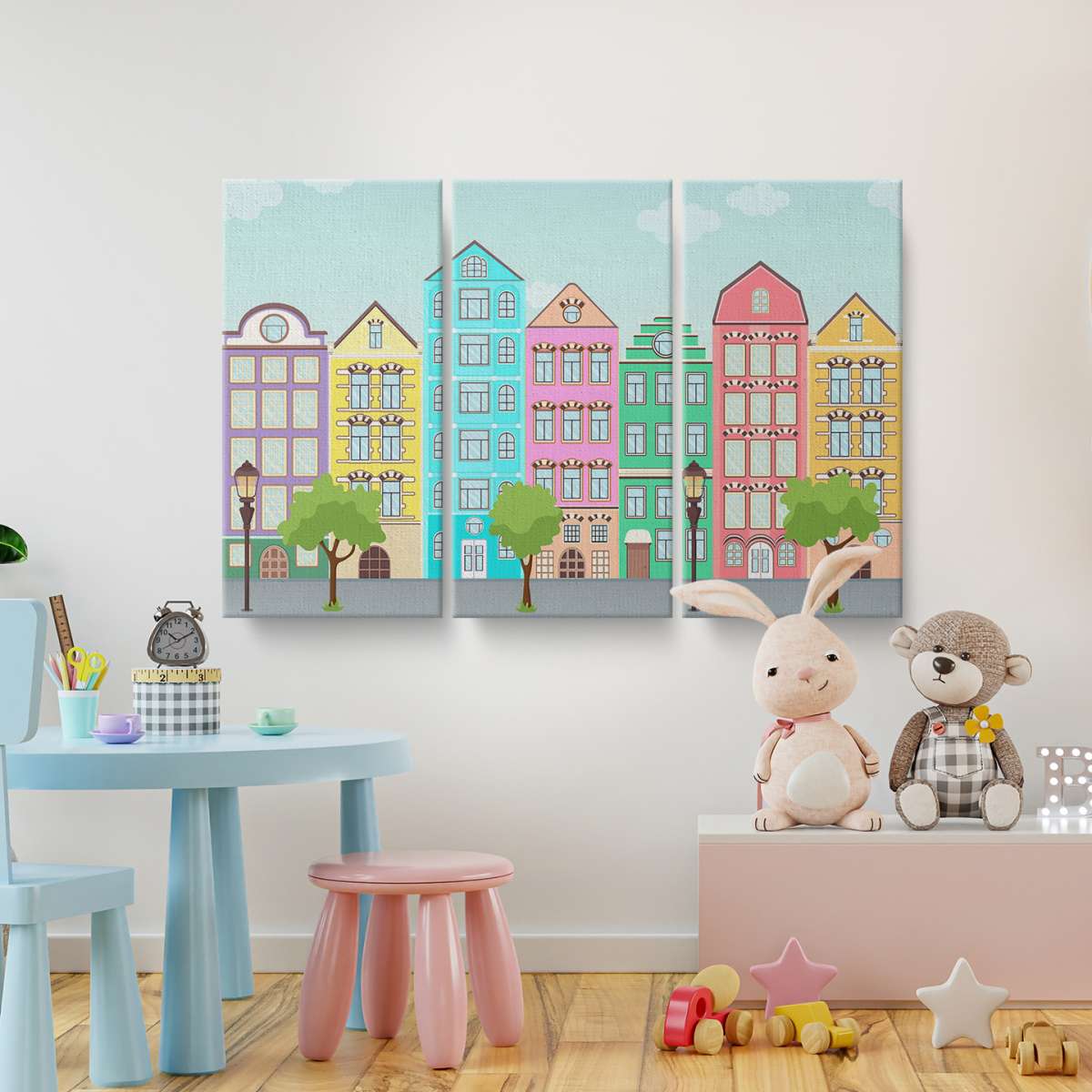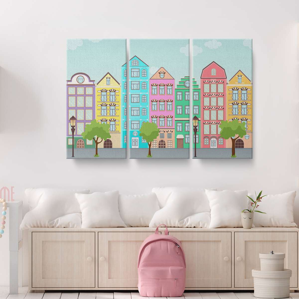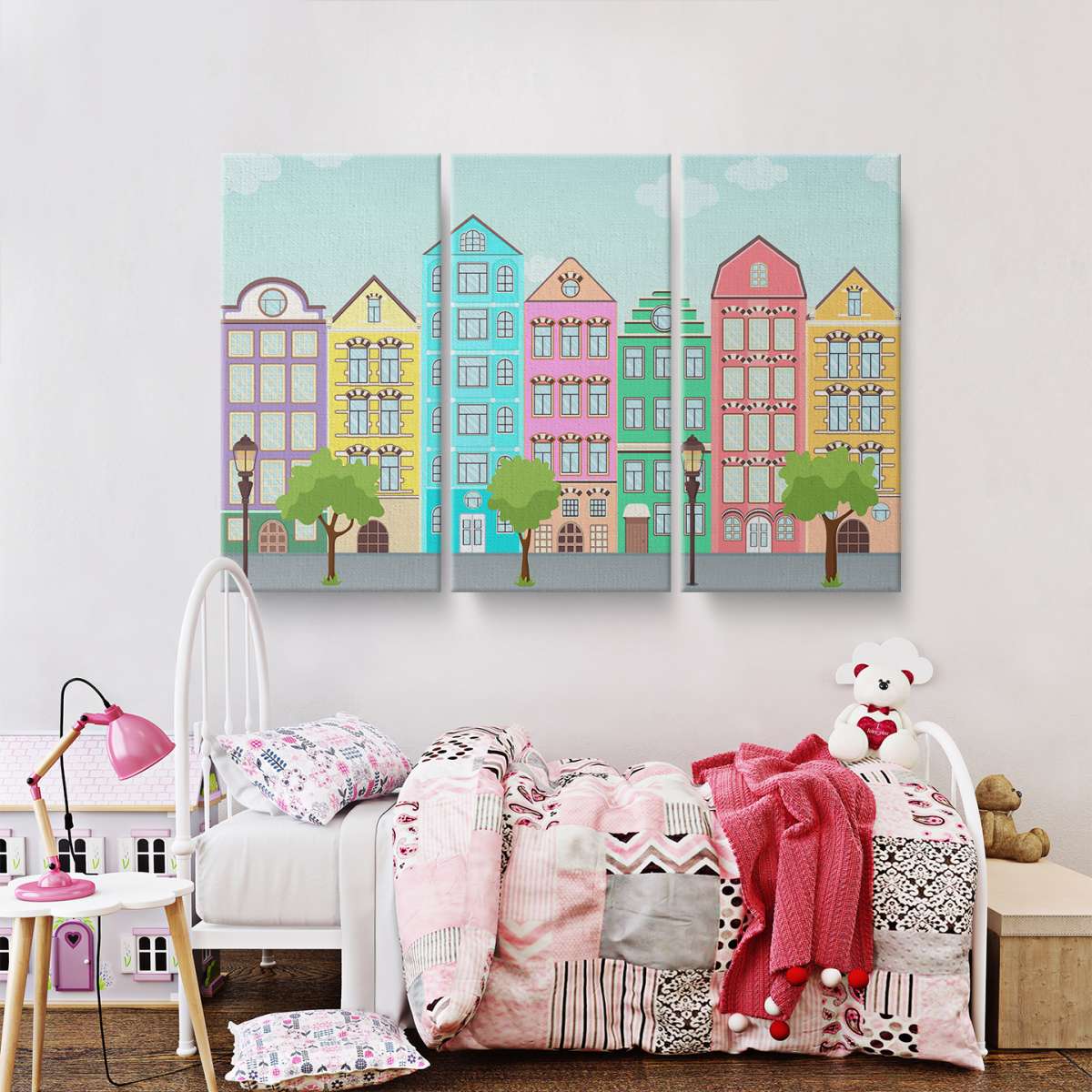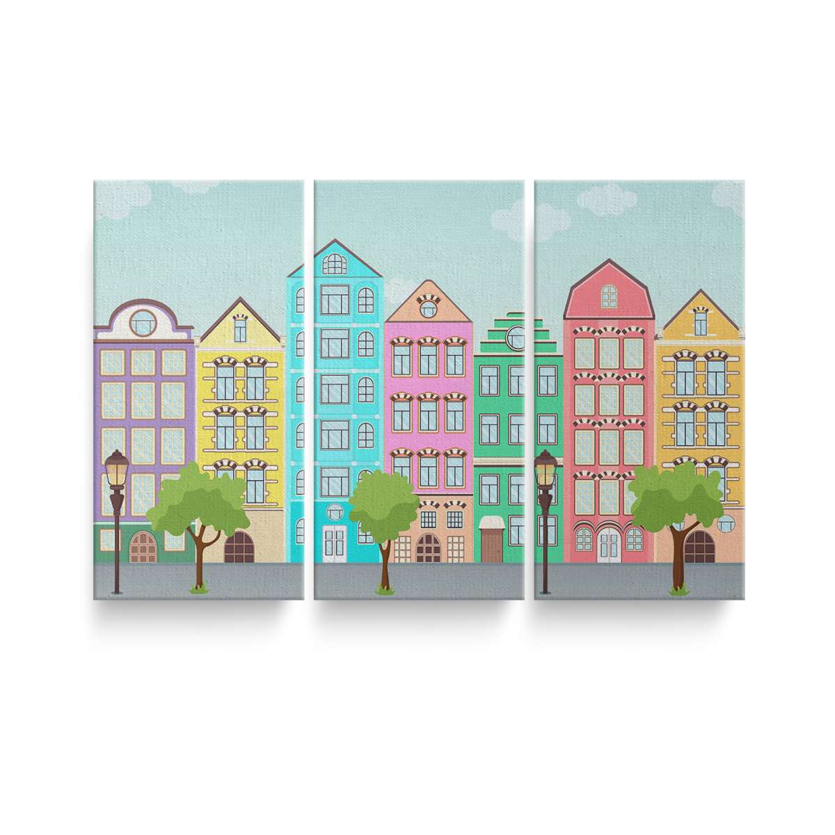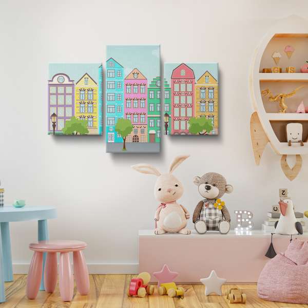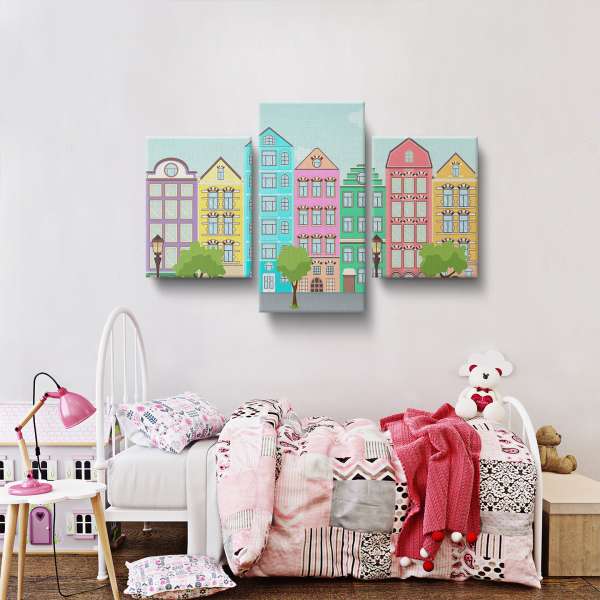Ulice s barevnými domy - ilustrace