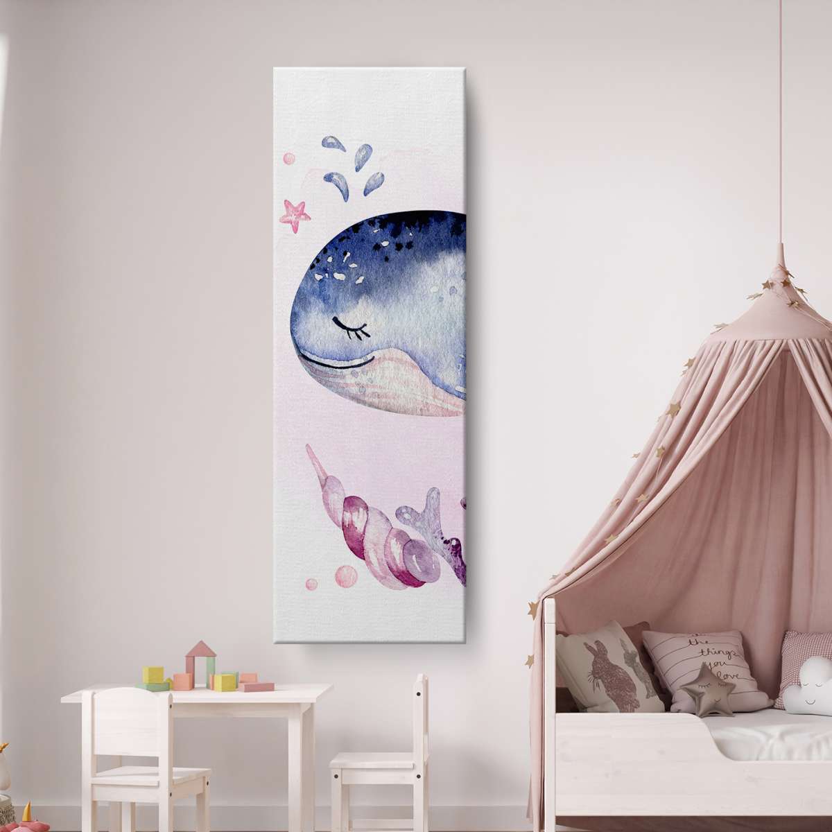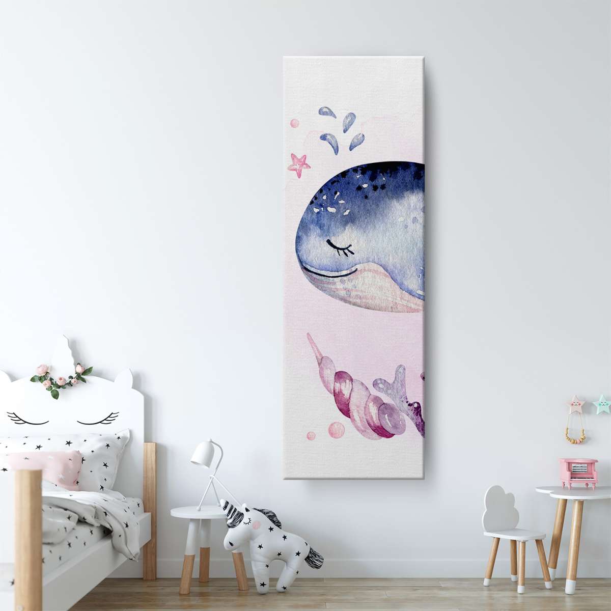 Velryba s korály - akvarel