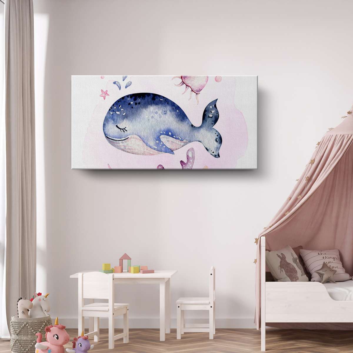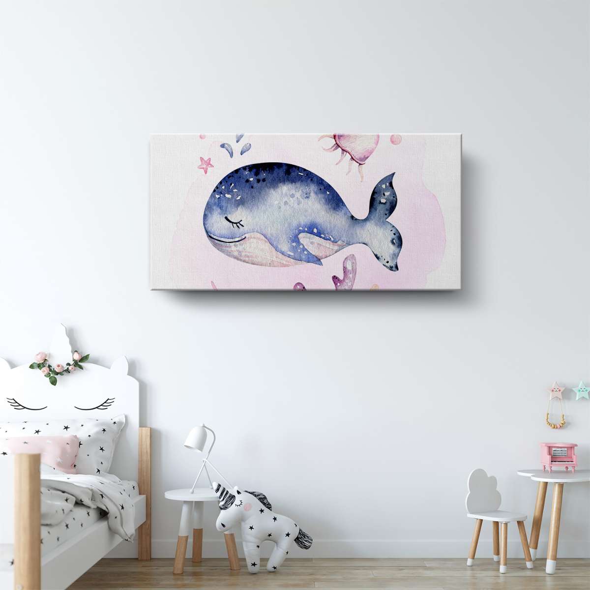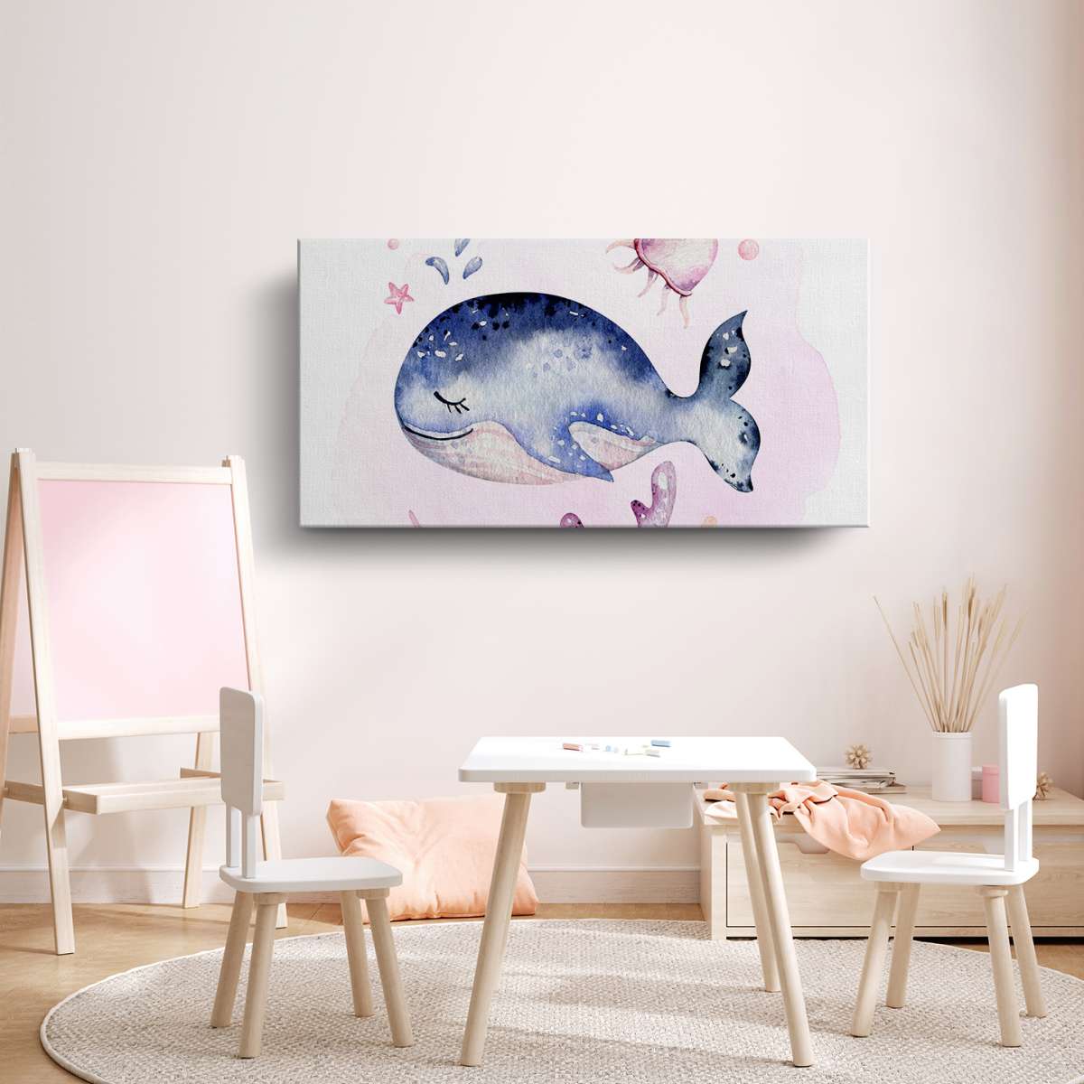 Velryba s korály - akvarel