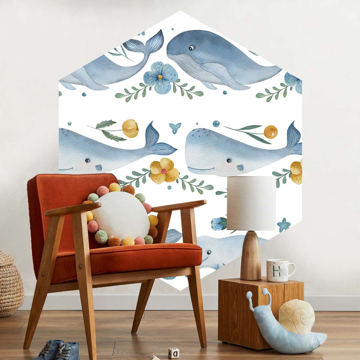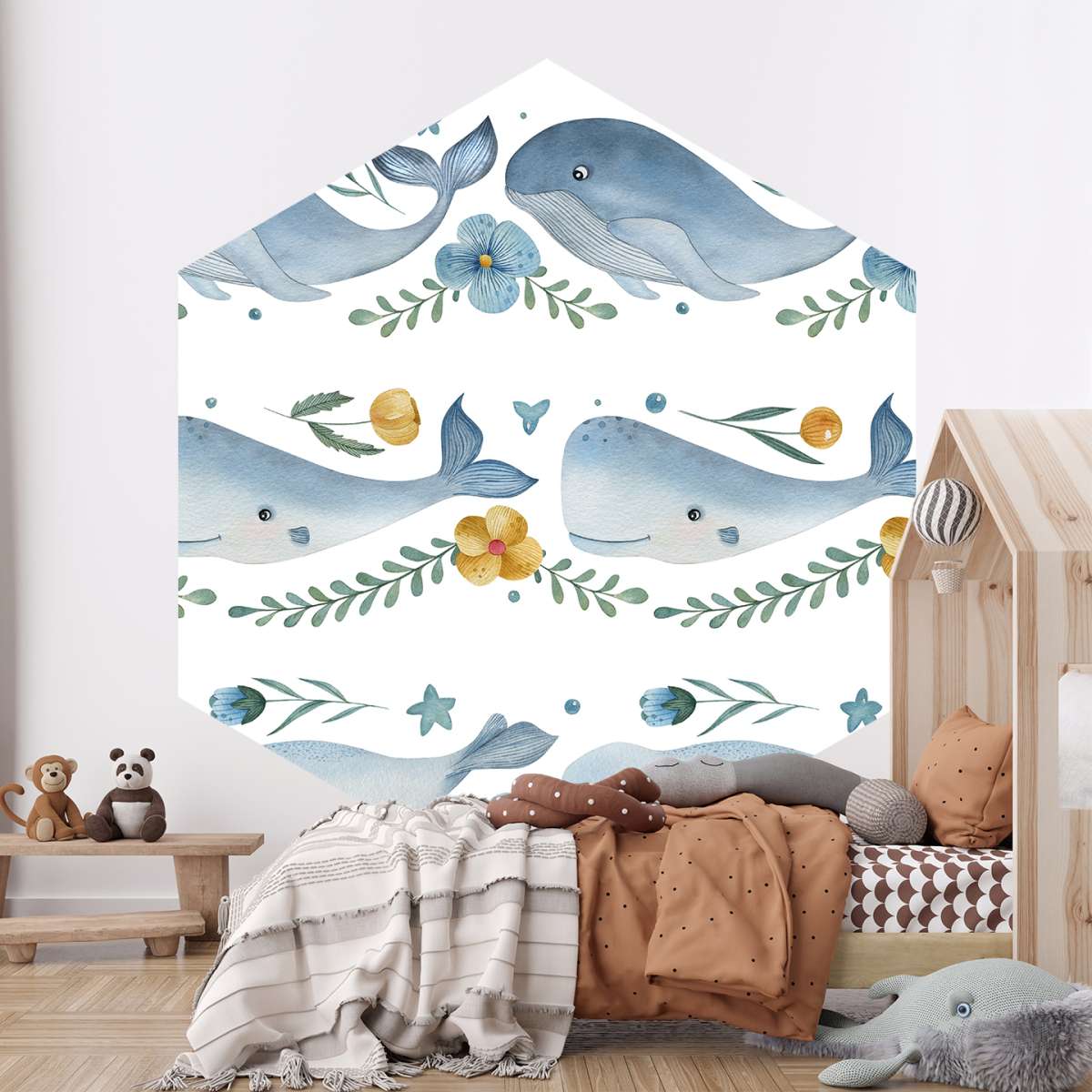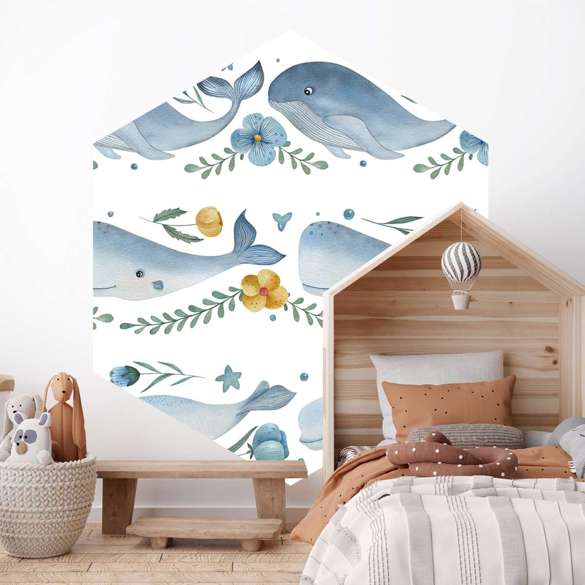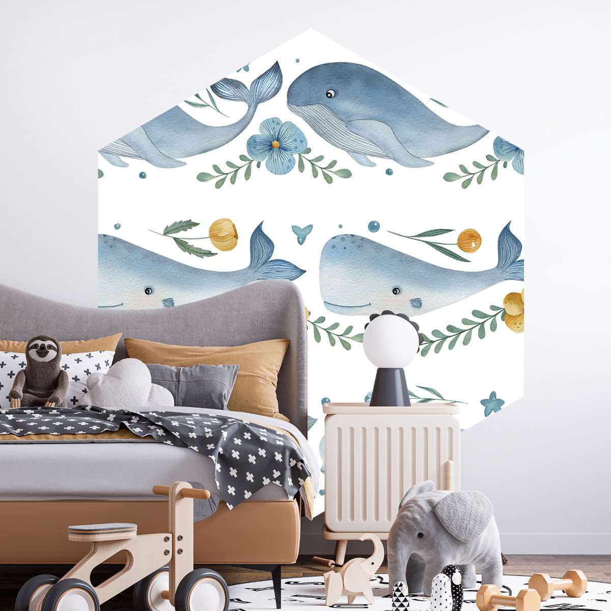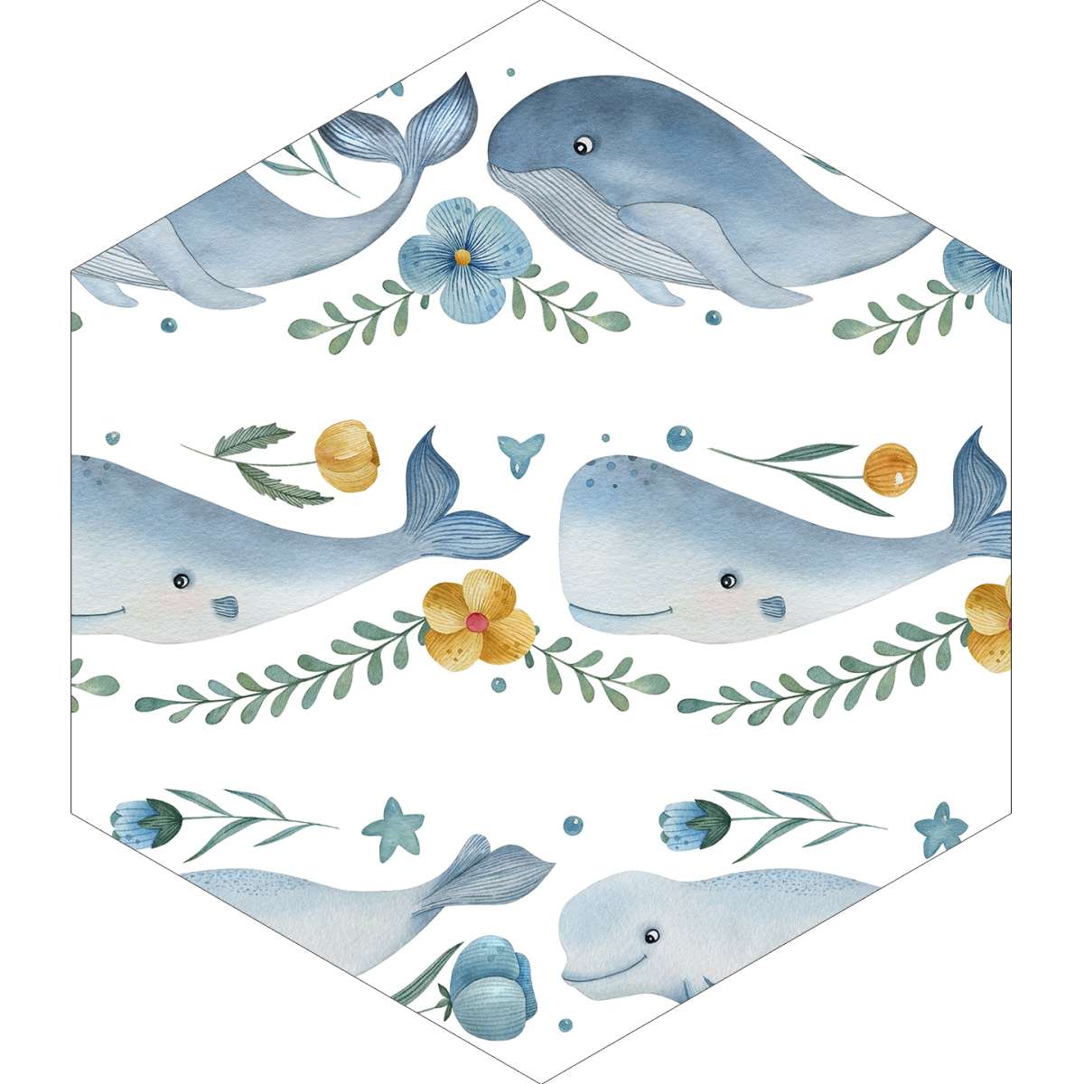 Velryba, vorvaň a velryba beluga - akvarelový vzor