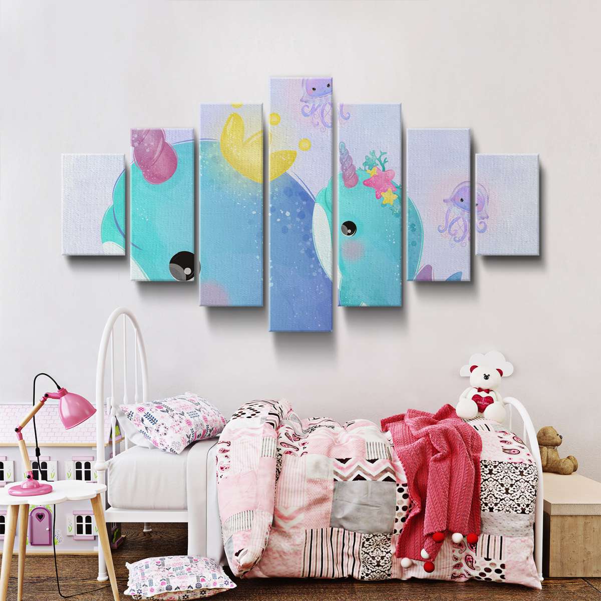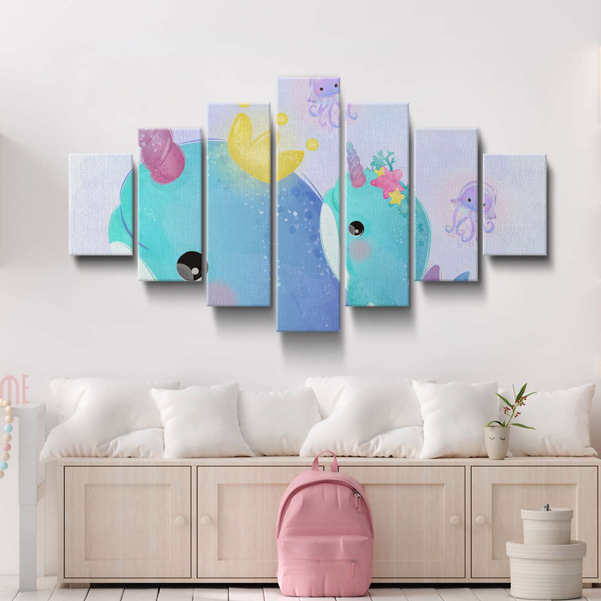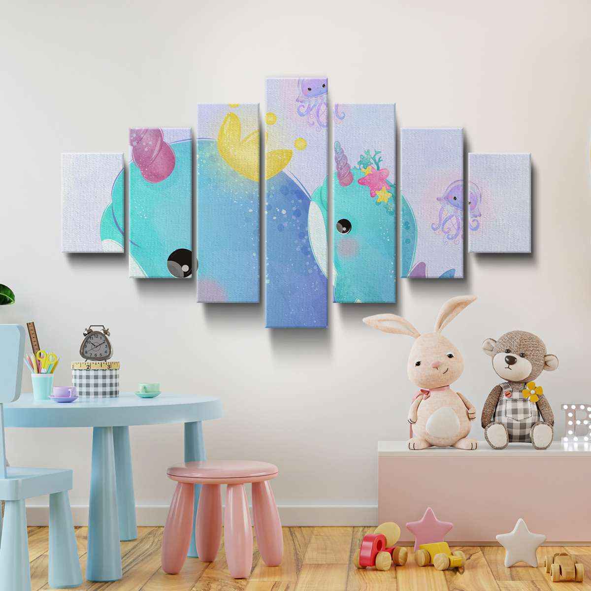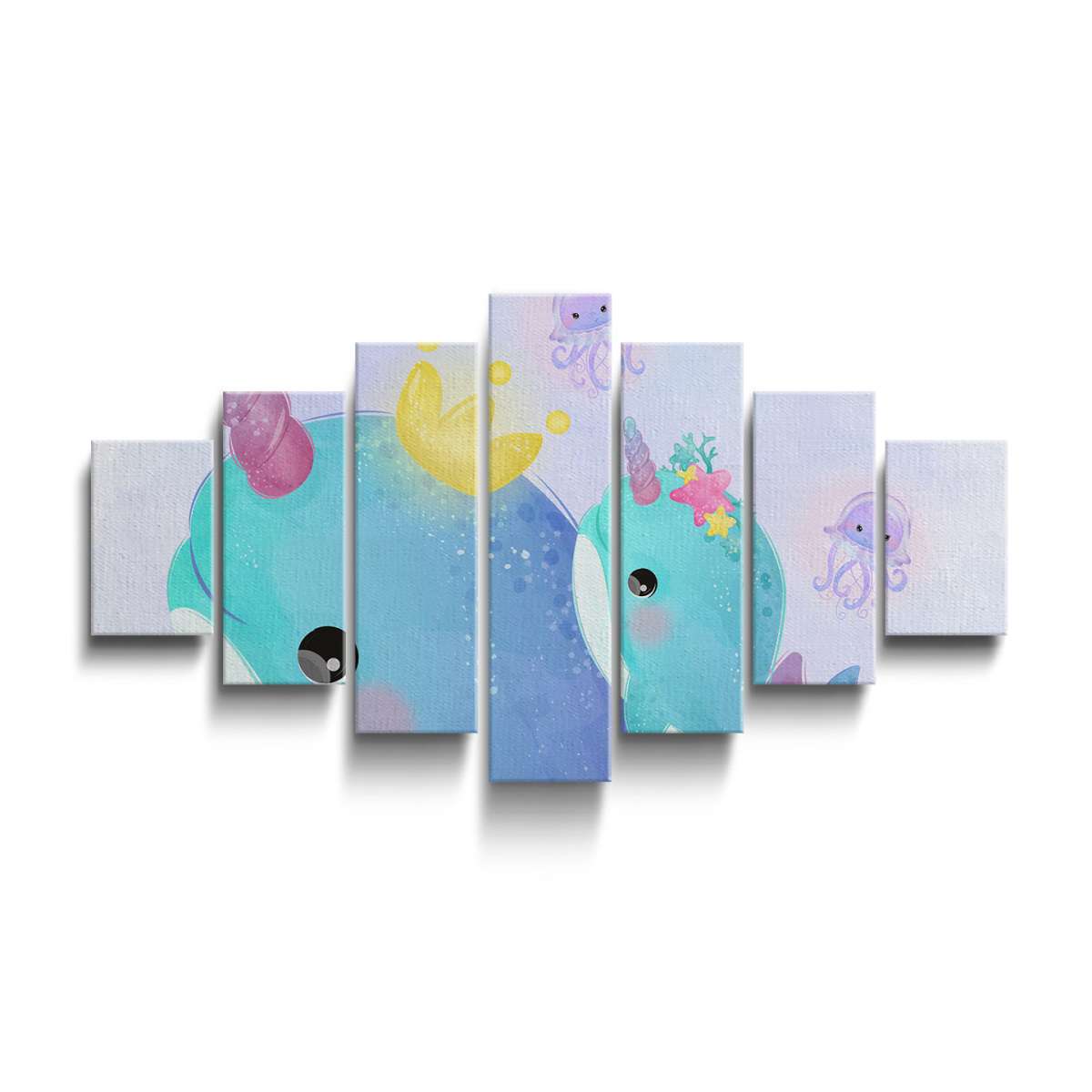Velryby jednorožci - akvarel