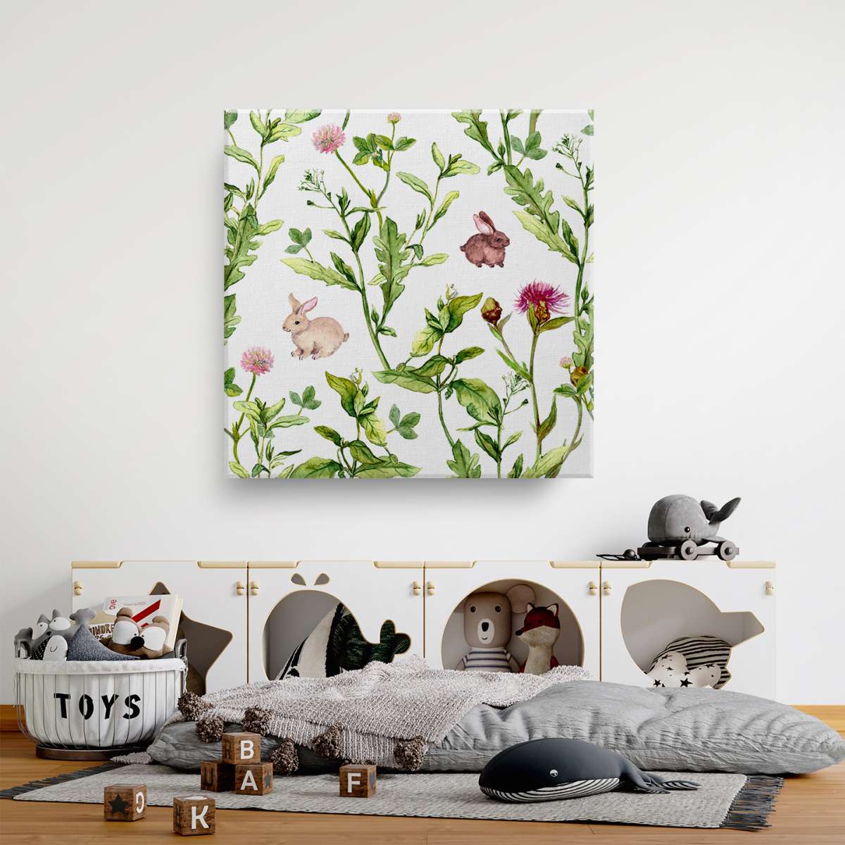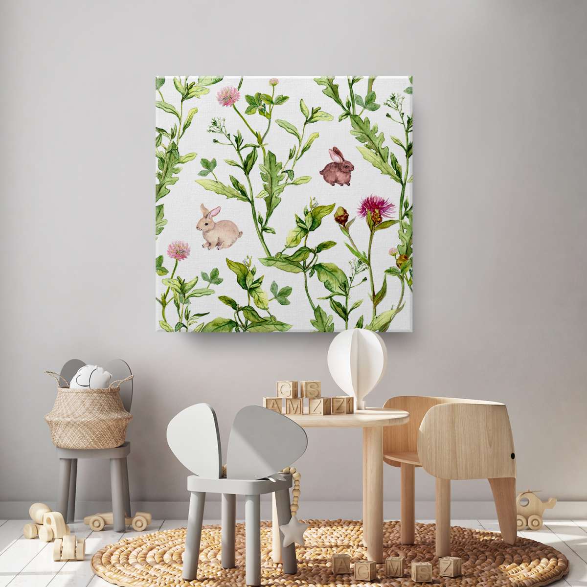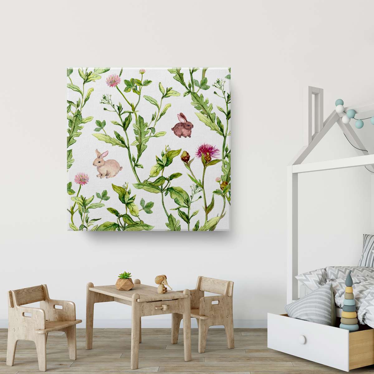 Vzor letní louky s králíky - akvarel