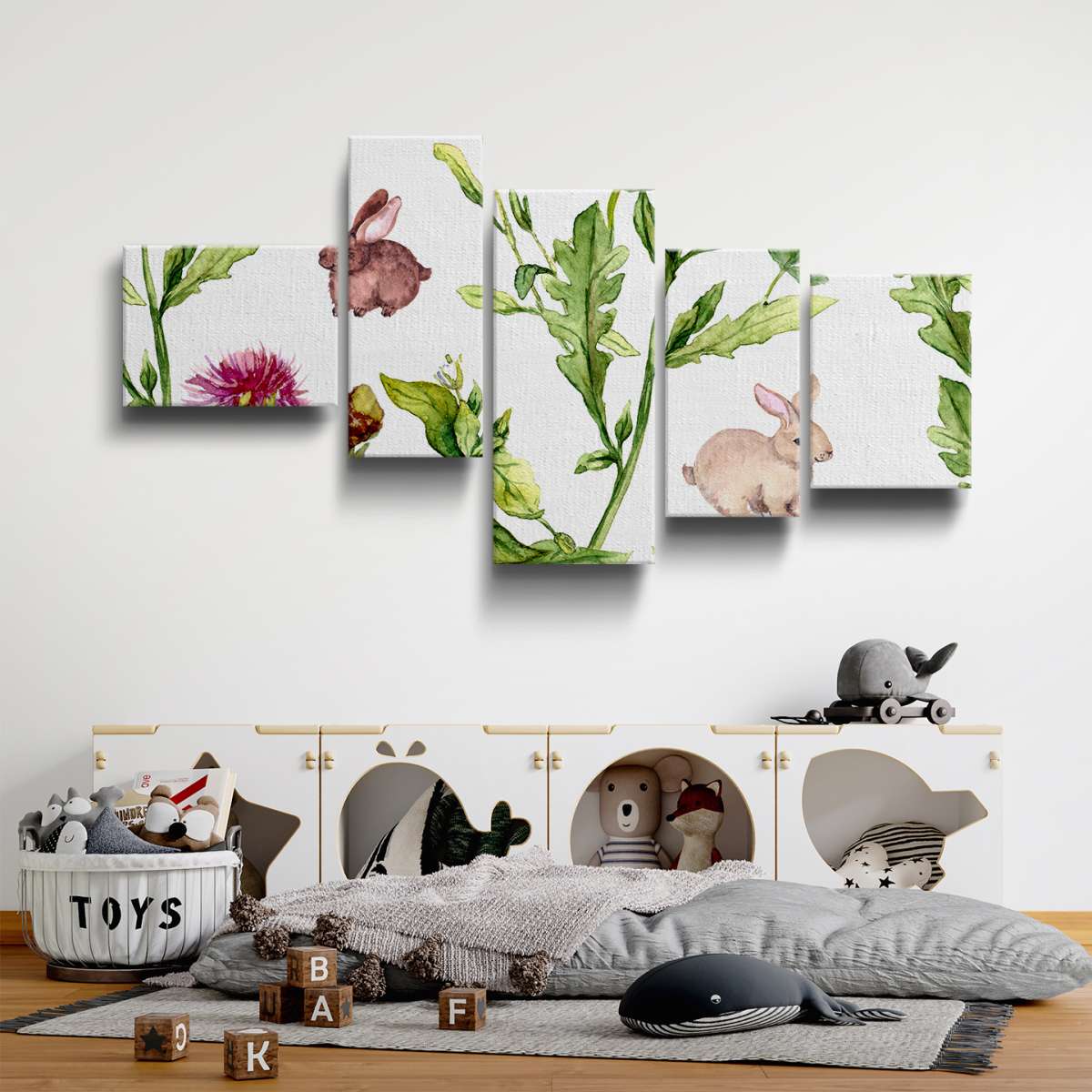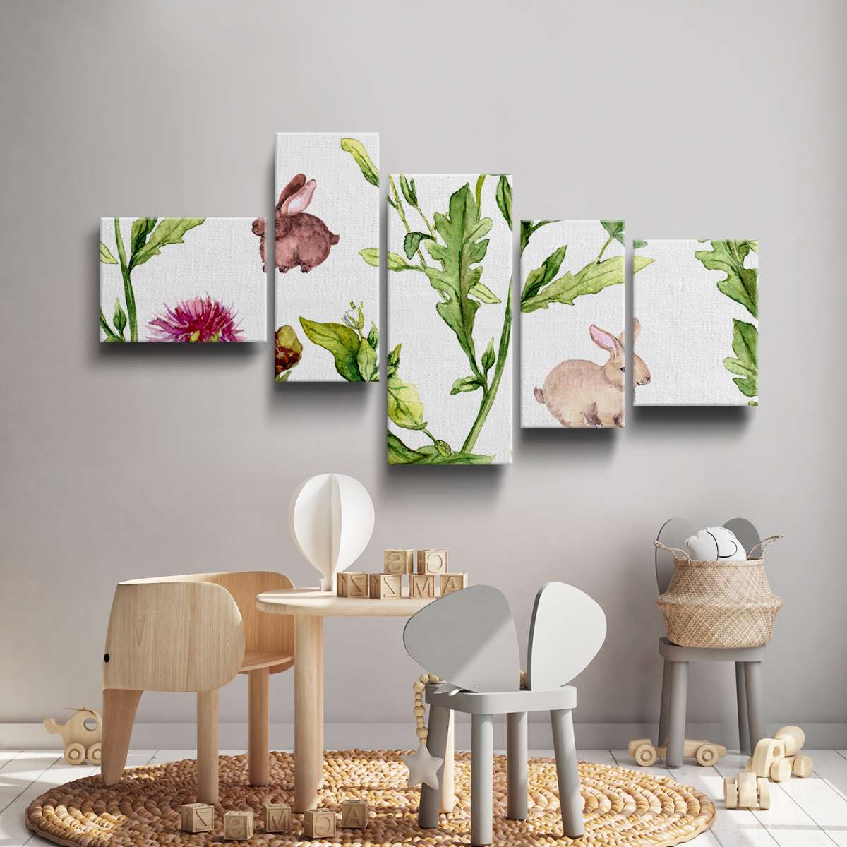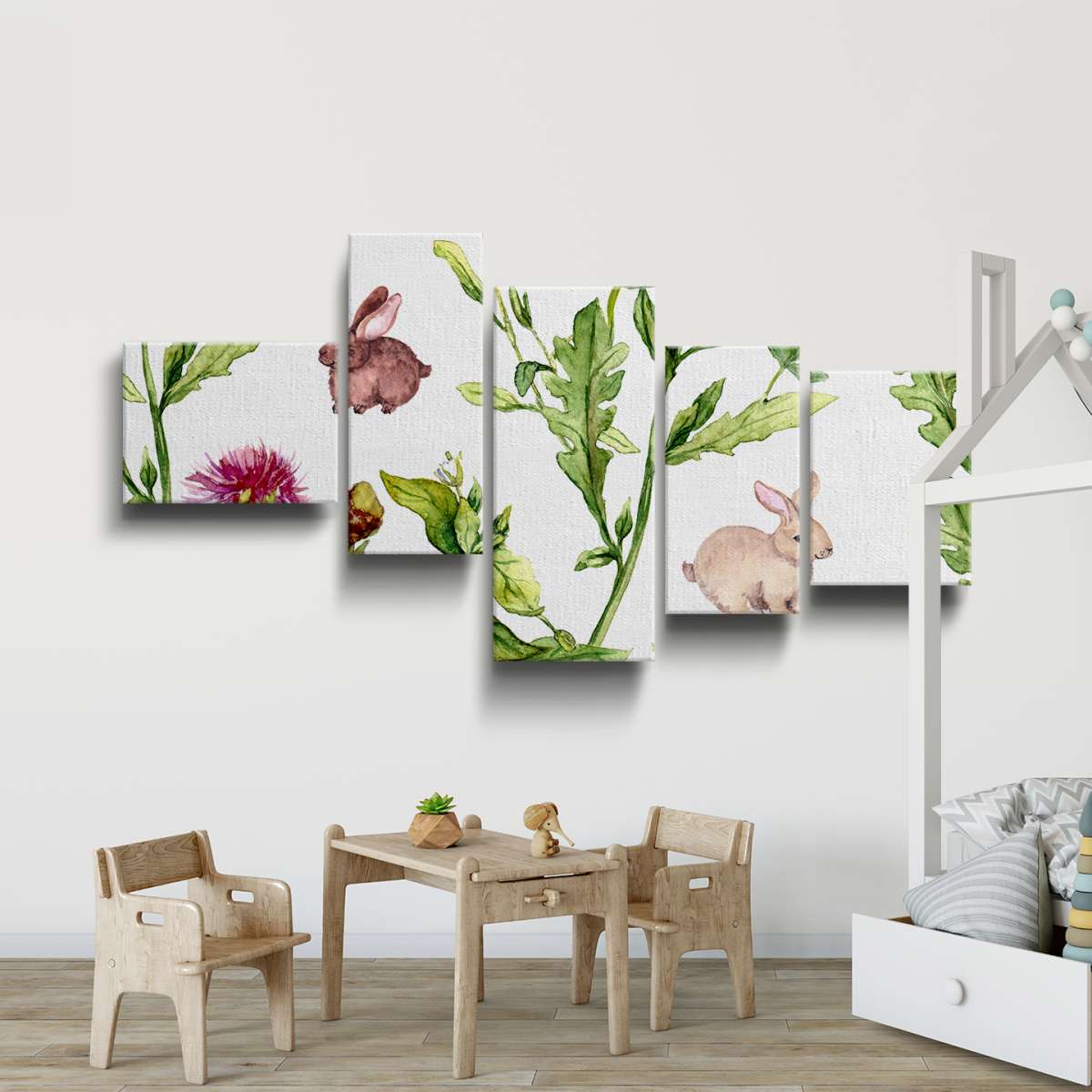 Vzor letní louky s králíky - akvarel
