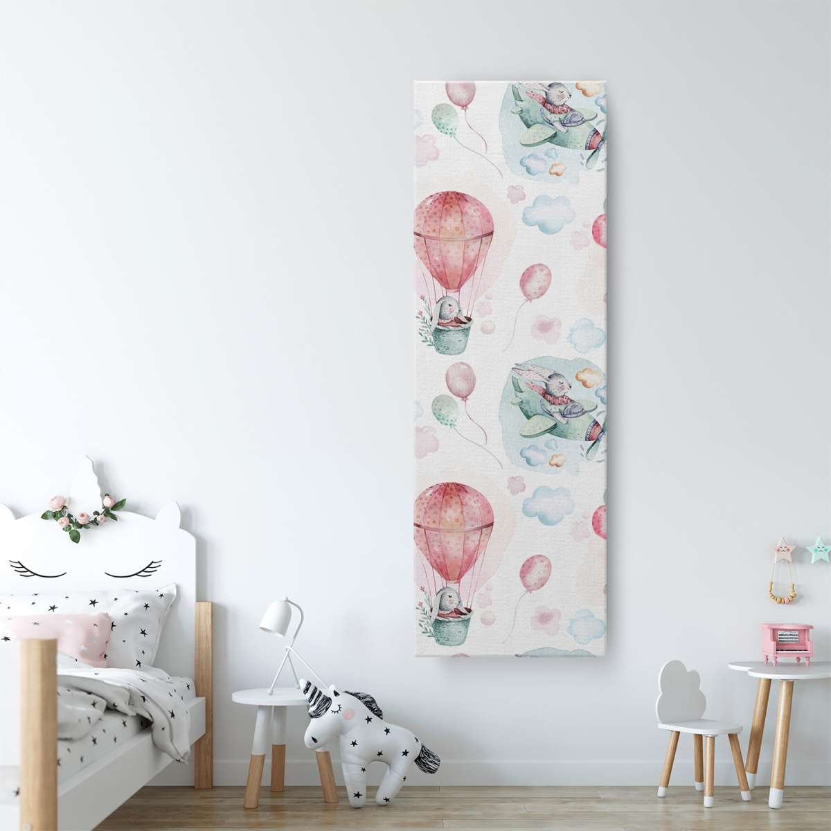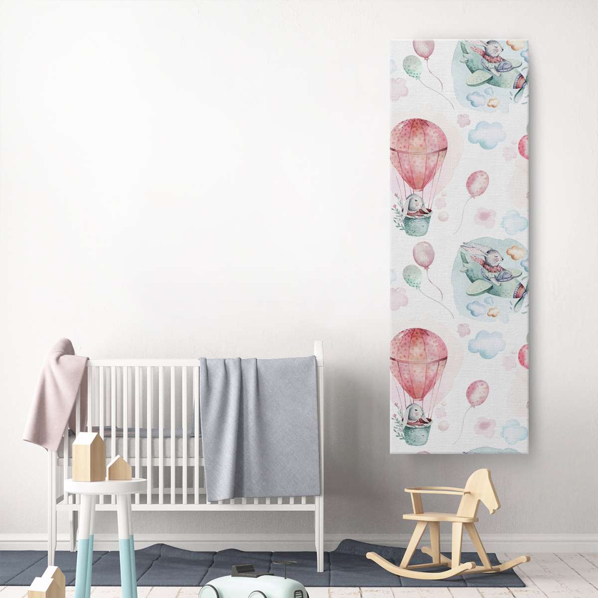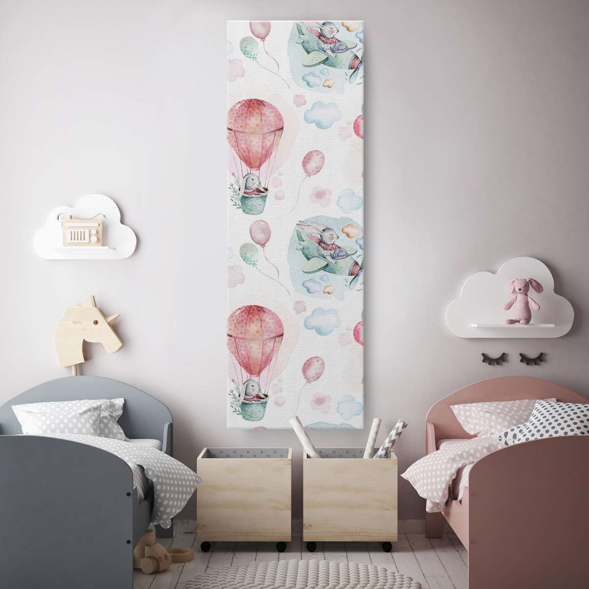 Zajíci létající na balónech a letadlech - akvarel