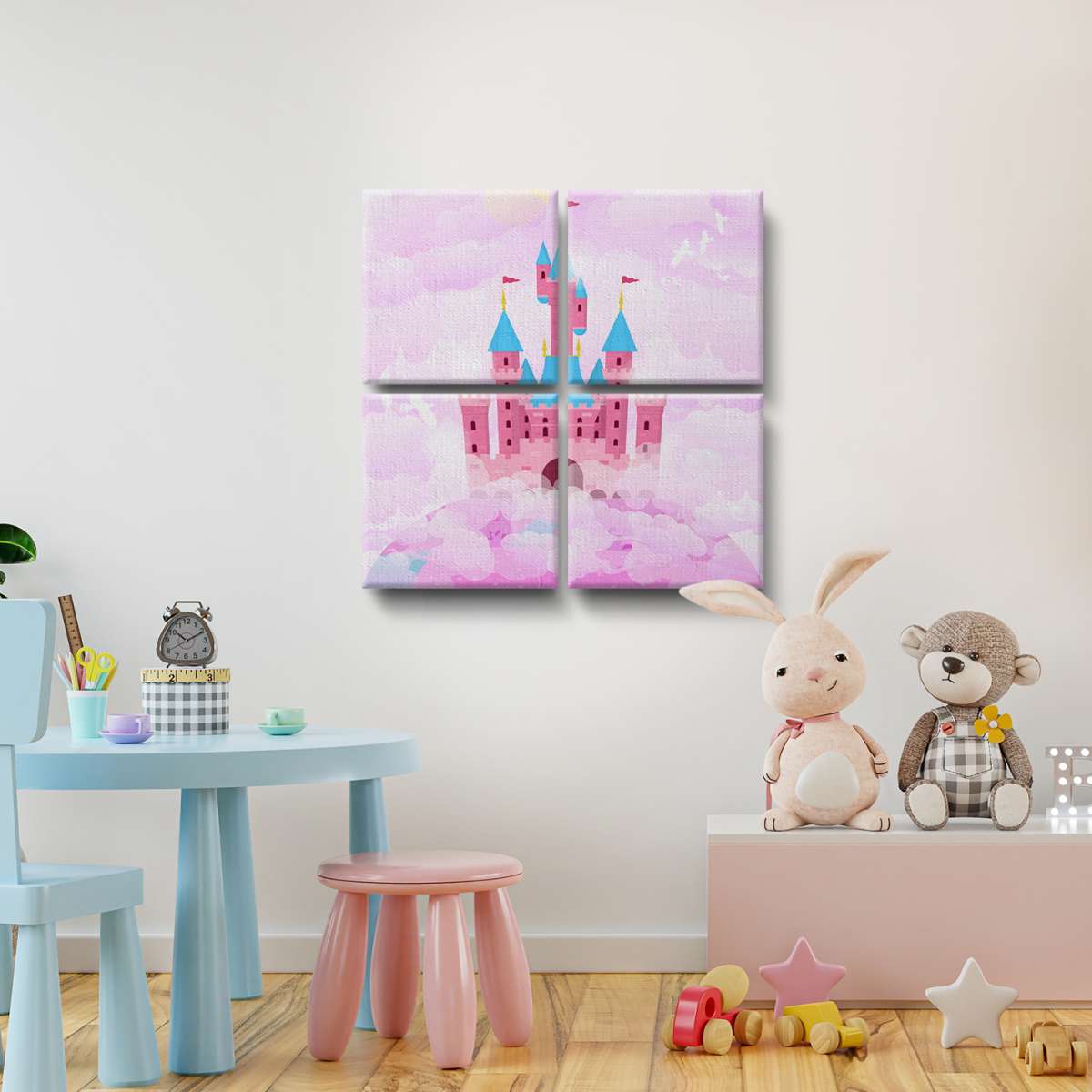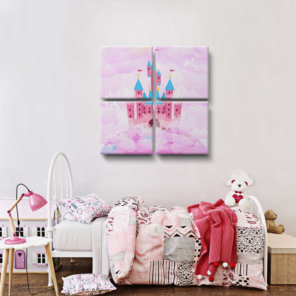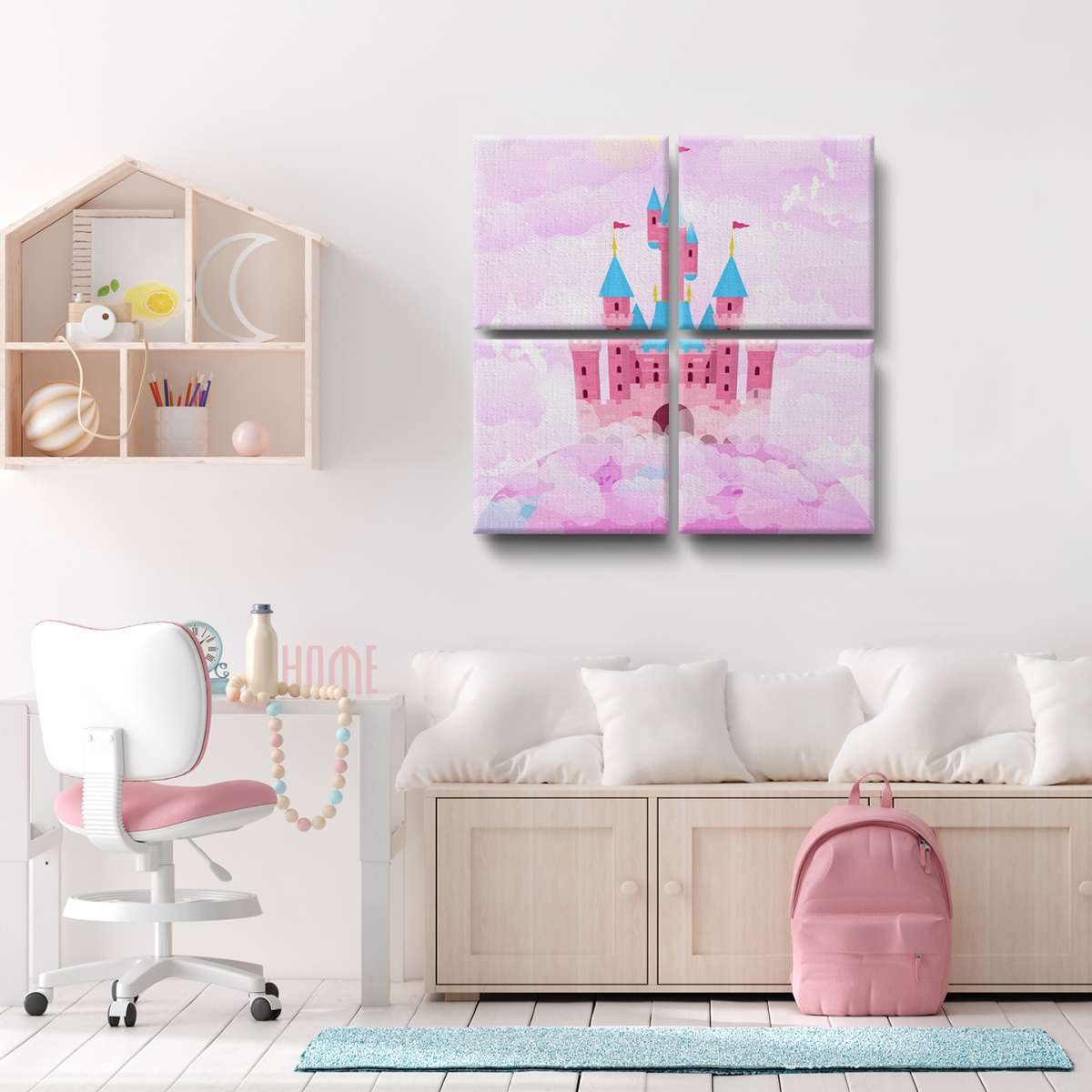 Zámek v oblacích - růžová ilustrace