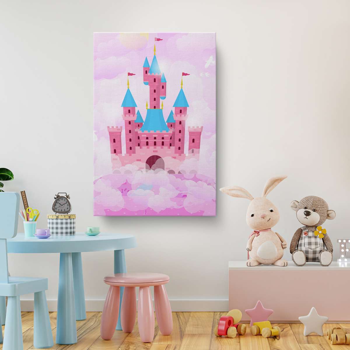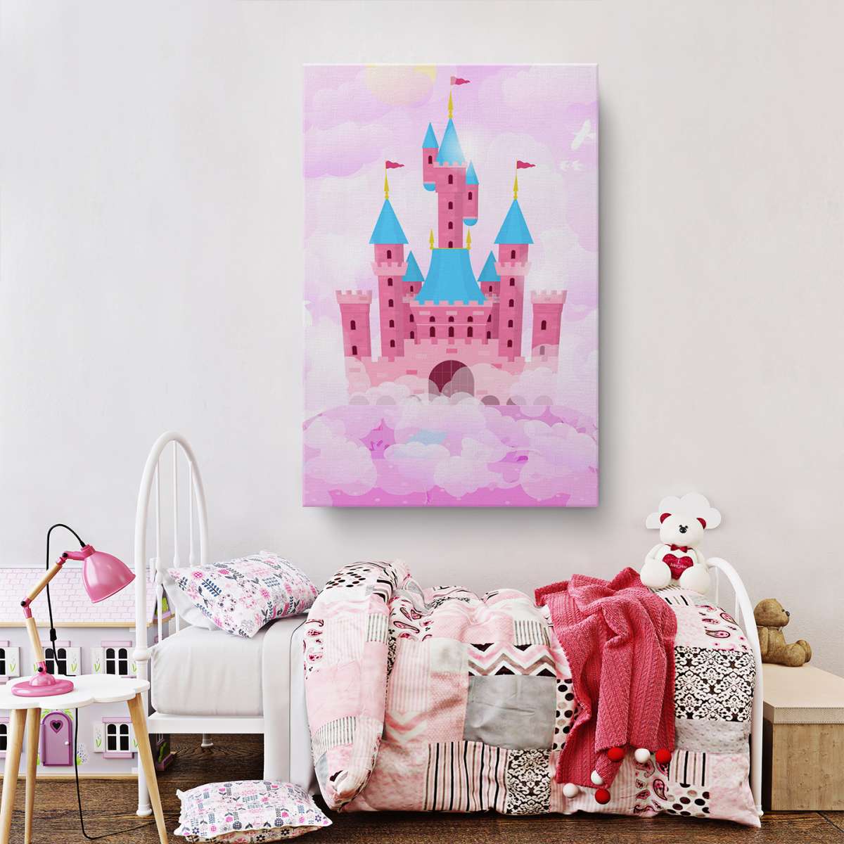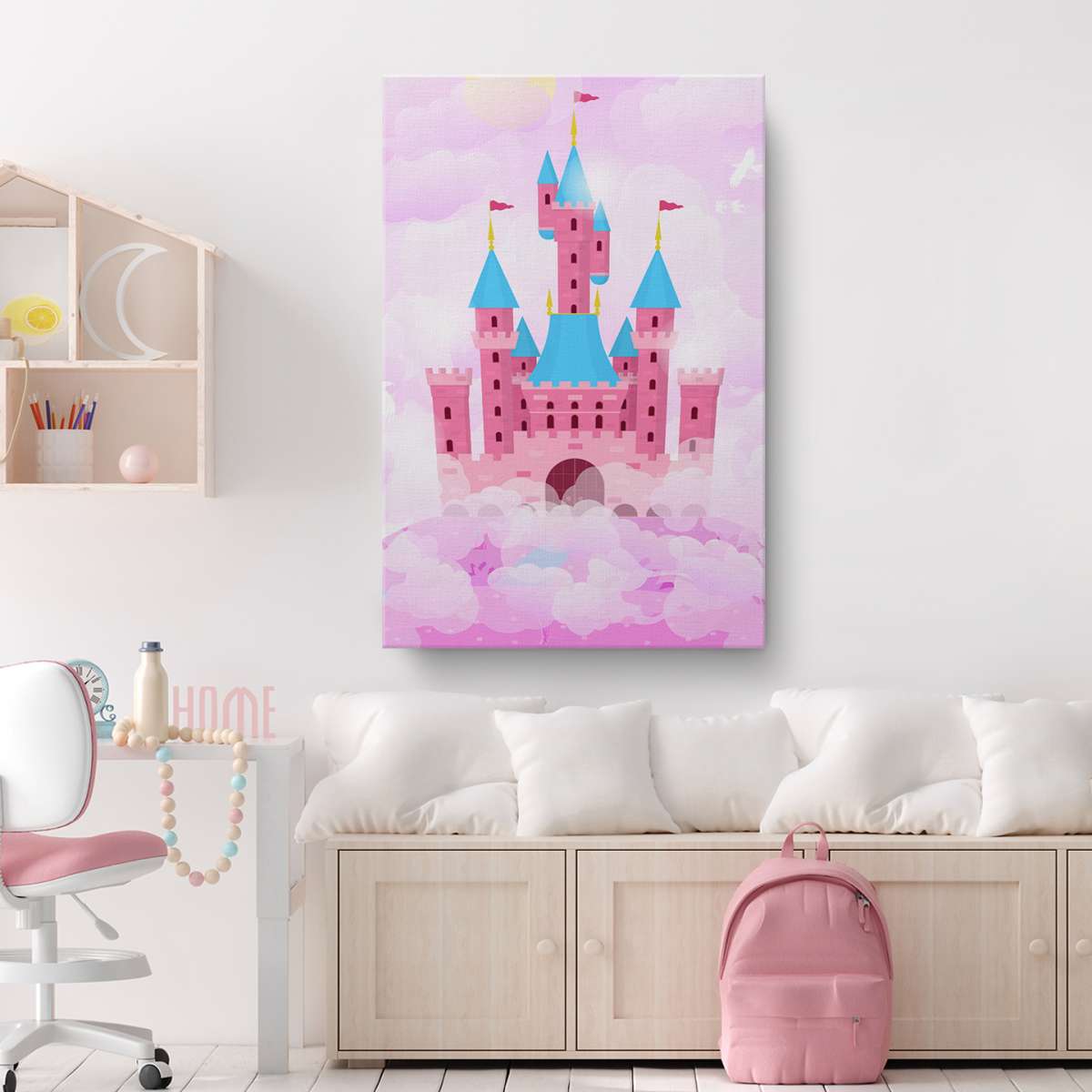 Zámek v oblacích - růžová ilustrace