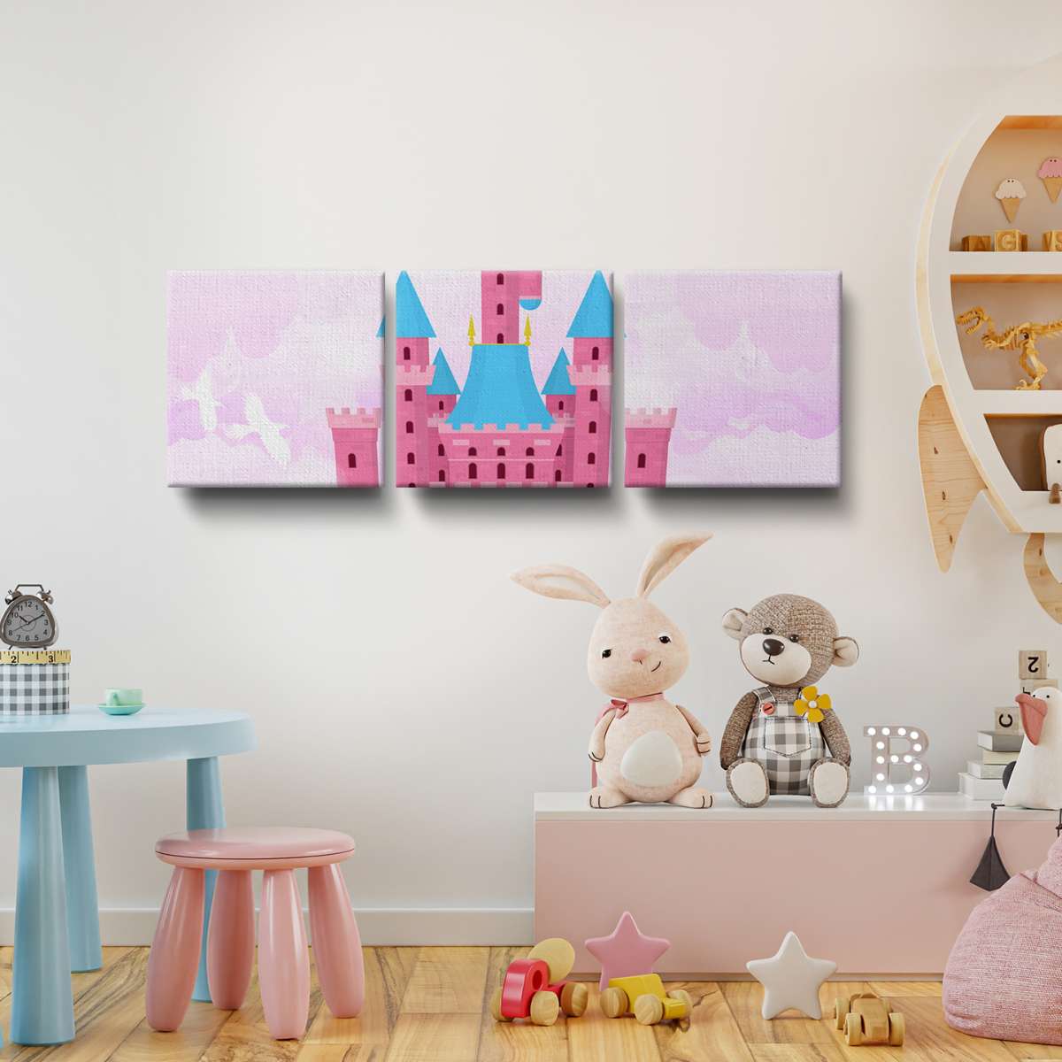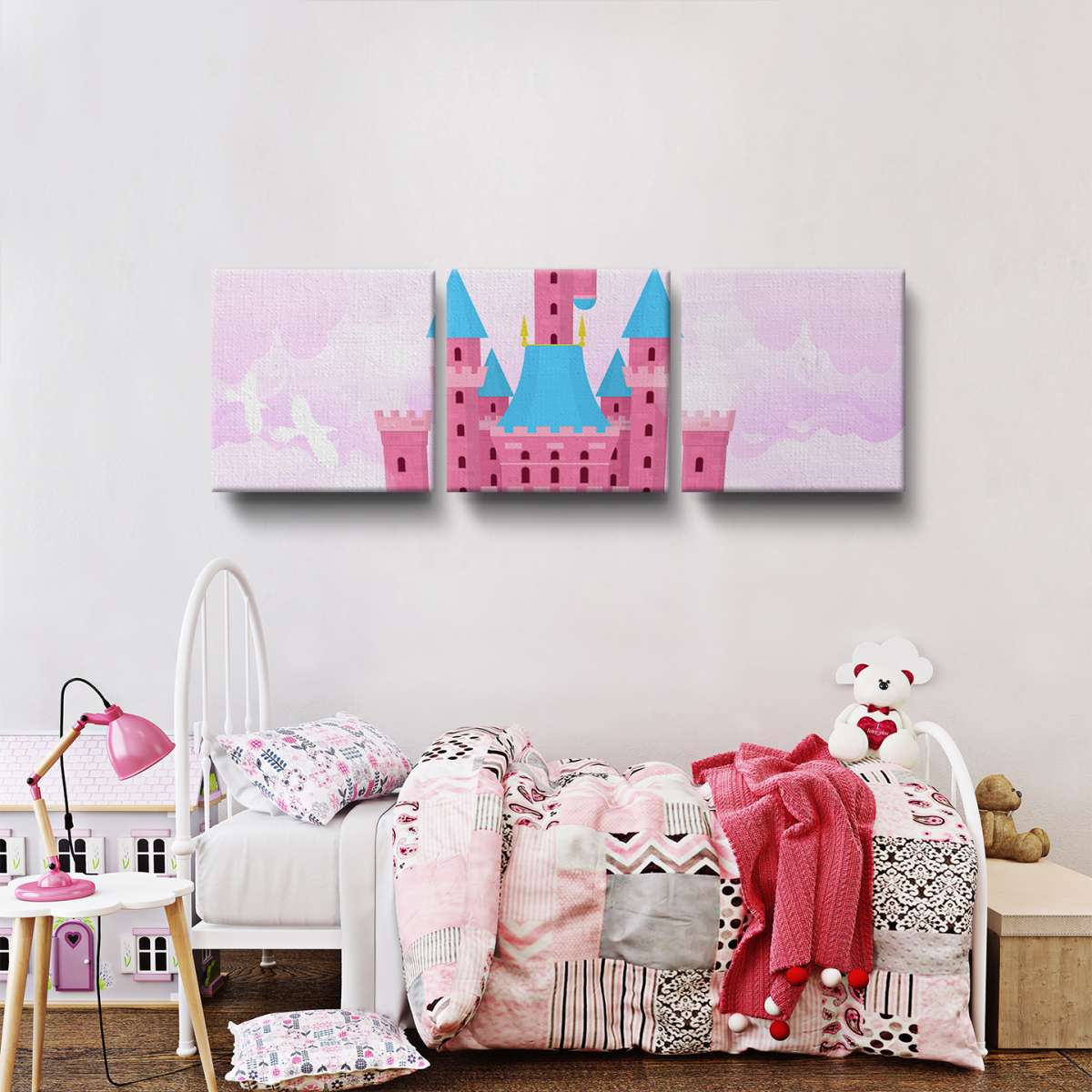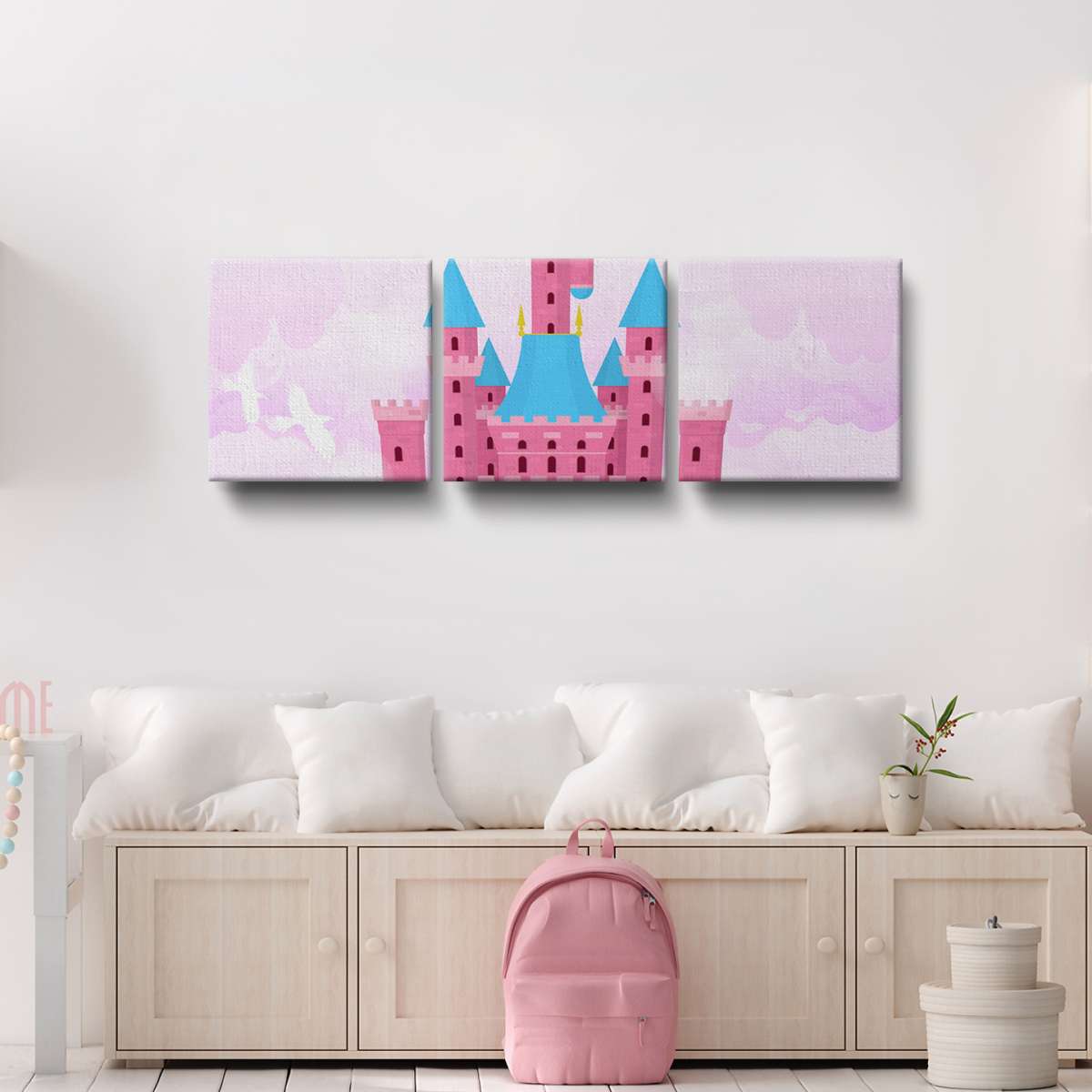 Zámek v oblacích - růžová ilustrace