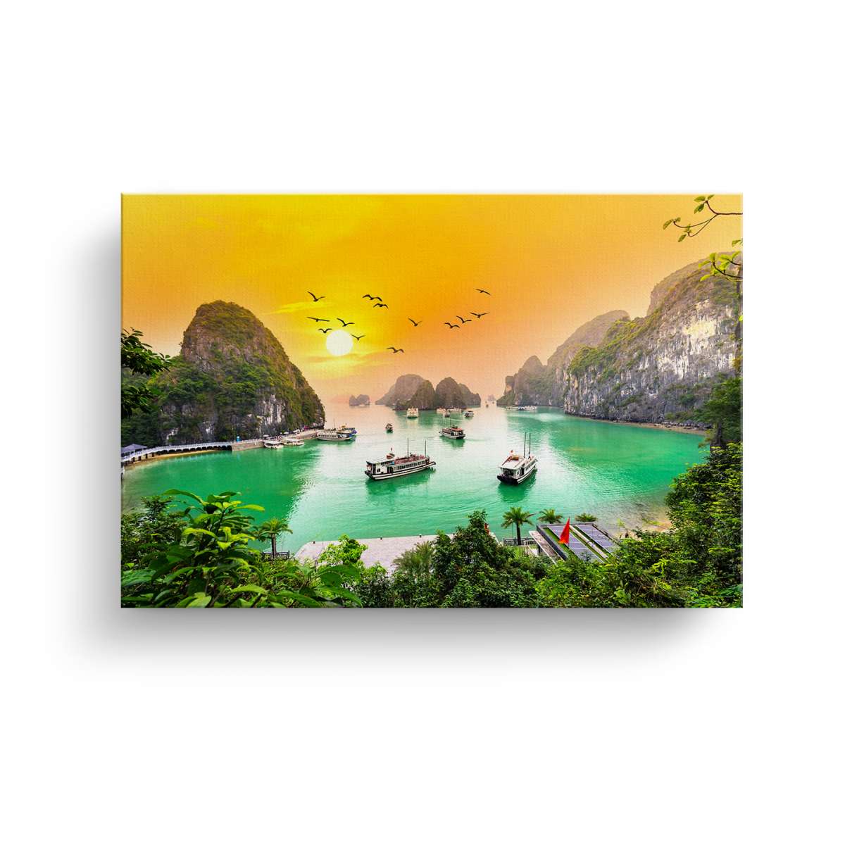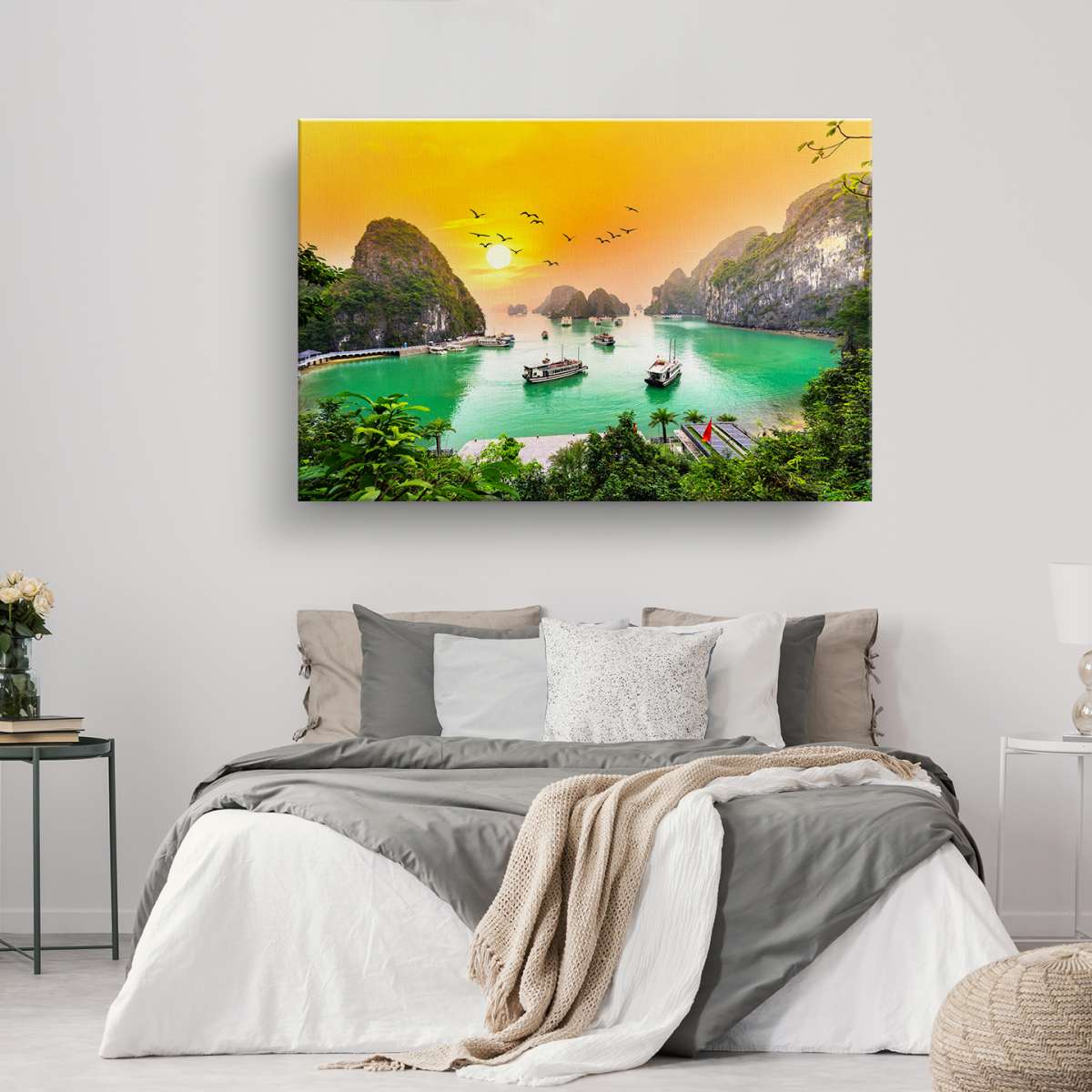 Západ slunce, zátoka Ha Long Bay ve Vietnamu