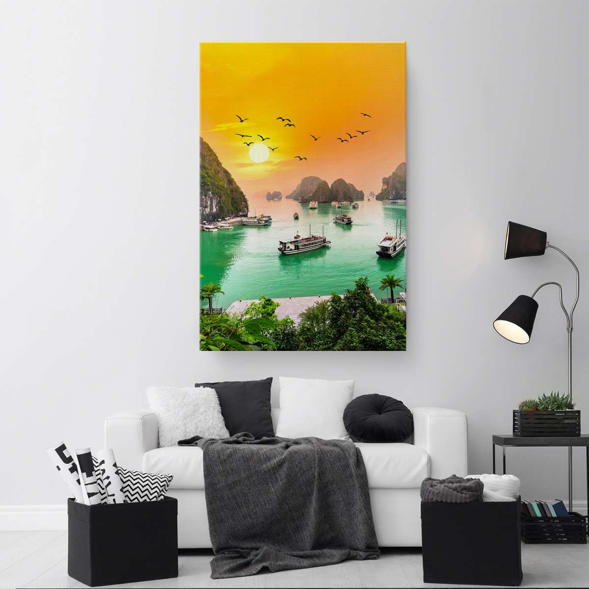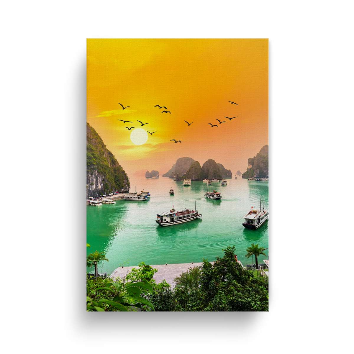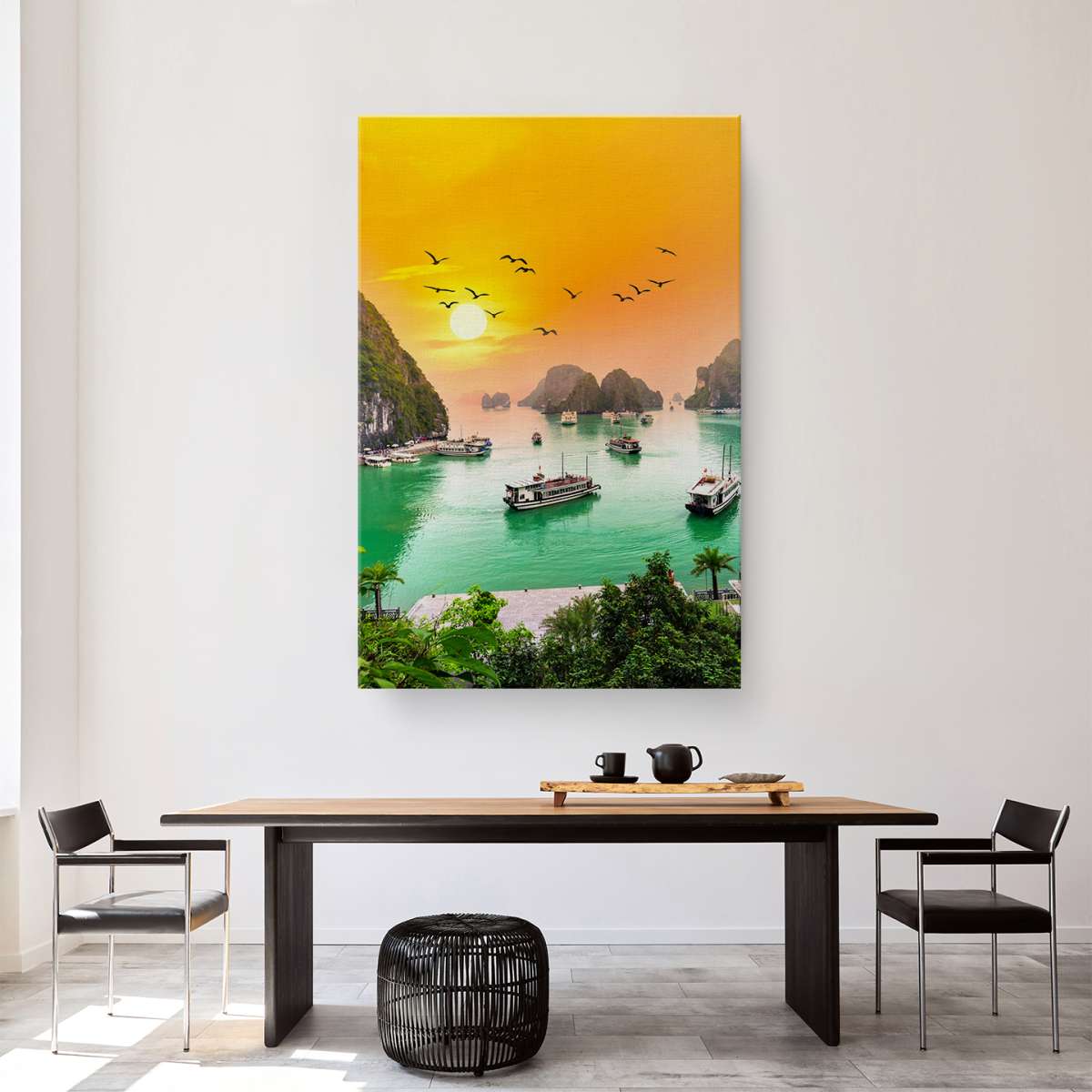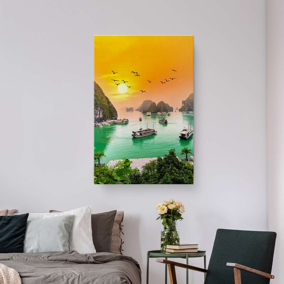 Západ slunce, zátoka Ha Long Bay ve Vietnamu
