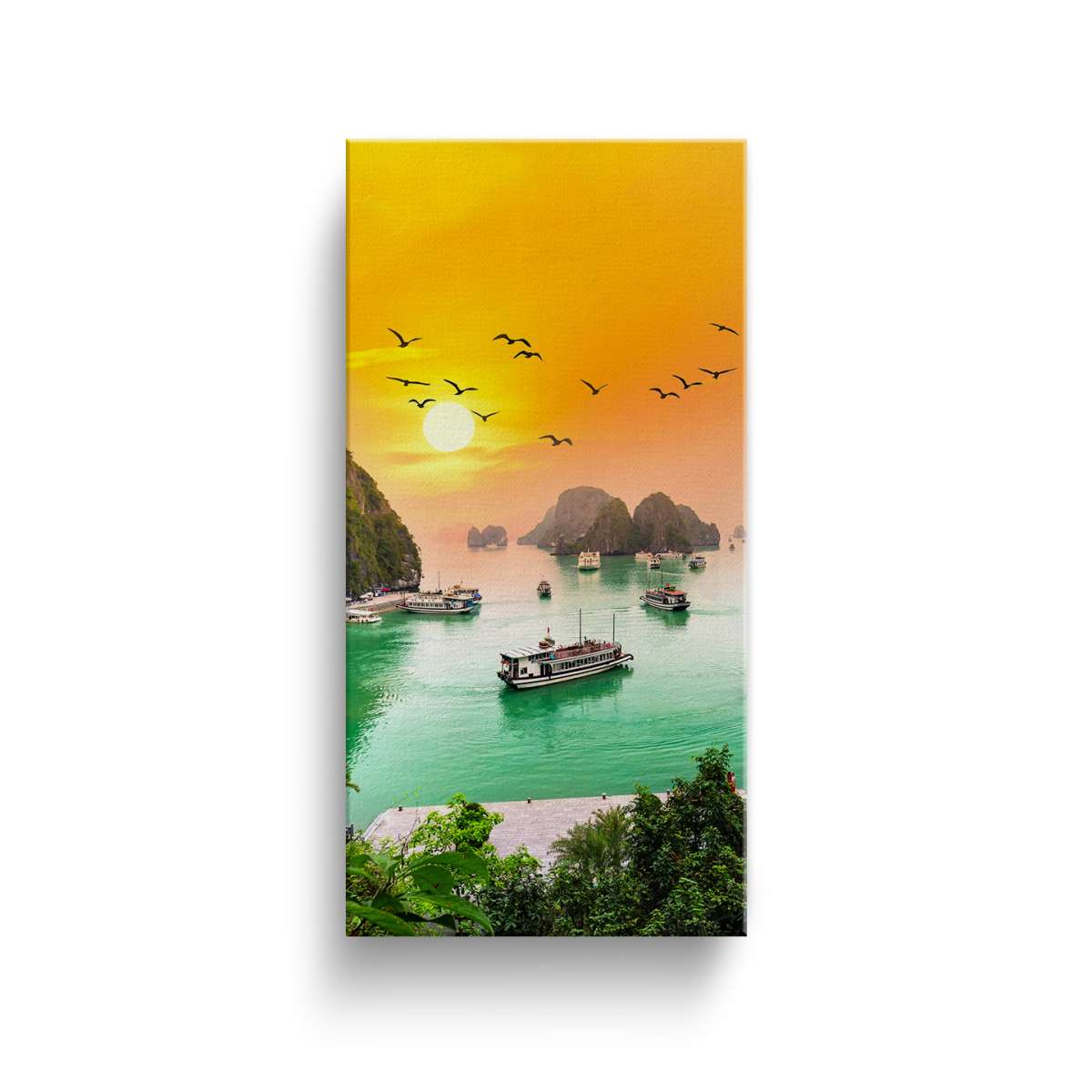 Západ slunce, zátoka Ha Long Bay ve Vietnamu