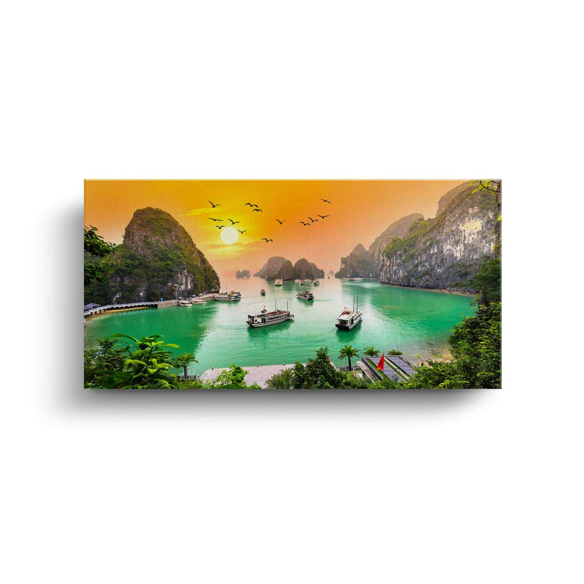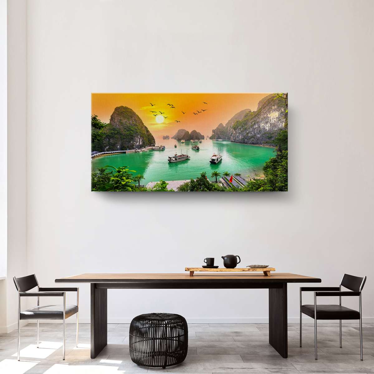 Západ slunce, zátoka Ha Long Bay ve Vietnamu