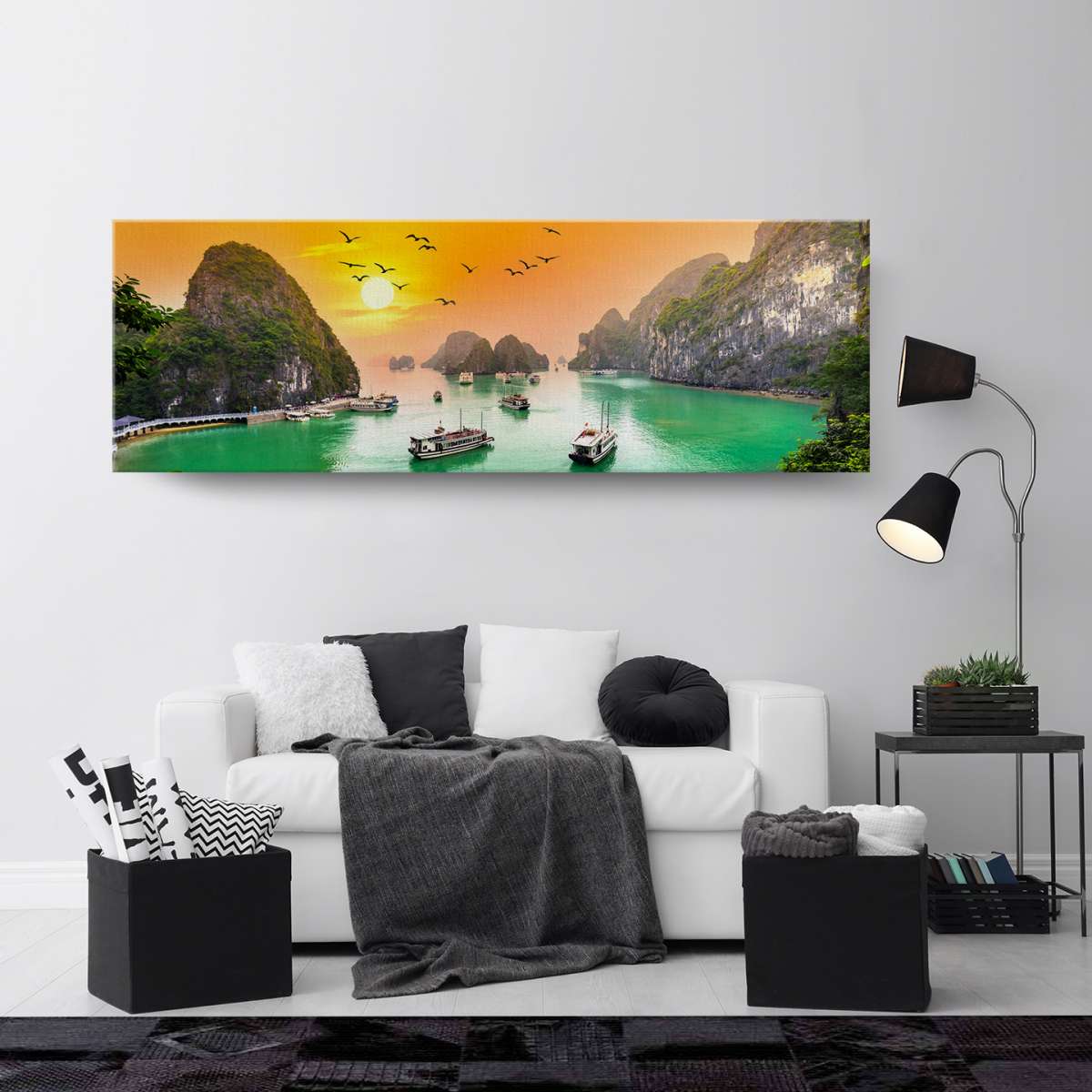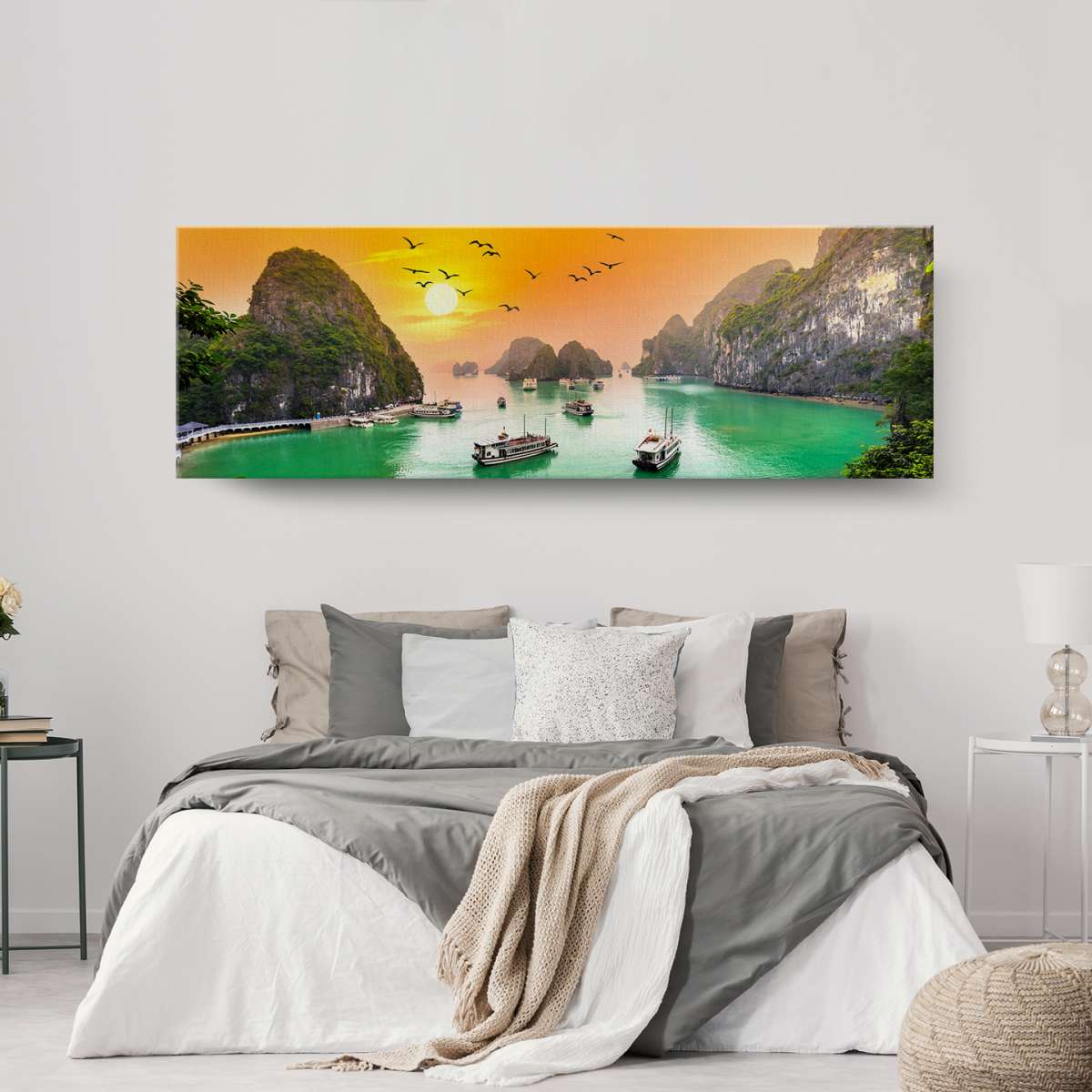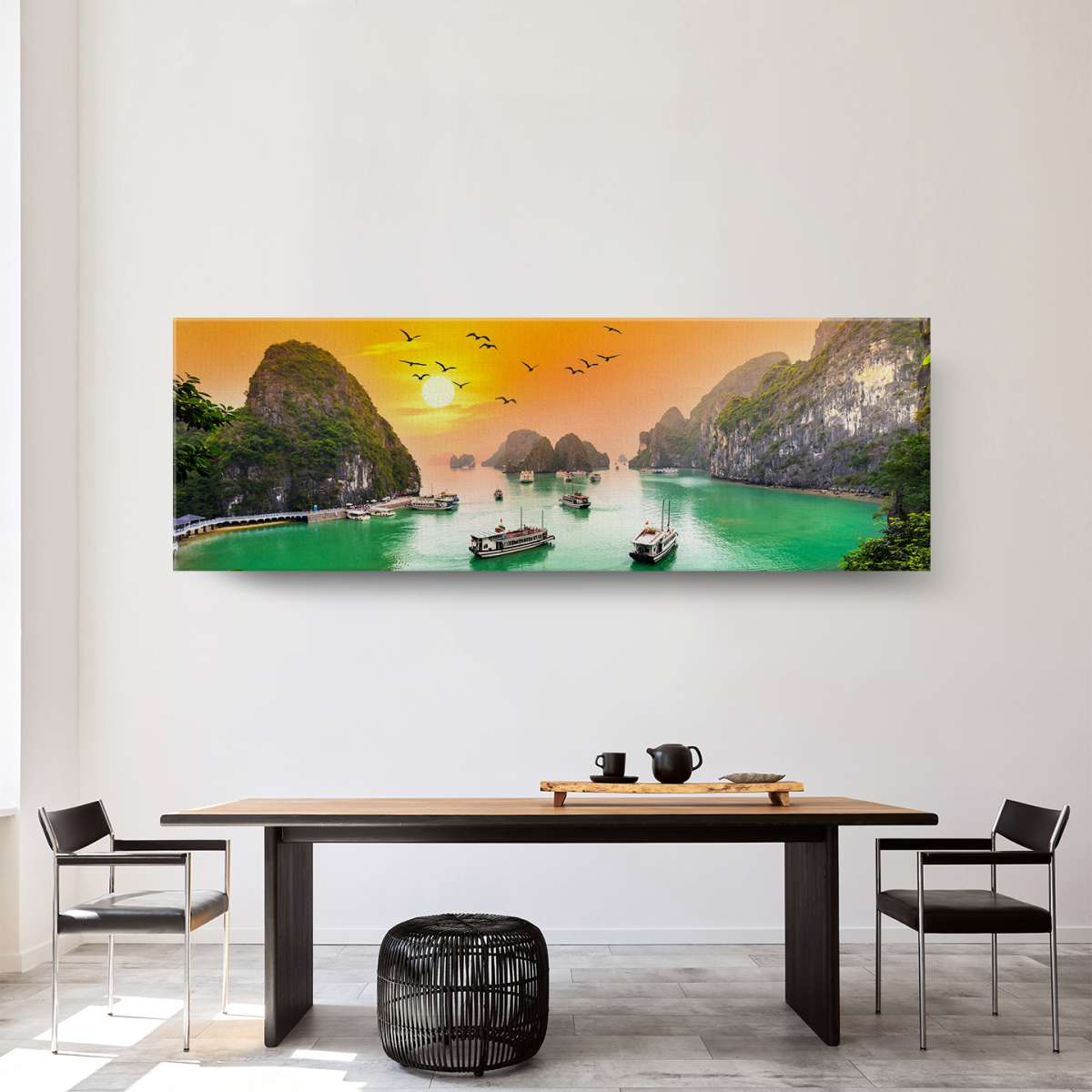 Západ slunce, zátoka Ha Long Bay ve Vietnamu