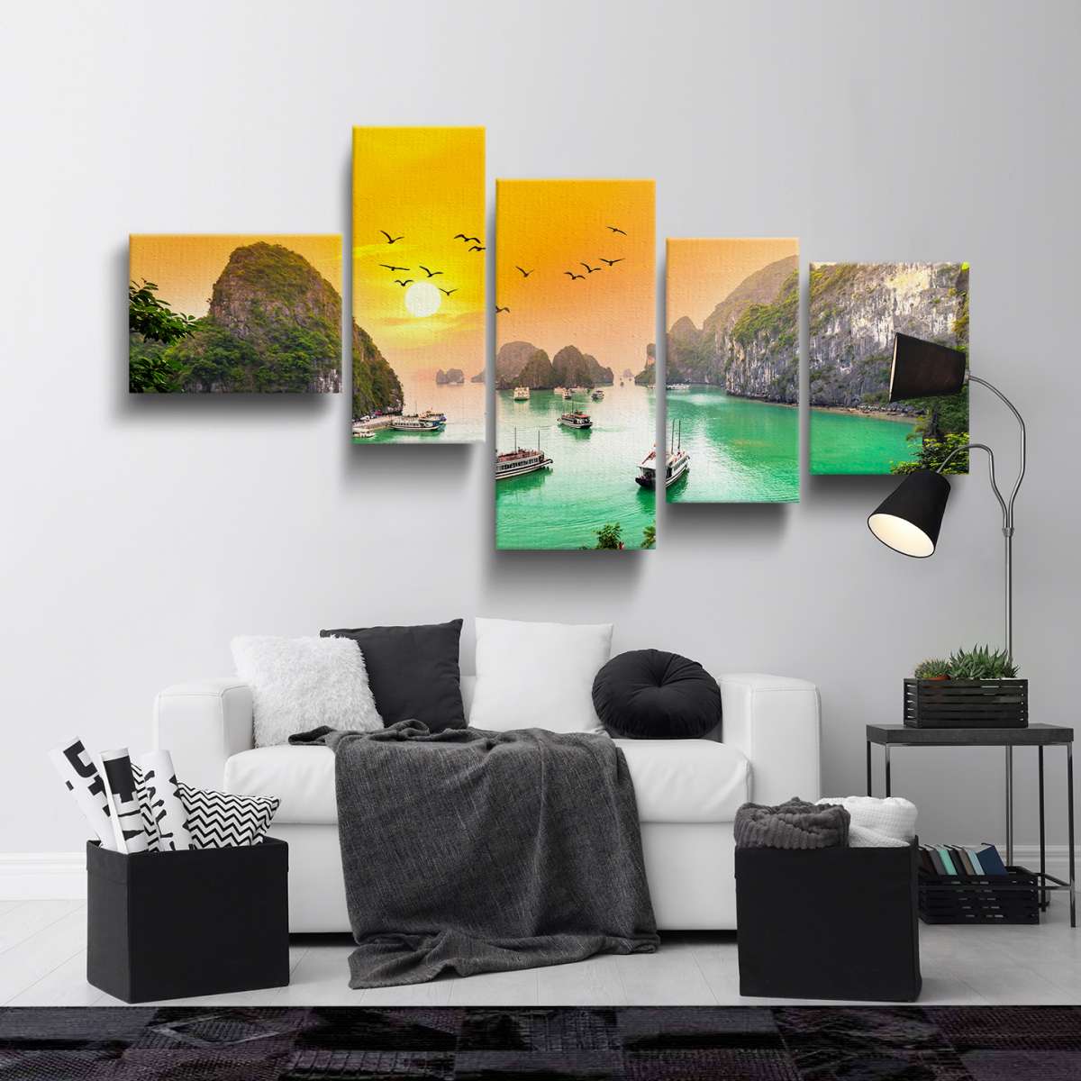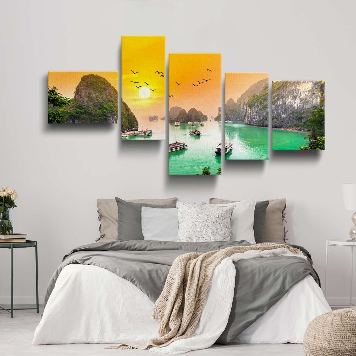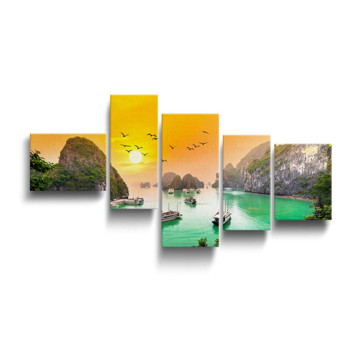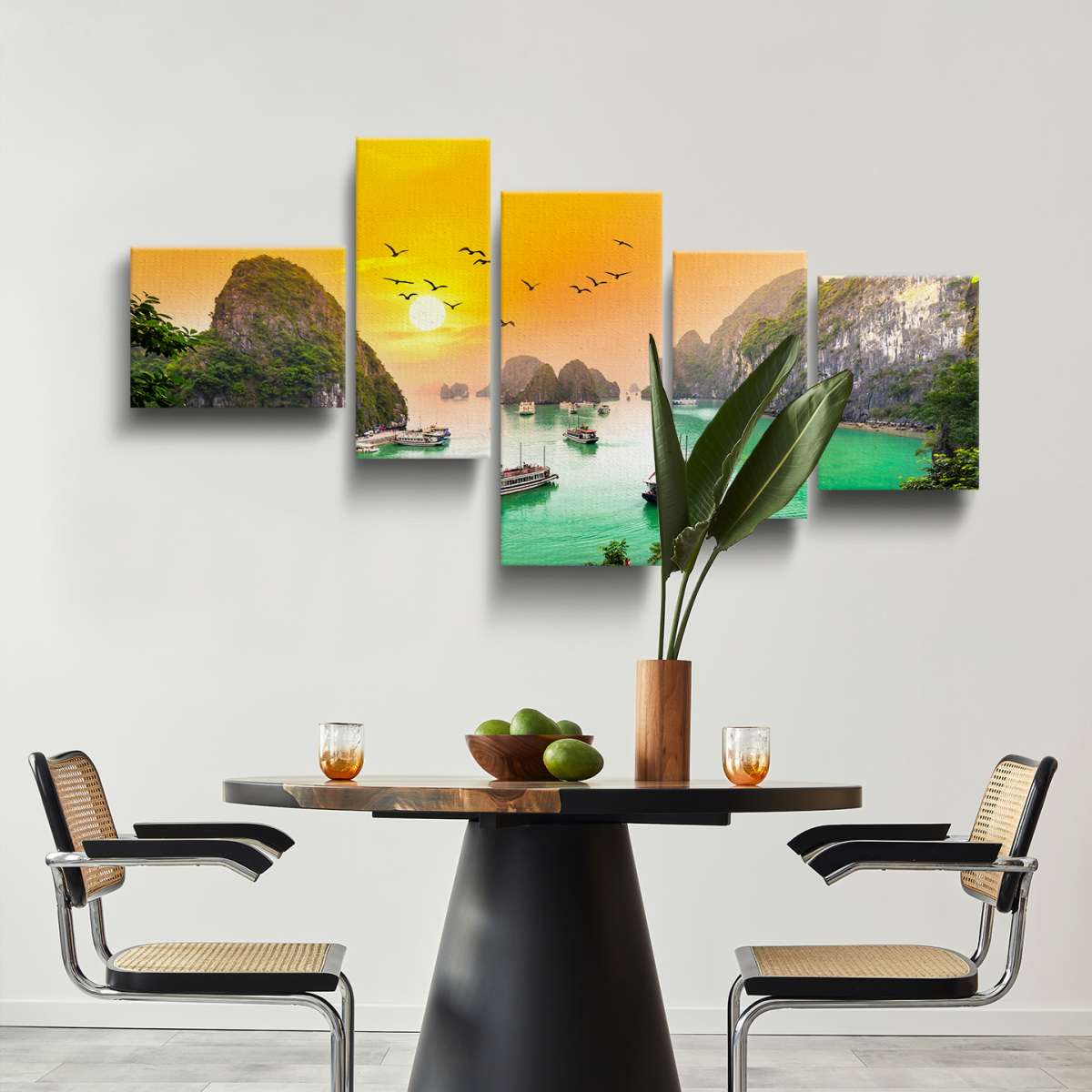 Západ slunce, zátoka Ha Long Bay ve Vietnamu