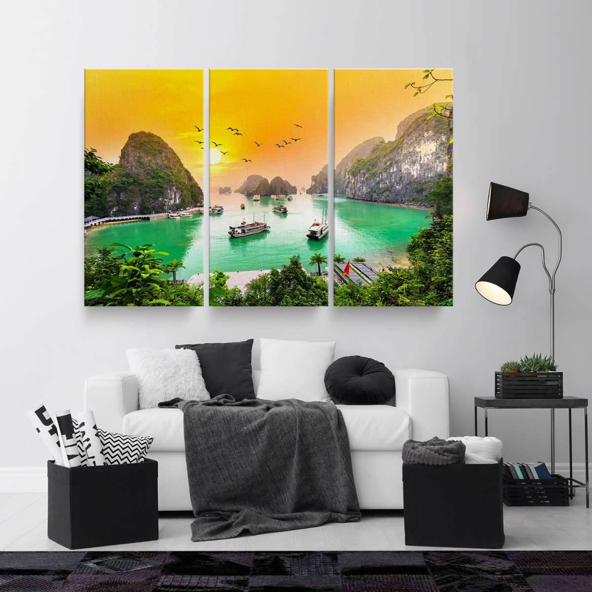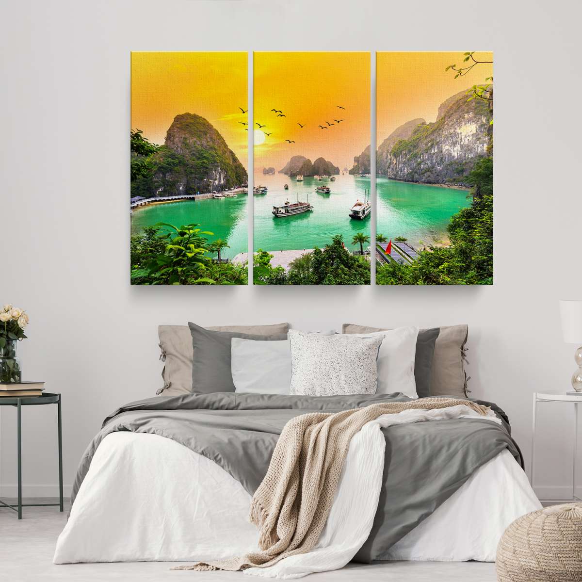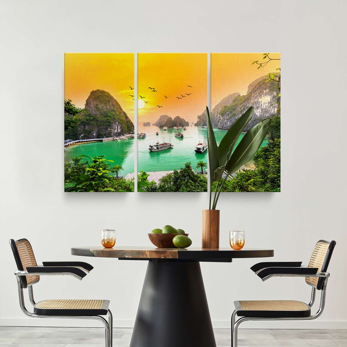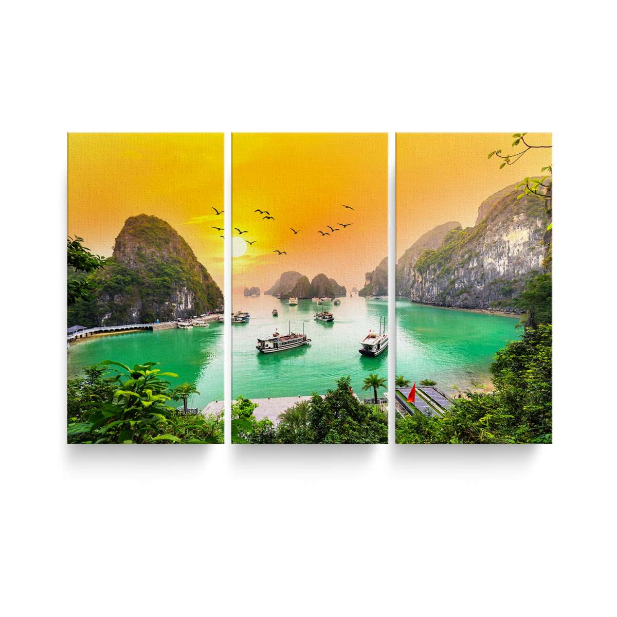 Západ slunce, zátoka Ha Long Bay ve Vietnamu
