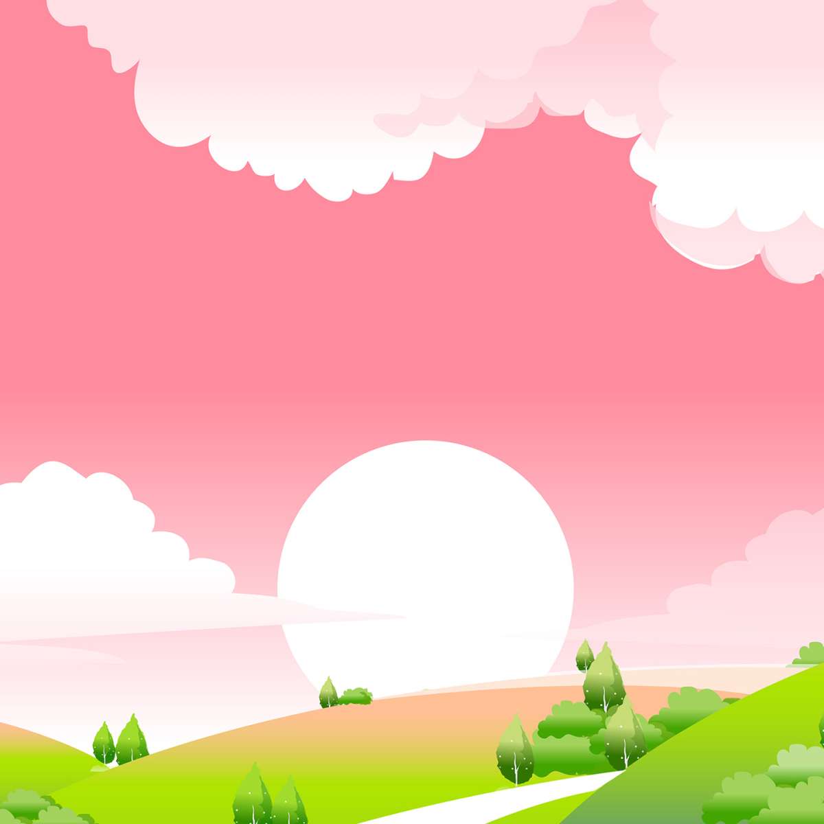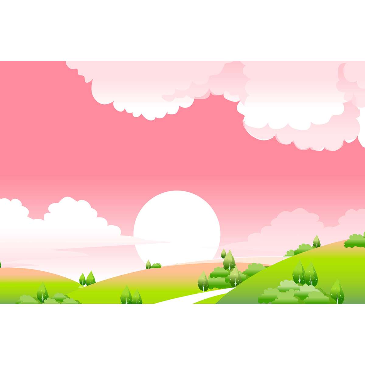 Západu slunce v krajině - růžová ilustrace