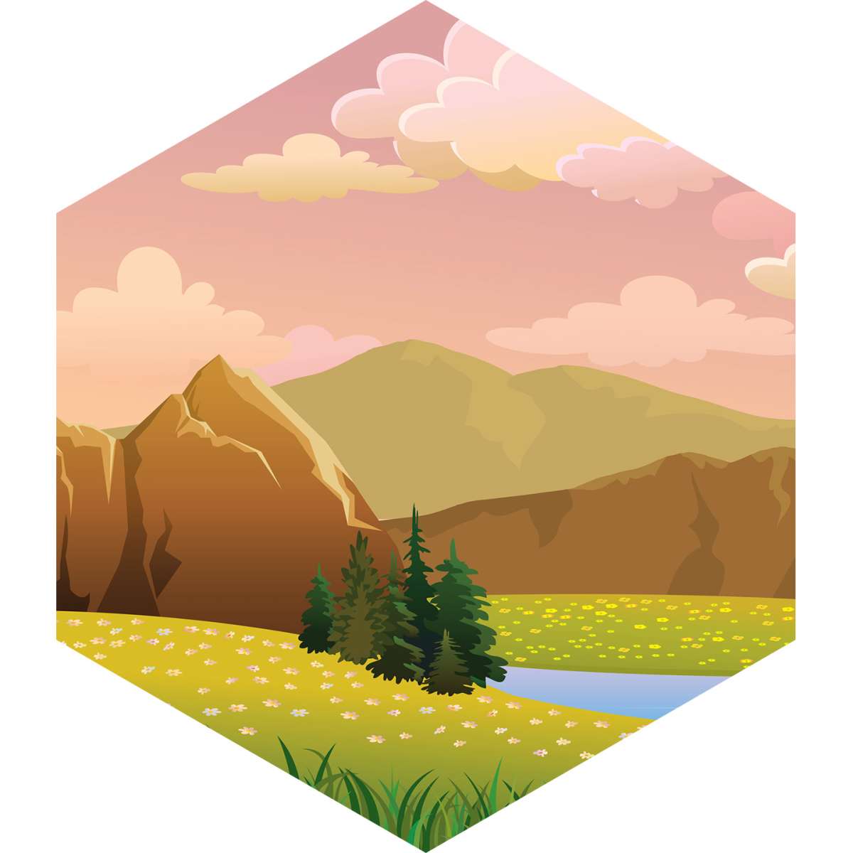 Zelená horská krajina s jezerem - ilustrace