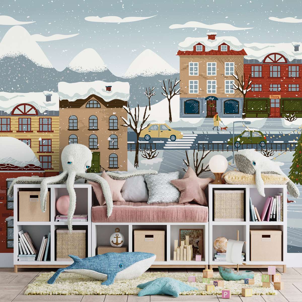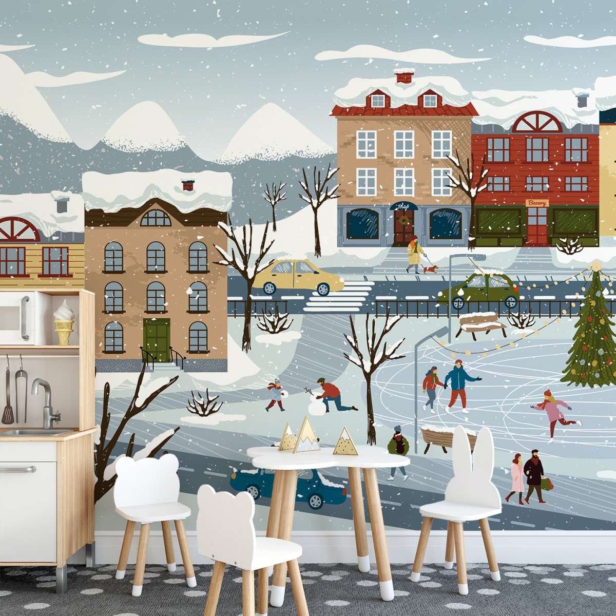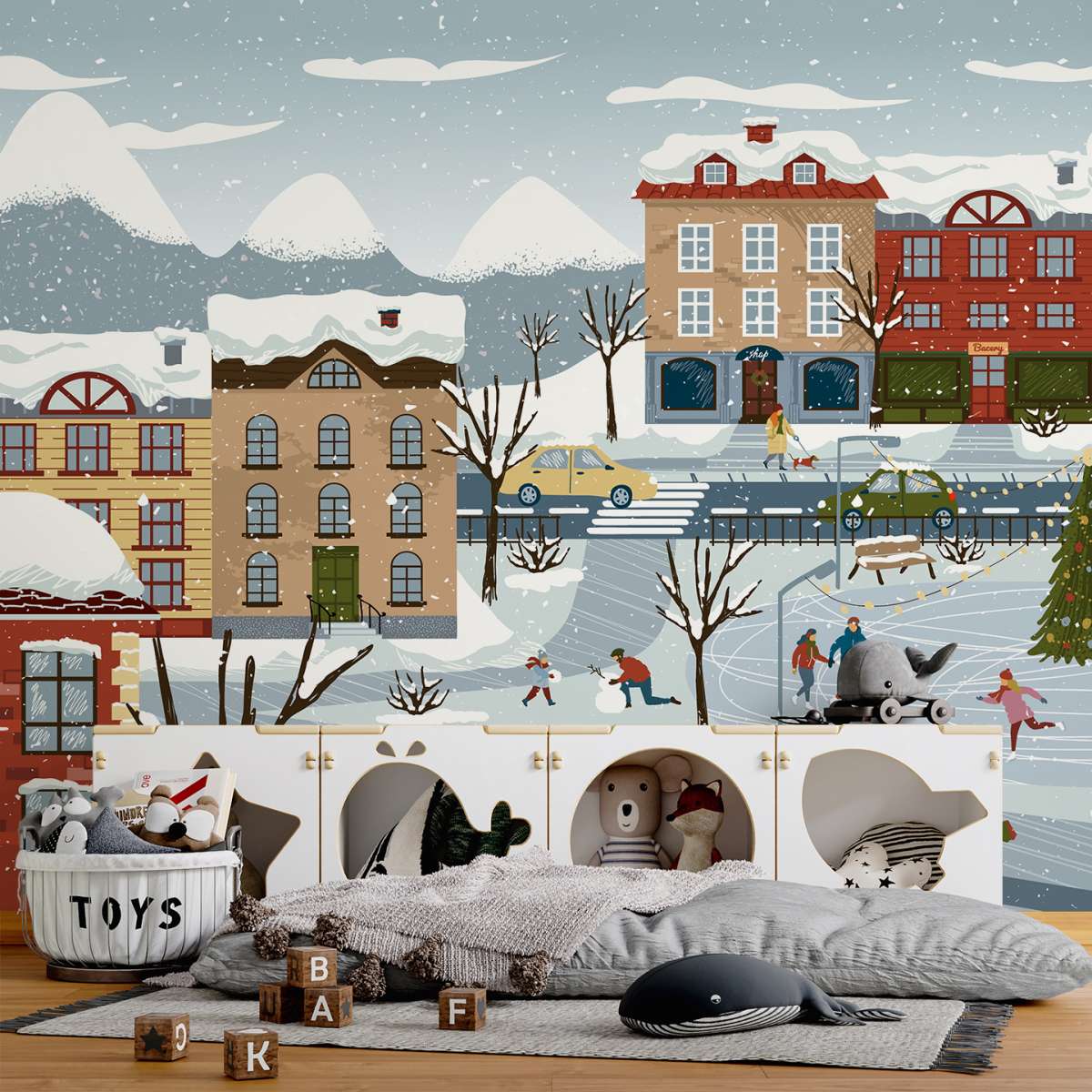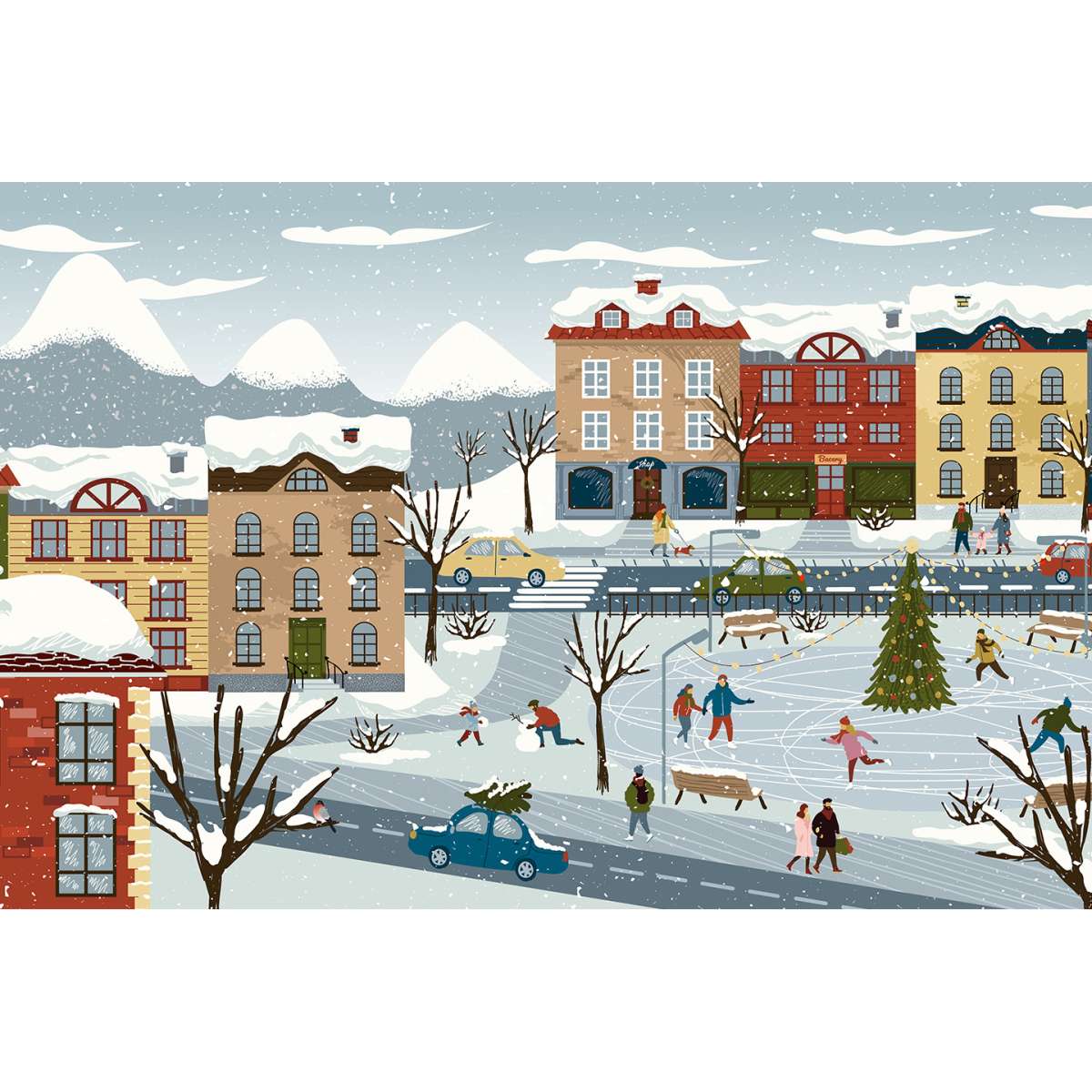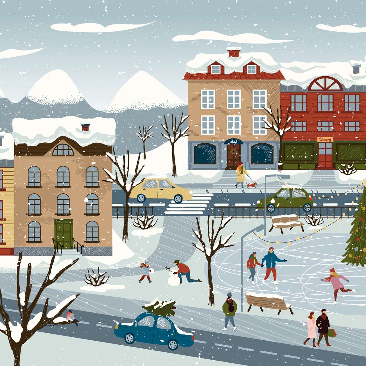 Zimní a vánoční město - ilustrace