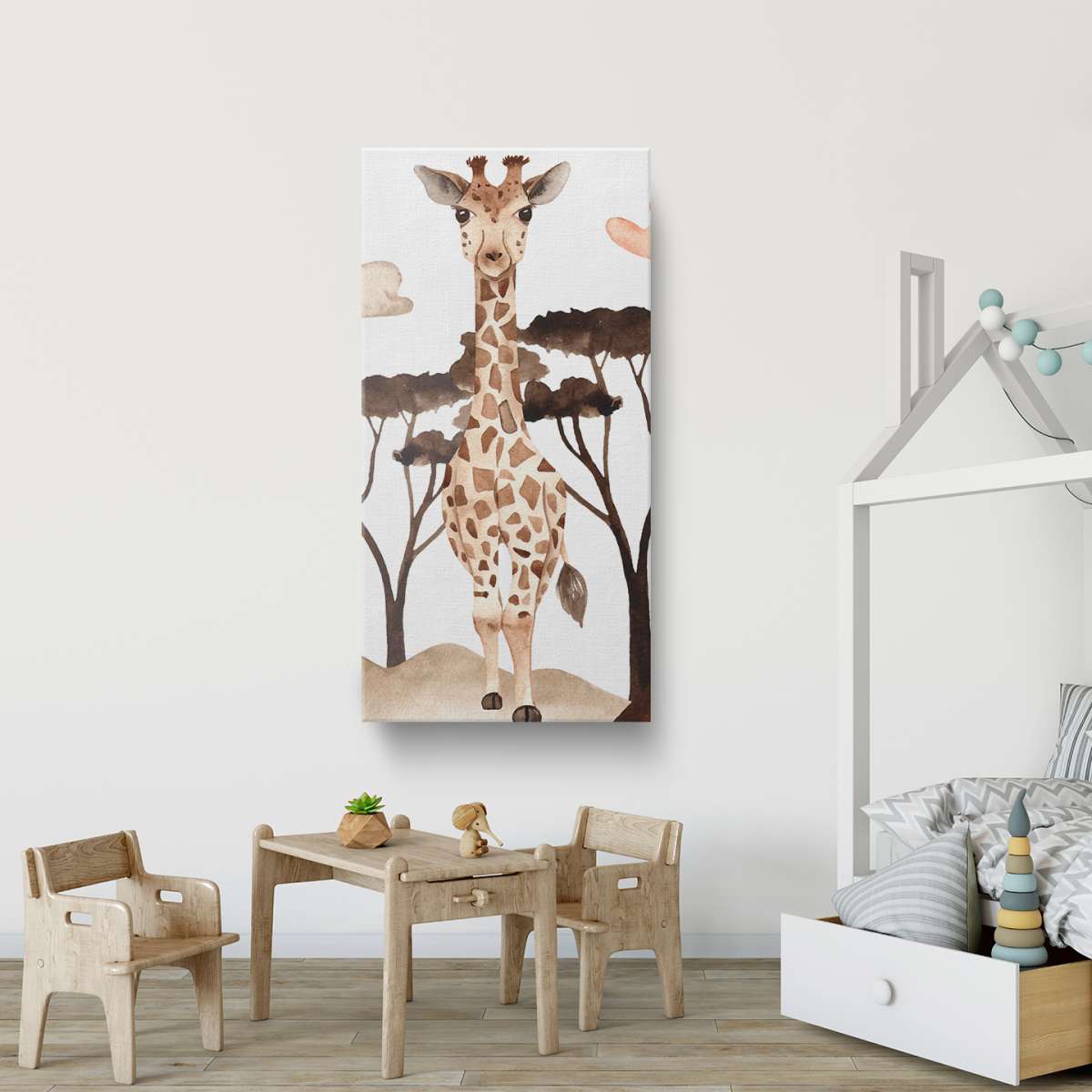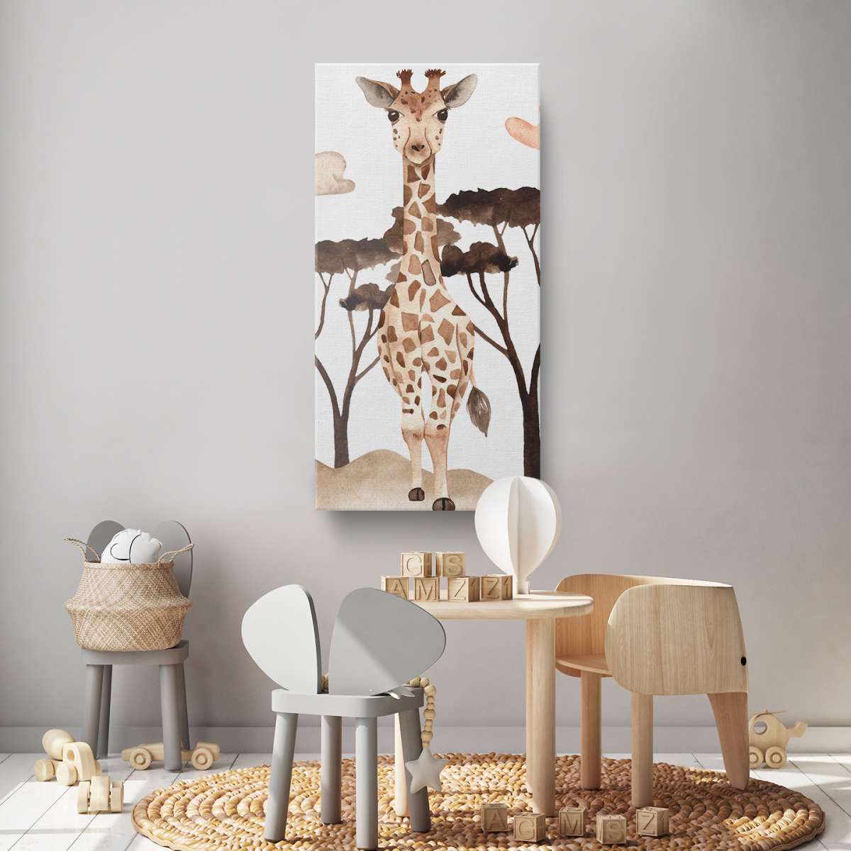 Žirafa v savaně - akvarel