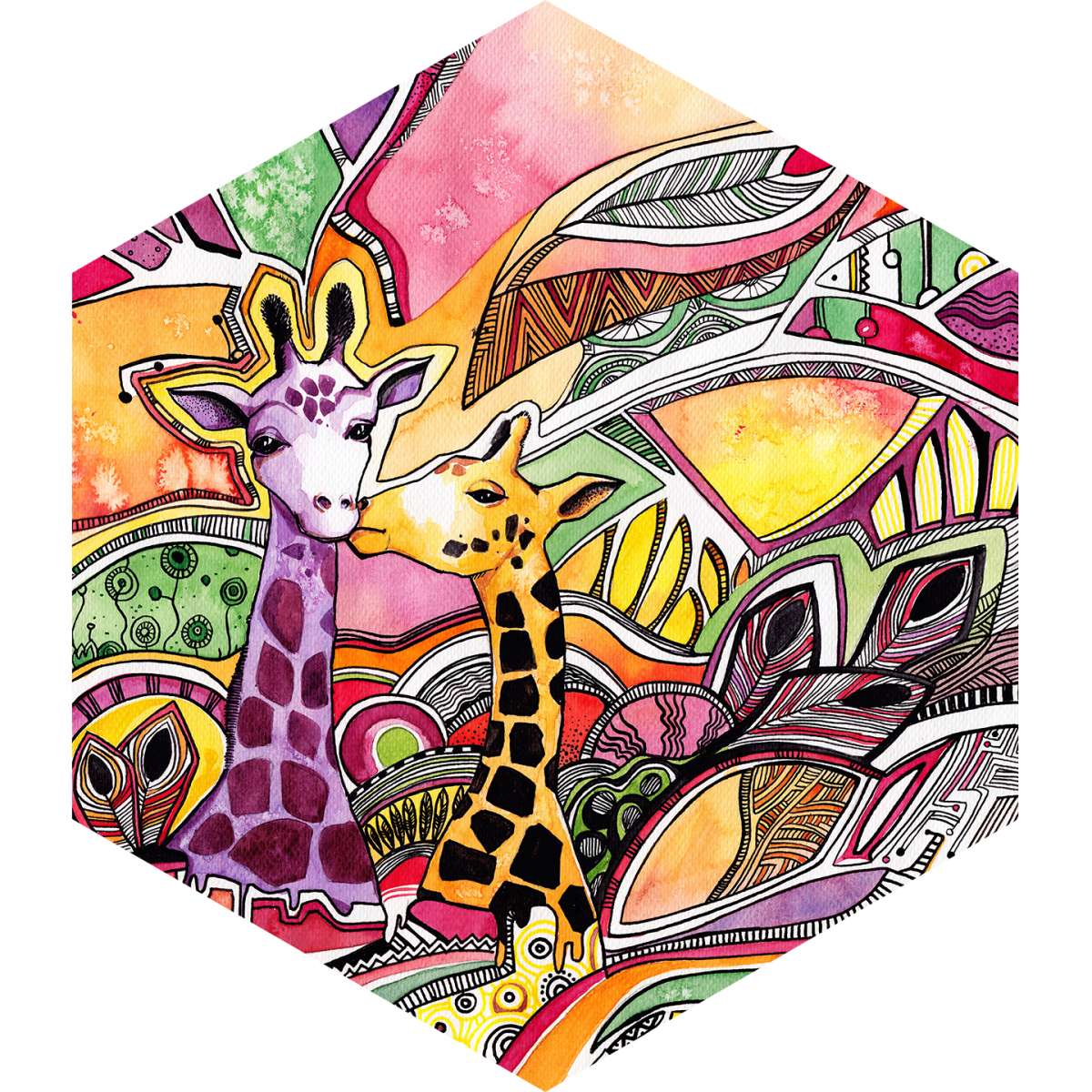 Žirafy, grafické pozadí - akvarel
