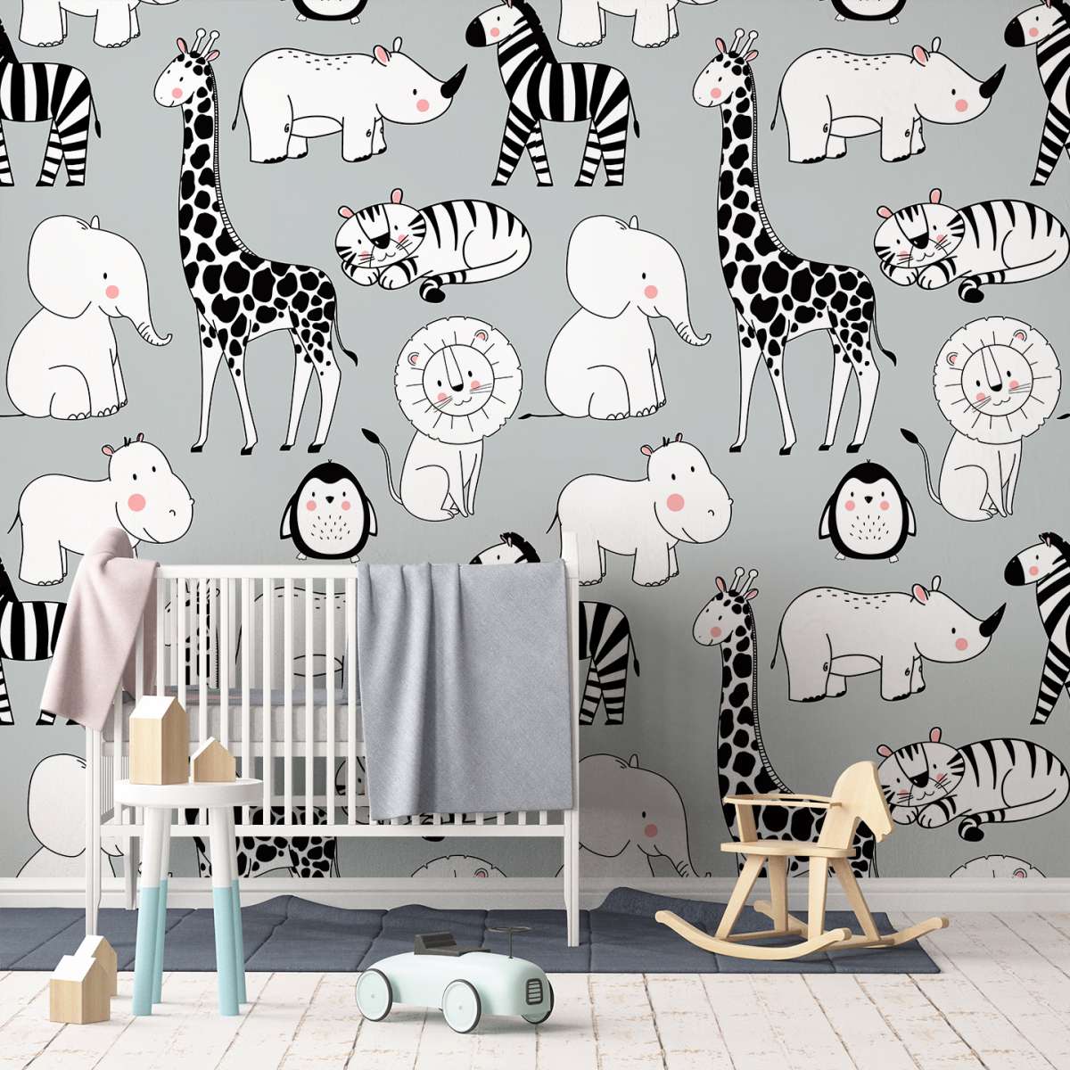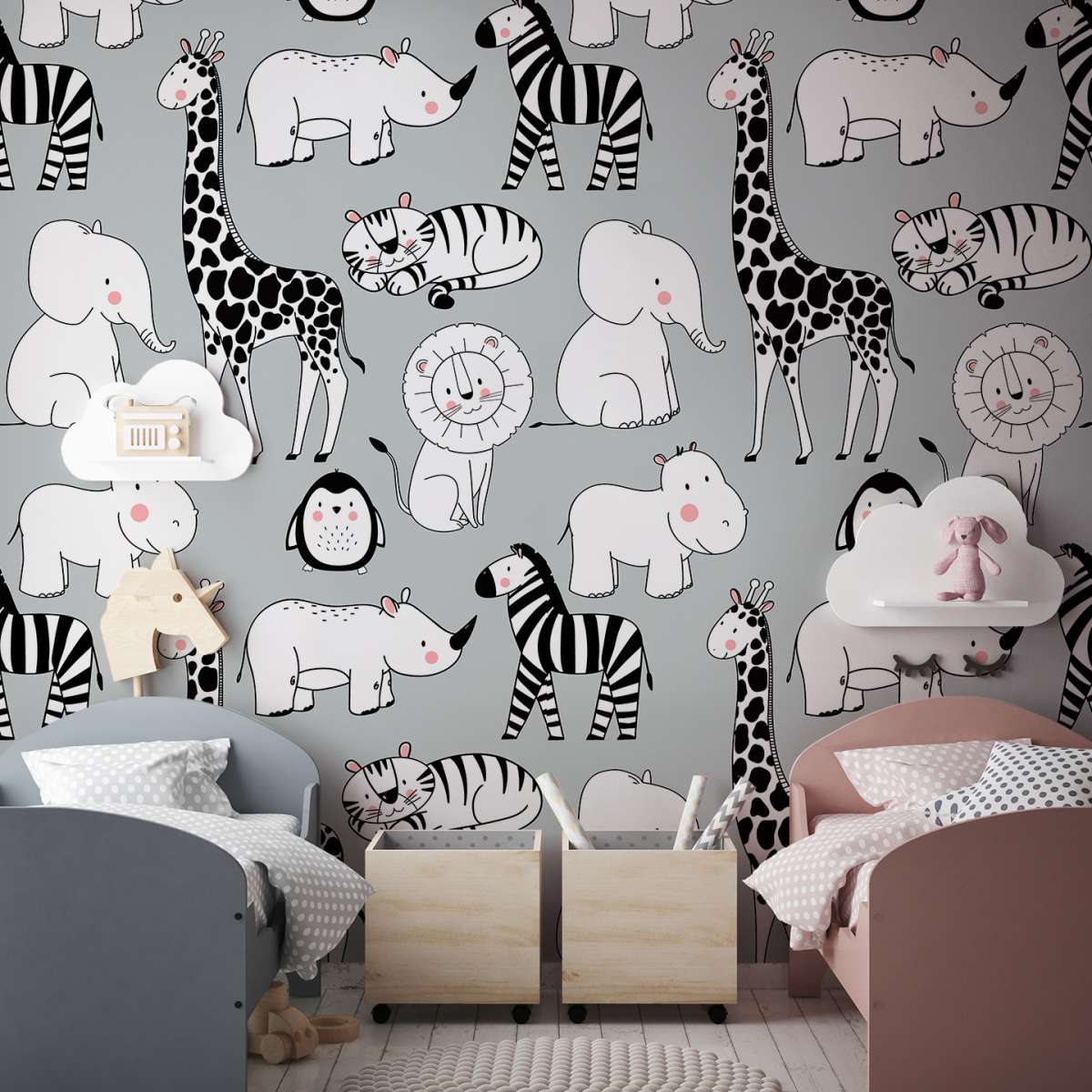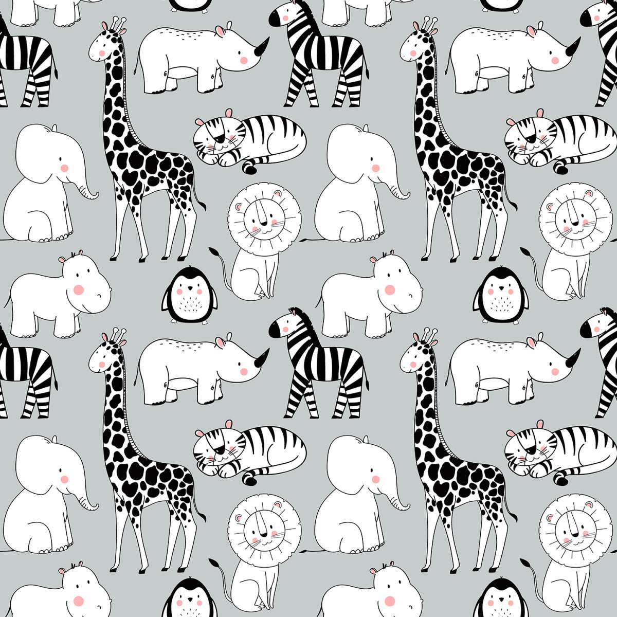 Zvířata na šedém pozadí - vzor