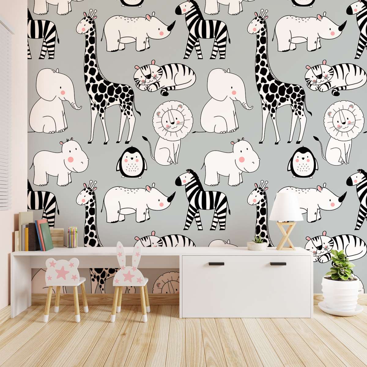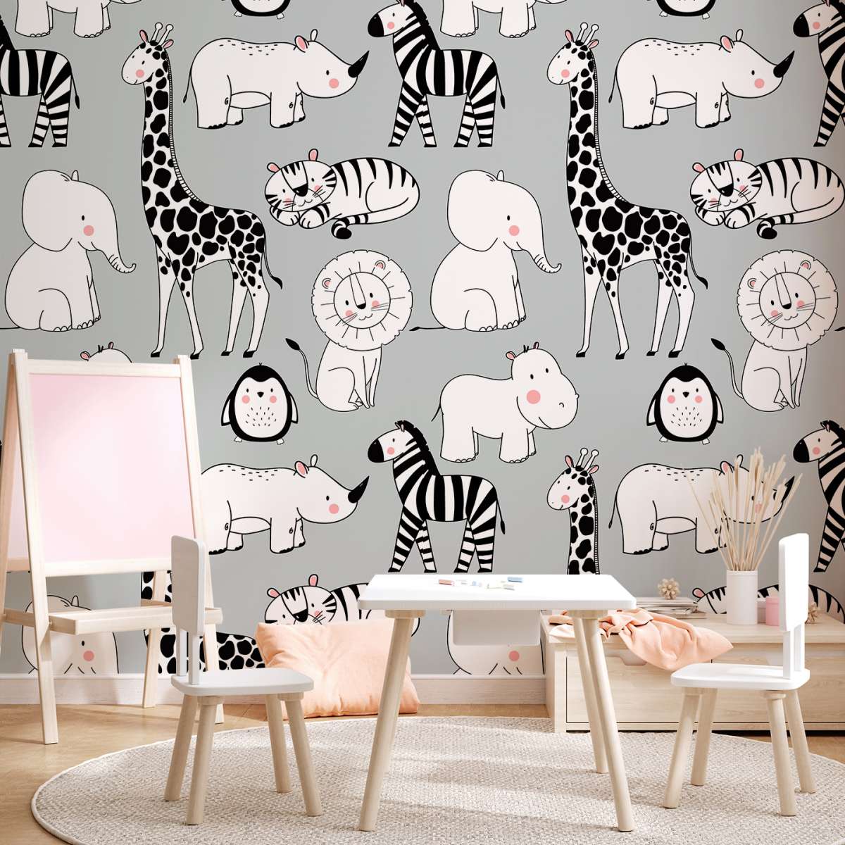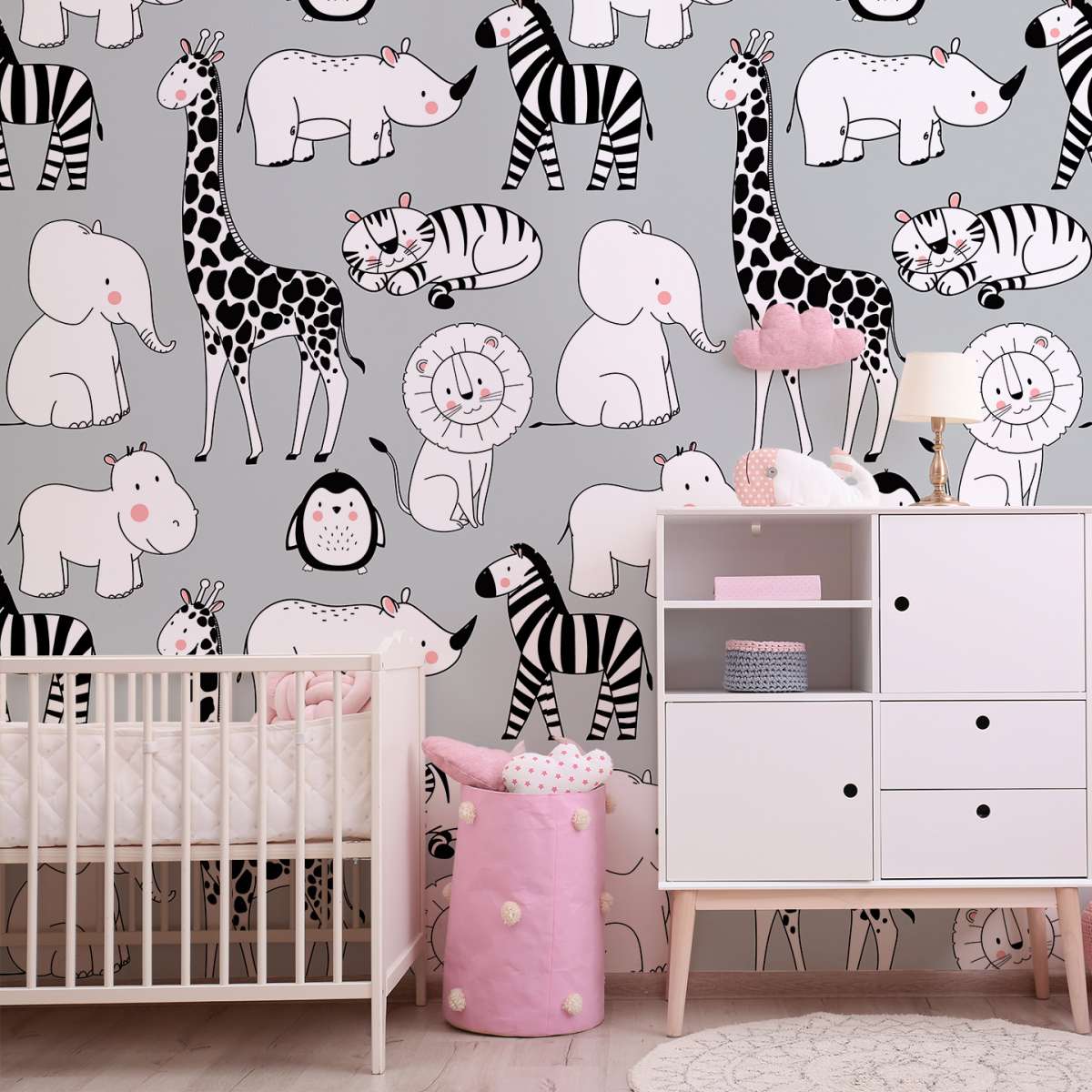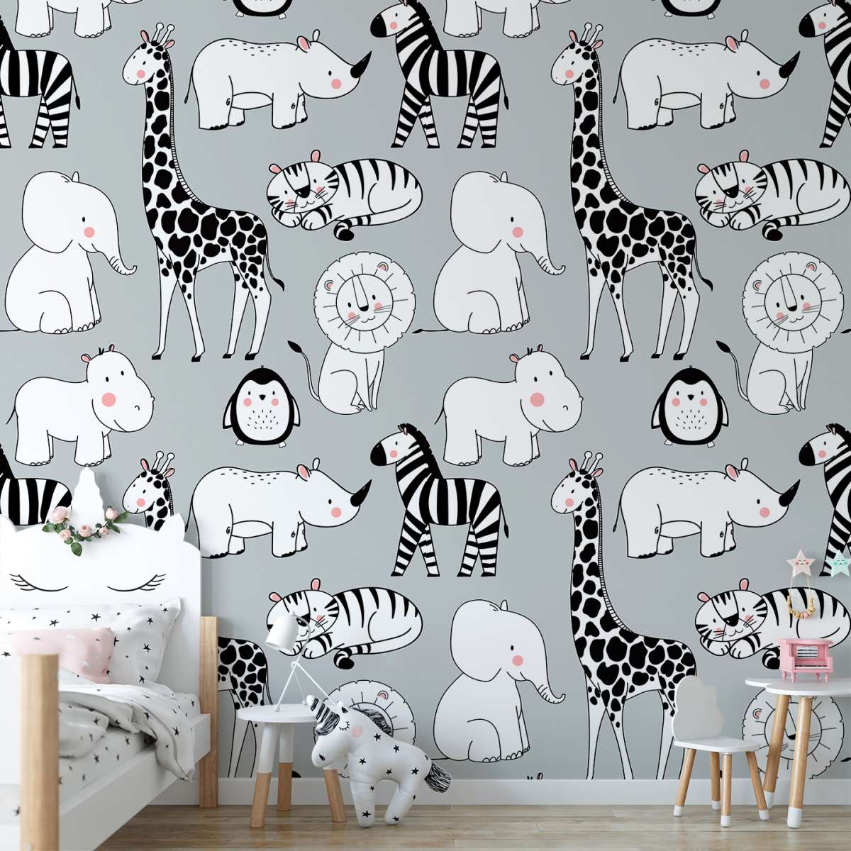 Zvířata na šedém pozadí - vzor