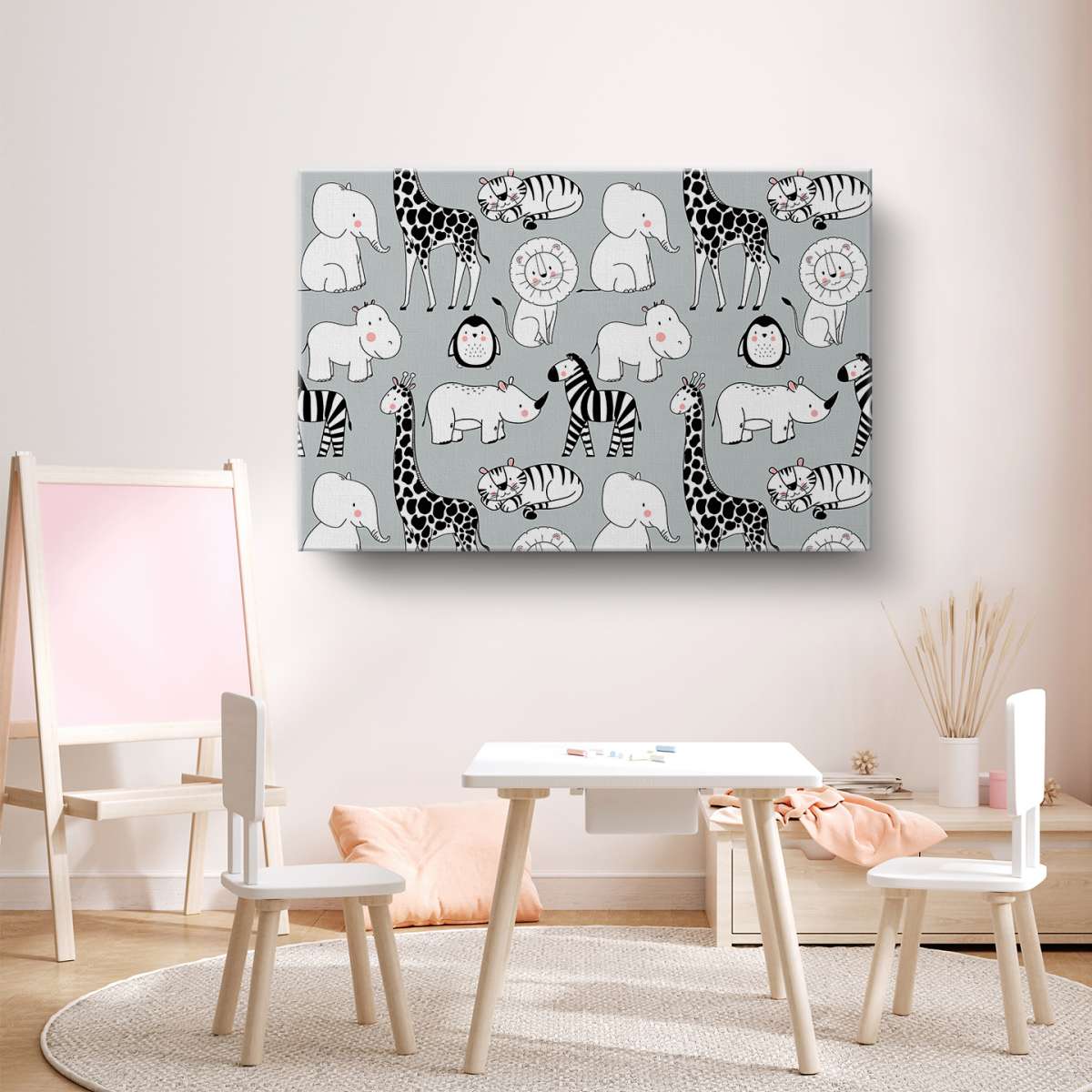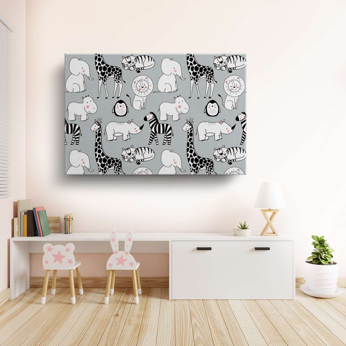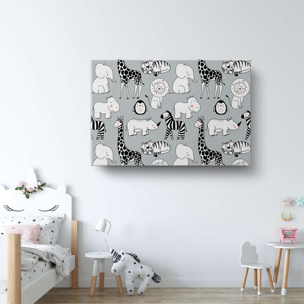 Zvířata na šedém pozadí - vzor