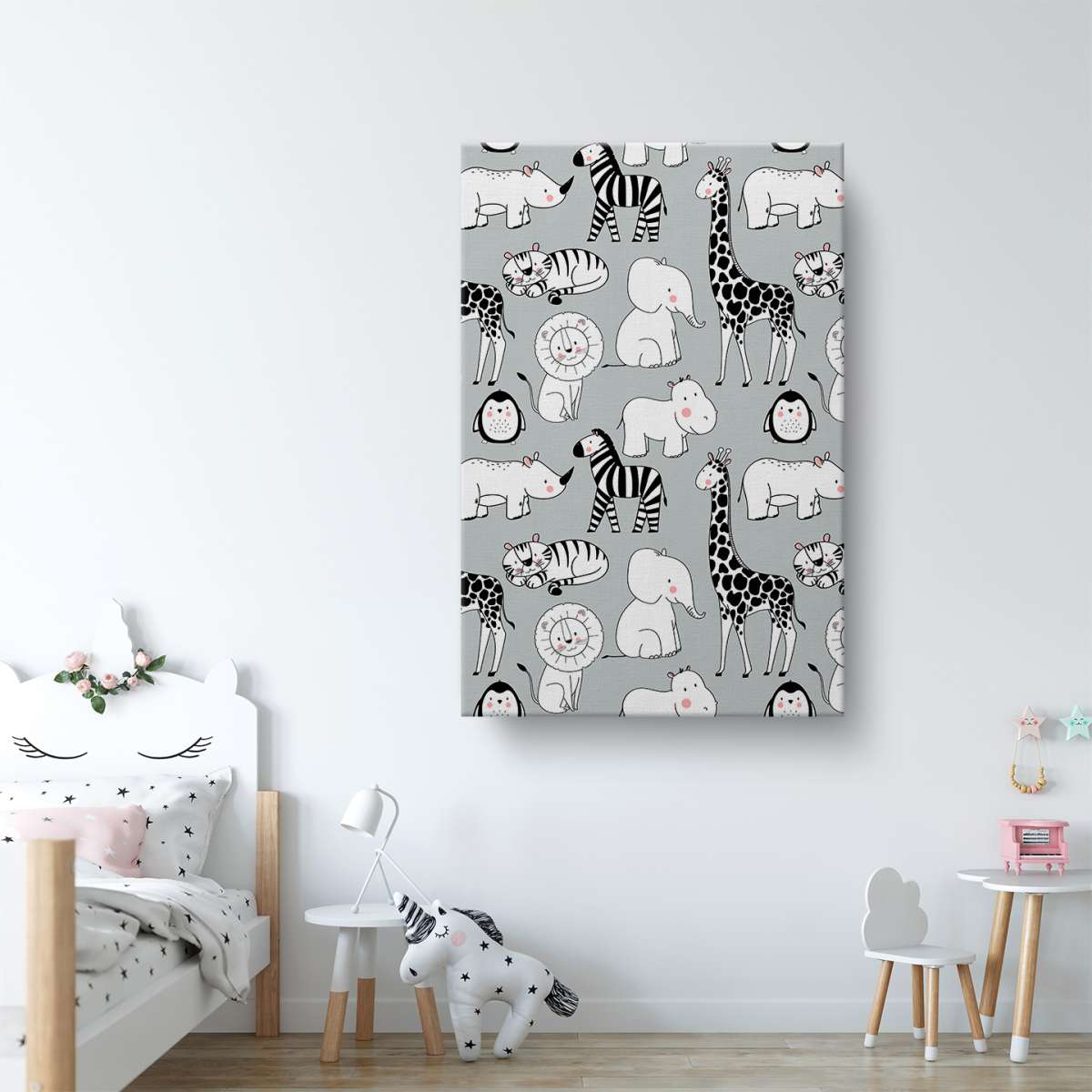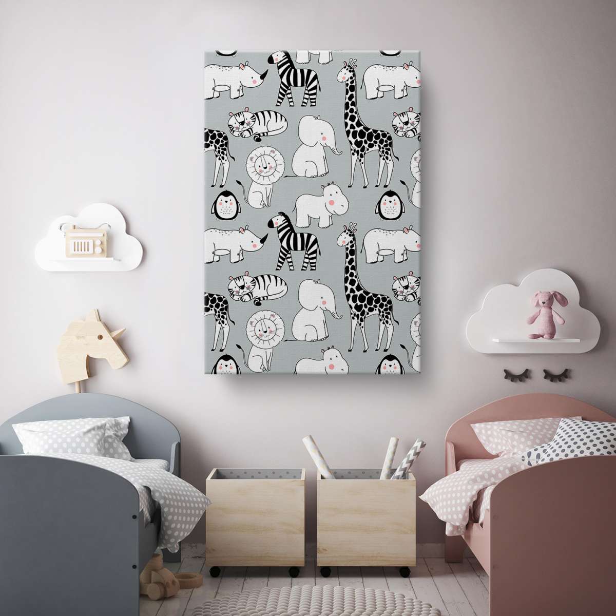 Zvířata na šedém pozadí - vzor