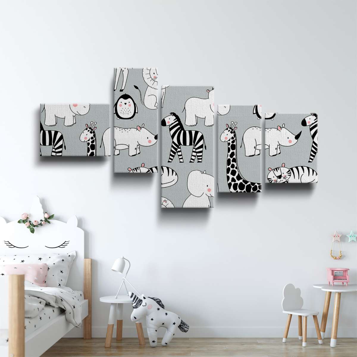 Zvířata na šedém pozadí - vzor