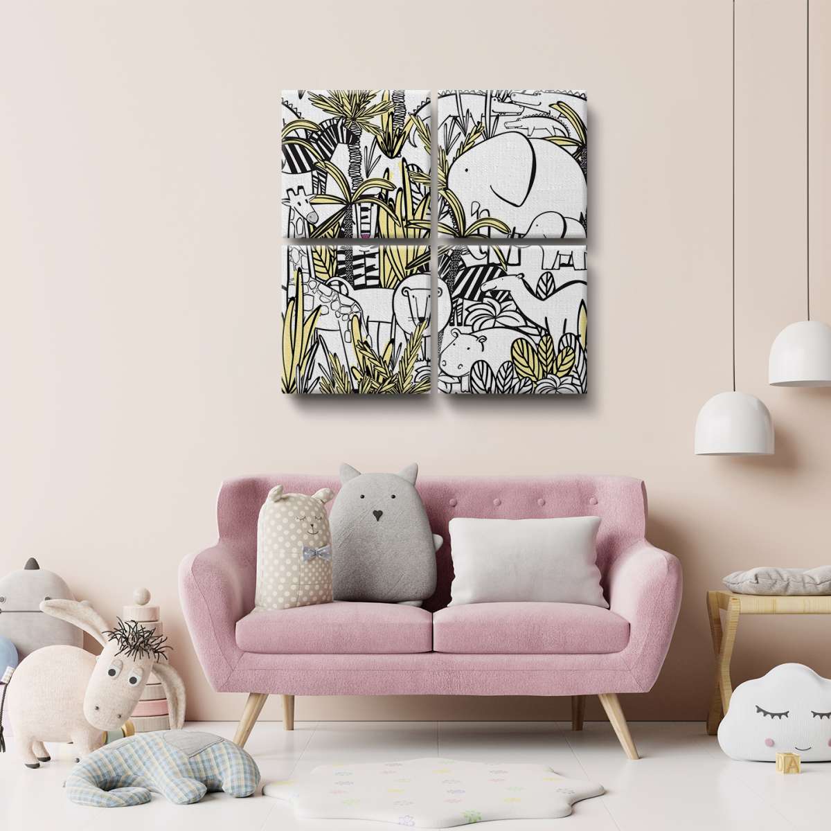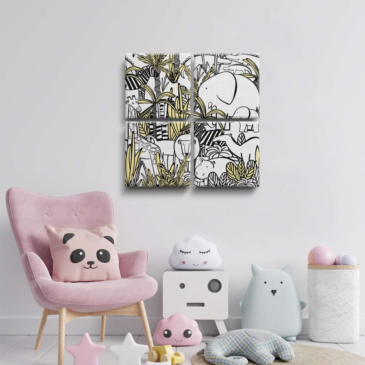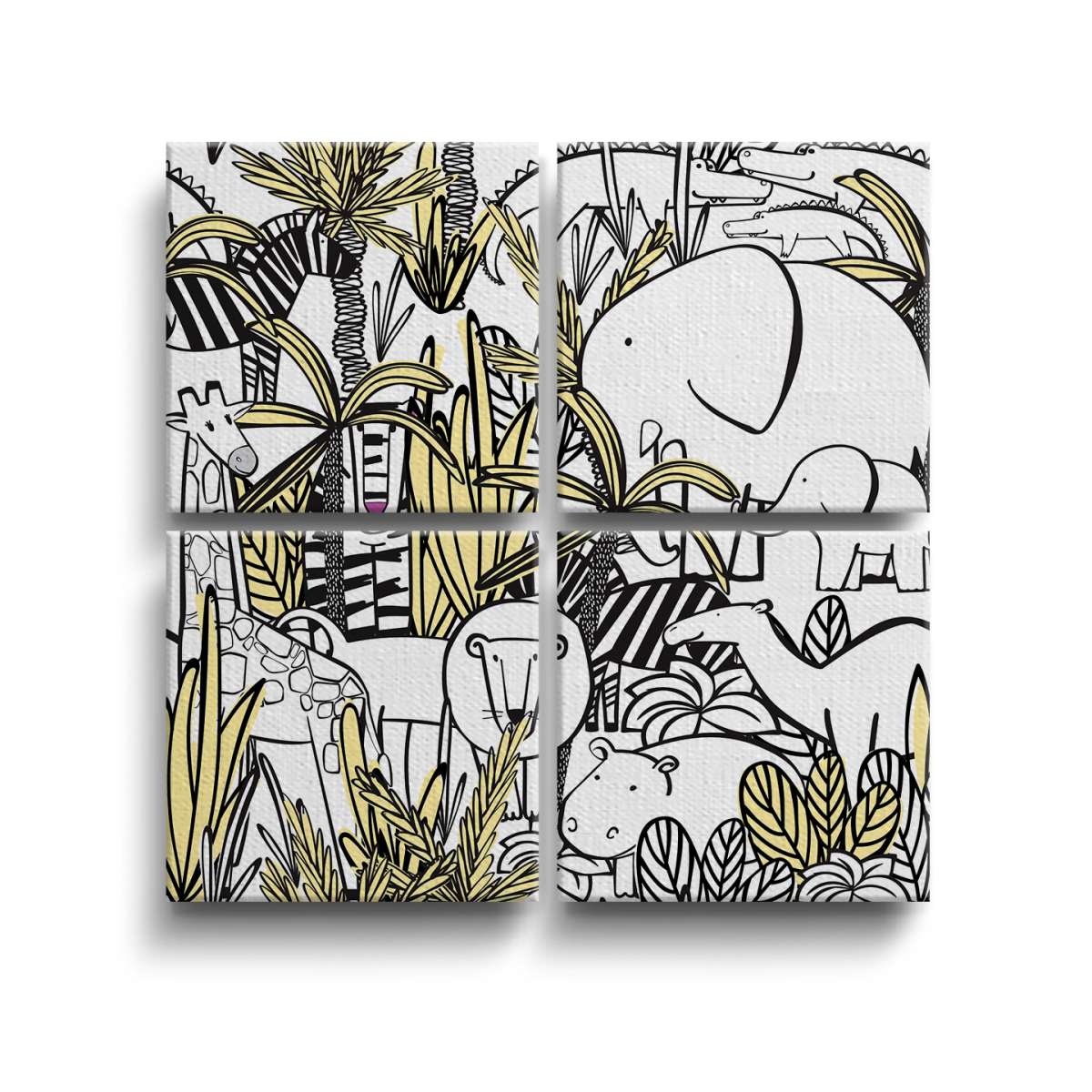 Zvířata v džungle - černobílá ilustrace